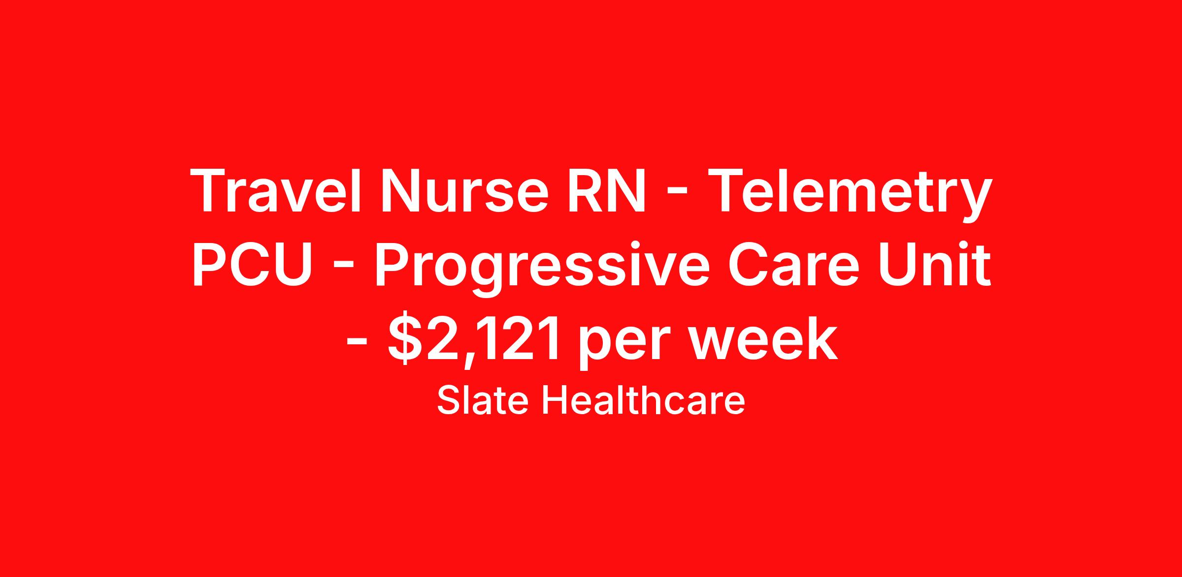 Travel Nurse RN - Telemetry PCU - Progressive Care Unit - $2,121 per week