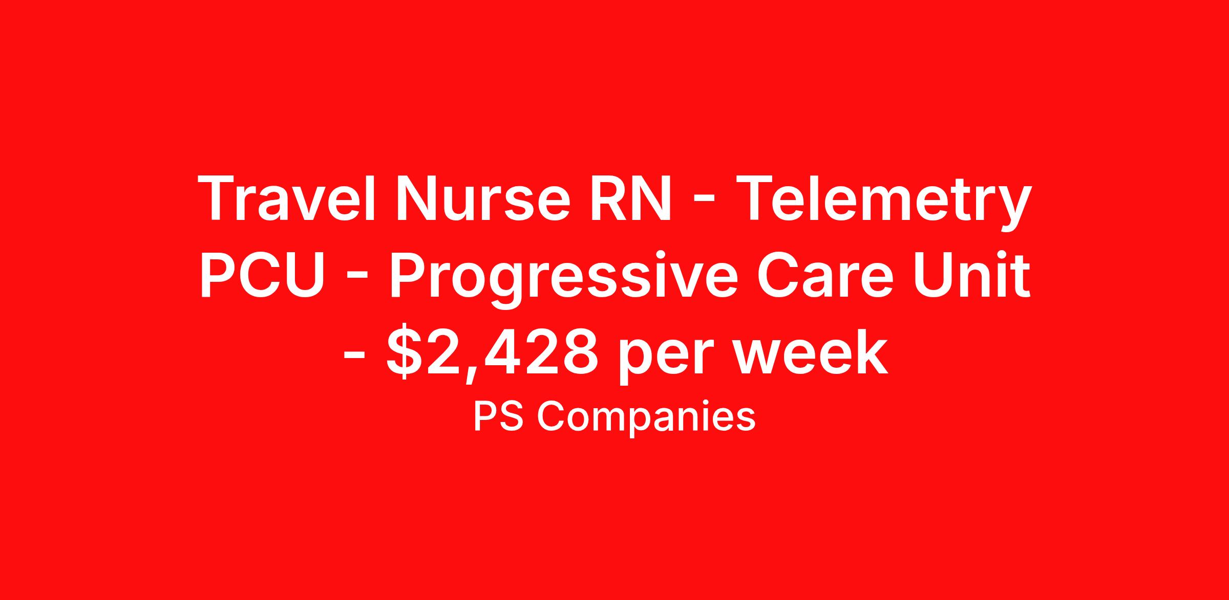 Travel Nurse RN - Telemetry PCU - Progressive Care Unit - $2,428 per week
