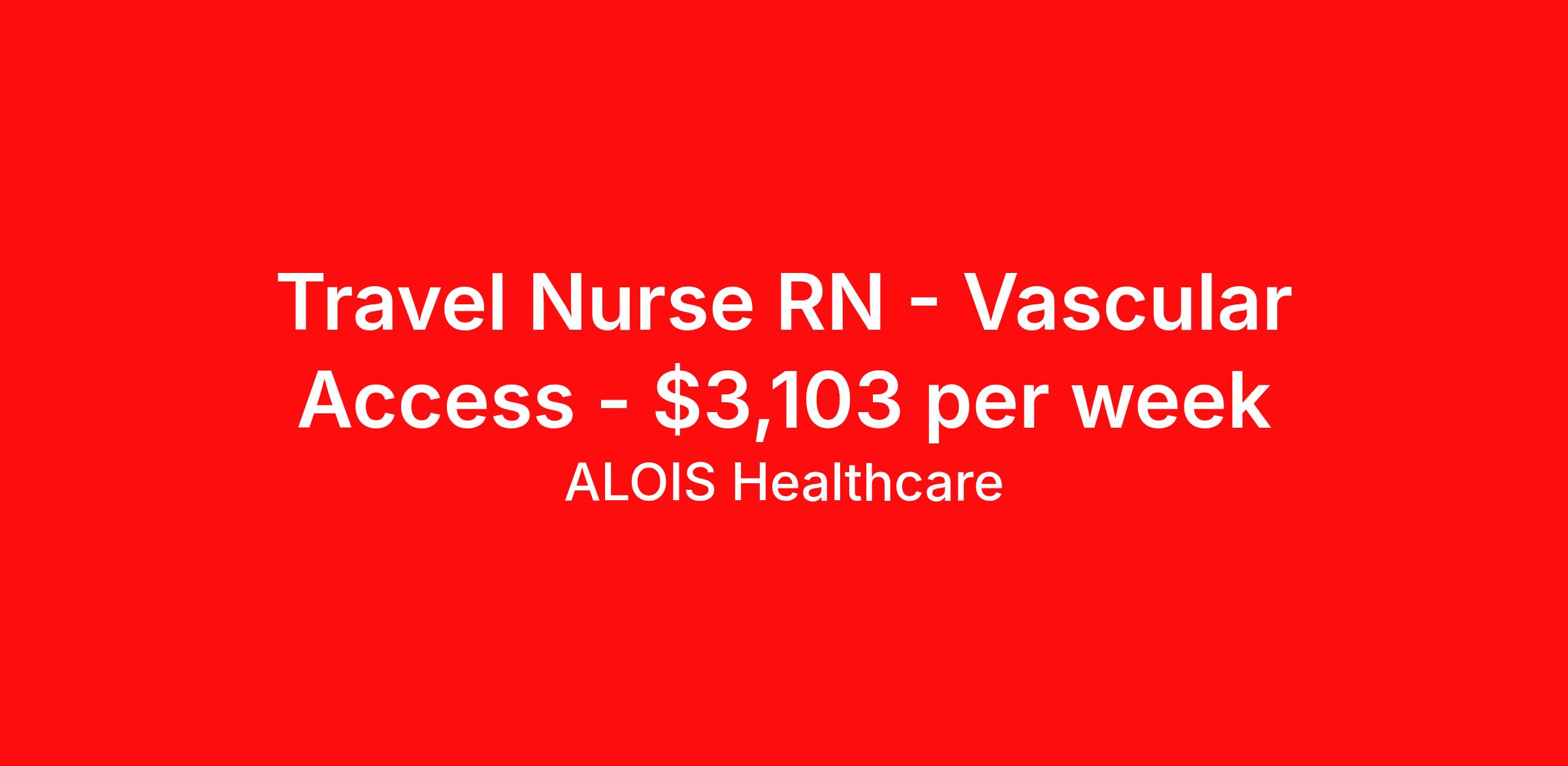 ALOIS Healthcare is seeking a travel nurse RN Vascular Access for a travel nursing job in Roseville, California. Job Description & Requirements Specialty: Vascular Access Discipline: RN Start Date: 04/06/2026 Duration: 13 weeks 40 hours per week Shift: 10 hours, days Employment Type: Travel ALOIS Healthcare Job ID 17849260. Pay package is based on 10 hour shifts and 40.0 hours per week (subject to confirmation) with tax-free stipend amount to be determined. Posted job title: RN Vascular Access About ALOIS Healthcare Why ALOIS Healthcare? ALOIS means “brave warrior” and that’s what you are- Warrior in Scrubs! Just as you advocate for your patients, we will advocate for you. The pay you deserve. The support you need. We’re in your corner for every battle – because you shouldn’t settle for anything less when it comes to your career. We offer: · Industry-leading pay Generous cost of living and housing stipends · Opportunities for referral, sign-on, and extension bonuses · Weekly health insurance or health insurance Marketplace weekly bonus · Continuing education credits We’re proud to be recognized globally as a certified minority-owned staffing supplier. At ALOIS Healthcare: · Everyone Matters · We are Performance Driven · We are Open, Honest and Direct · We are Transparent · We are Inclusive · We Do the Right Thing We care about you - and your success is our success.