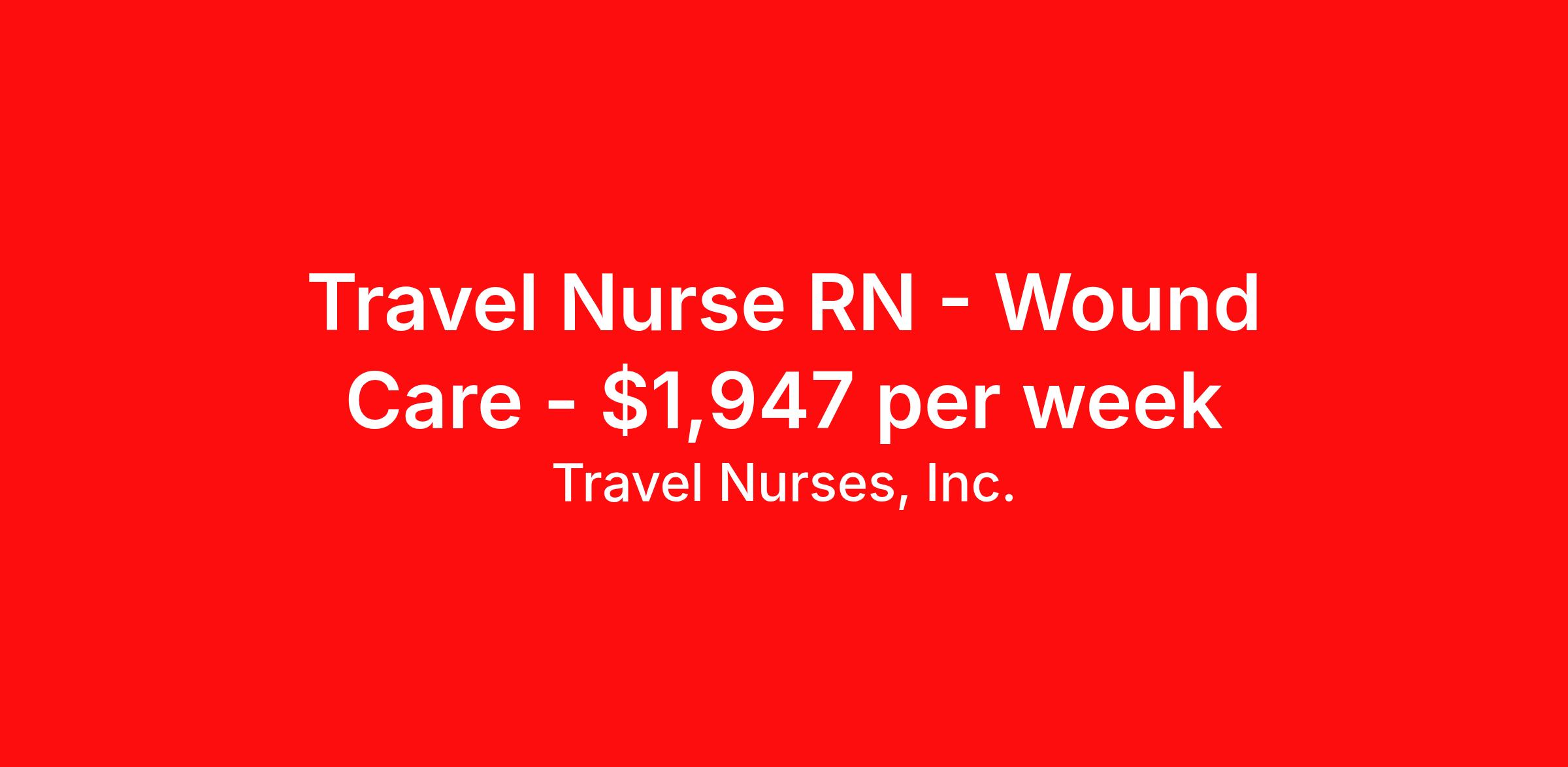 Travel Nurses, Inc. is seeking a travel nurse RN Wound Care for a travel nursing job in Clinton, Maryland. Job Description & Requirements Specialty: Wound Care Discipline: RN Start Date: 04/20/2026 Duration: 13 weeks 40 hours per week Shift: 8 hours Employment Type: Travel Travel Nurses, Inc. Job ID 309238. Pay package is based on 8 hour shifts and 40 hours per week (subject to confirmation) with tax-free stipend amount to be determined. Posted job title: Wound Care Registered Nurse About Travel Nurses, Inc. Travel Nurses, Inc. is a leading healthcare staffing agency that provides healthcare professionals with opportunities to work across the country. Founded by nurses in 1988, TNI has more than 30 years of experience in the industry. The agency initially focused on staffing operating room settings in the MidSouth. However, this quickly evolved to encompass all nursing specialties and allied health fields nationwide. At the heart of our mission is a profound respect for nurses, whom we consider the cornerstone of healthcare. This acknowledgment extends beyond the nursing profession alone. Travel Nurses, Inc. now proudly embraces a wide array of healthcare professionals, recognizing their crucial roles in our collective mission. Travel Nurses, Inc. is dedicated to providing comprehensive support and opportunities that will help facilitate complete career mobility in the healthcare field. Our commitment to transparency ensures that all professionals, not just nurses, can confidently accept any assignment without financial uncertainties. We prioritize our professionals’ well-being with comprehensive benefits packages, including day-one healthcare coverage, competitive salaries, bonuses and incentives. This underscores our unwavering commitment to offering the best possible rewards and support for all the professionals we serve. Benefits Weekly pay Continuing Education 401k retirement plan Wellness and fitness programs Mileage reimbursement Referral bonus Employee assistance programs Medical benefits Dental benefits Vision benefits Benefits start day 1 License and certification reimbursement Life insurance Retention bonus