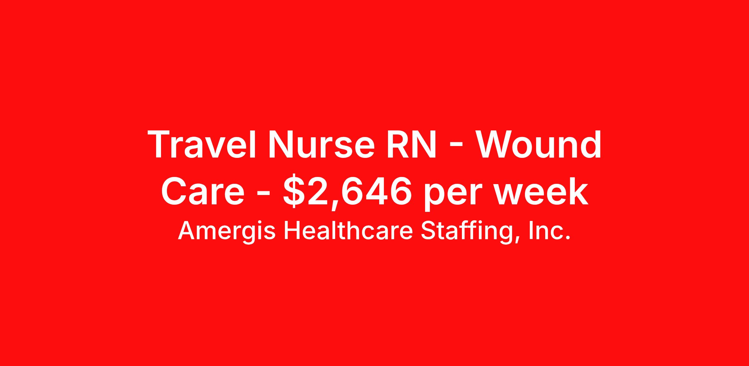 Amergis Healthcare Staffing, Inc. is seeking a travel nurse RN Wound Care for a travel nursing job in Freeport, Illinois. Job Description & Requirements Specialty: Wound Care Discipline: RN Duration: 6 weeks 40 hours per week Shift: 8 hours Employment Type: Travel Amergis Healthcare is actively looking for an Outpatient Wound Care RN that would be interested in an 6 Week , full-time contract opportunity at a outpatient facility in Freeport , IL . Additional details of the contract are below: Position: RN - Wound Care Location: Freeport, IL Pay (local): $60 - $62 per hour (depends on experience) Total Travel Package: $2,786.00/week *Only accepting travelers: Must reside over 50 miles away to qualify for travel package * Taxable Wages = $1,540.00/week Weekly Housing Allowance = $770.00/week Weekly Meals & Incidentals Allowance = $476.00/week Estimated Weekly Take Home after taxes = $2,296.00 Schedule: 40 hours/week Day shift; 8 AM - 5 PM Monday - Friday No on call or weekends Duration: 6 Weeks (likely extension) Requirements: 2 year of experience in wound care NetHealth product experience preferred (WoundExpert, WoundDocs, iHeal) HBO trained preferred but not required MUST be okay with potential float to Dixon, IL location IL RN License 4/6/26 Start Benefits At Amergis, we firmly believe that our employees are the heartbeat of our organization and we are happy to offer the following benefits: Competitive pay & weekly paychecks Health, dental, vision, and life insurance 401(k) savings plan Awards and recognition programs *Benefit eligibility is dependent on employment status. About Amergis Amergis, formerly known as Maxim Healthcare Staffing, has served our clients and communities by connecting people to the work that matters since 1988. We provide meaningful opportunities to our extensive network of healthcare and school-based professionals, ready to work in any hospital, government facility, or school. Through partnership and innovation, Amergis creates unmatched staffing experiences to deliver the best workforce solutions. Amergis is an equal opportunity/affirmative action employer. All qualified applicants will receive consideration for employment without regard to sex, gender identity, sexual orientation, race, color, religion, national origin, disability, protected Veteran status, age, or any other characteristic protected by law. Amergis Job ID 1110466. Pay package is based on 8 hour shifts and 40 hours per week (subject to confirmation) with tax-free stipend amount to be determined. Posted job title: RN Wound Care About Amergis Healthcare Staffing, Inc. Amergis, formerly known as Maxim Healthcare Staffing, has served our clients and communities by connecting people to the work that matters since 1988. We provide meaningful opportunities to our extensive network of healthcare and school-based professionals, ready to work in any hospital, government facility, or school. Through partnership and innovation, Amergis creates unmatched staffing experiences to deliver the best workforce solutions.