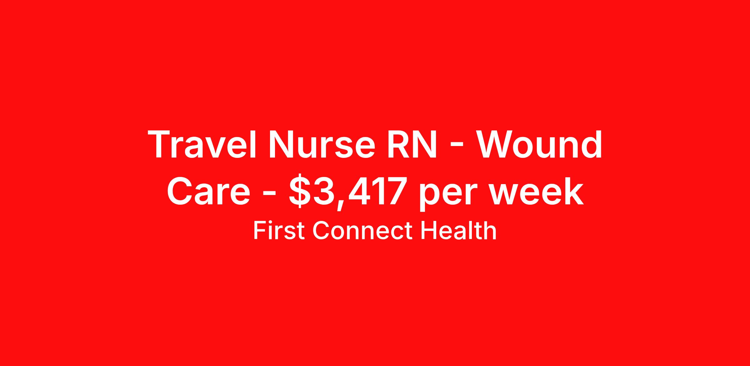 First Connect Health is seeking a travel nurse RN Wound Care for a travel nursing job in Bronx, New York. Job Description & Requirements Specialty: Wound Care Discipline: RN Start Date: 04/14/2026 Duration: 13 weeks 37.5 hours per week Shift: 8 hours, days Employment Type: Travel Department: Wound Care | RN - Bronx, NY - Experience: Must have 2 plus years experience inpatient clinical experience, Prefer wound care experience. - Required Certifications: BLS, WOCN (Takes approx. 1 year to get) OR WCEI (Takes up to 1 week to get). - Must ahve active NY license - Shifts & Scheduling: Monday to Friday 8-4 or 9-5 - Weekend Requirements: Weekends are optional. - Holiday Requirements: Optional - Floating Requirements: All of inpatient- MS, PCU, ICU & OR as needed. About First Connect Health At First Connect Health , we take pride in being a Joint Commission–certified healthcare staffing agency , headquartered in Newark, New Jersey. This prestigious certification is more than just a seal — it's a reflection of our commitment to excellence, safety, and quality in everything we do. By meeting the rigorous standards set by The Joint Commission, one of the most respected accrediting bodies in healthcare, we've demonstrated that our processes, compliance, and patient care standards are aligned with the highest levels of quality in the industry. But our dedication goes beyond certifications. Nurses choose First Connect Health because: ✅ Trust and Transparency: We foster honest communication, timely updates, and full transparency throughout your placement journey. ✅ Best Pay & Benefits: We offer industry-leading compensation packages, along with benefits that support your career goals. ✅ Flexibility & Choice: Whether you're seeking short-term assignments, long-term contracts, or local opportunities, we provide the flexibility to suit your preferences. ✅ Personalized Support: Our recruiters take the time to understand your needs, guiding you with care, respect, and responsiveness at every step. When you work with First Connect Health, you're not just another number — you're a valued professional. Join a team that’s focused on your success, your well-being, and your future in healthcare. Benefits Medical benefits Sick pay 401k retirement plan Weekly pay Referral bonus