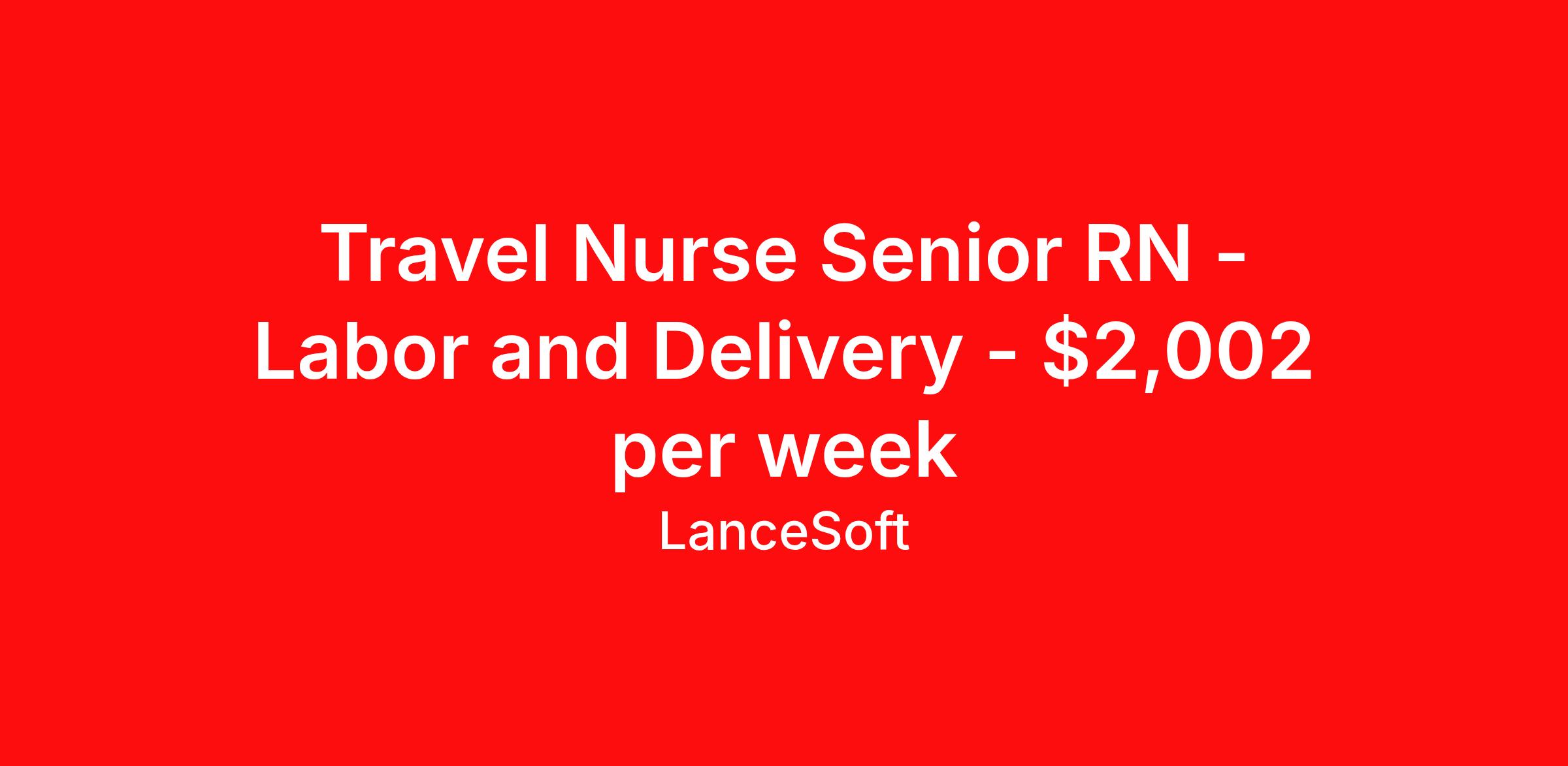 Travel Nurse Senior RN - Labor and Delivery - $2,002 per week