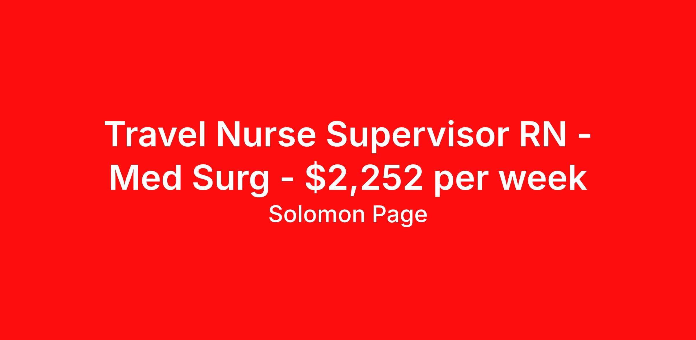 Travel Nurse Supervisor RN - Med Surg - $2,252 per week