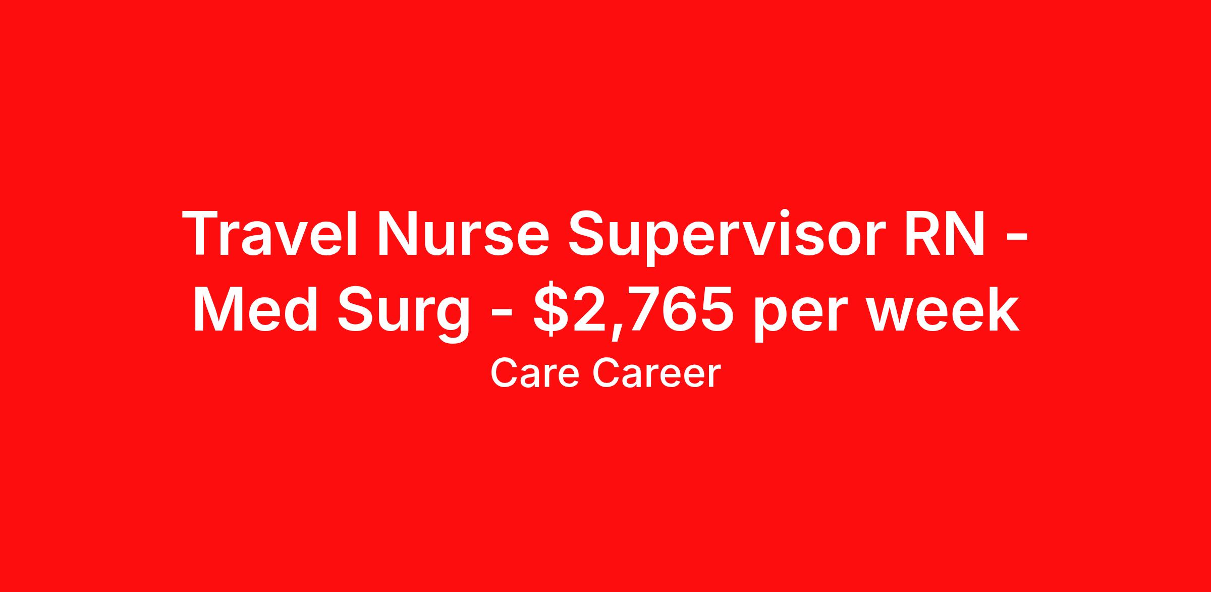 Travel Nurse Supervisor RN - Med Surg - $2,765 per week