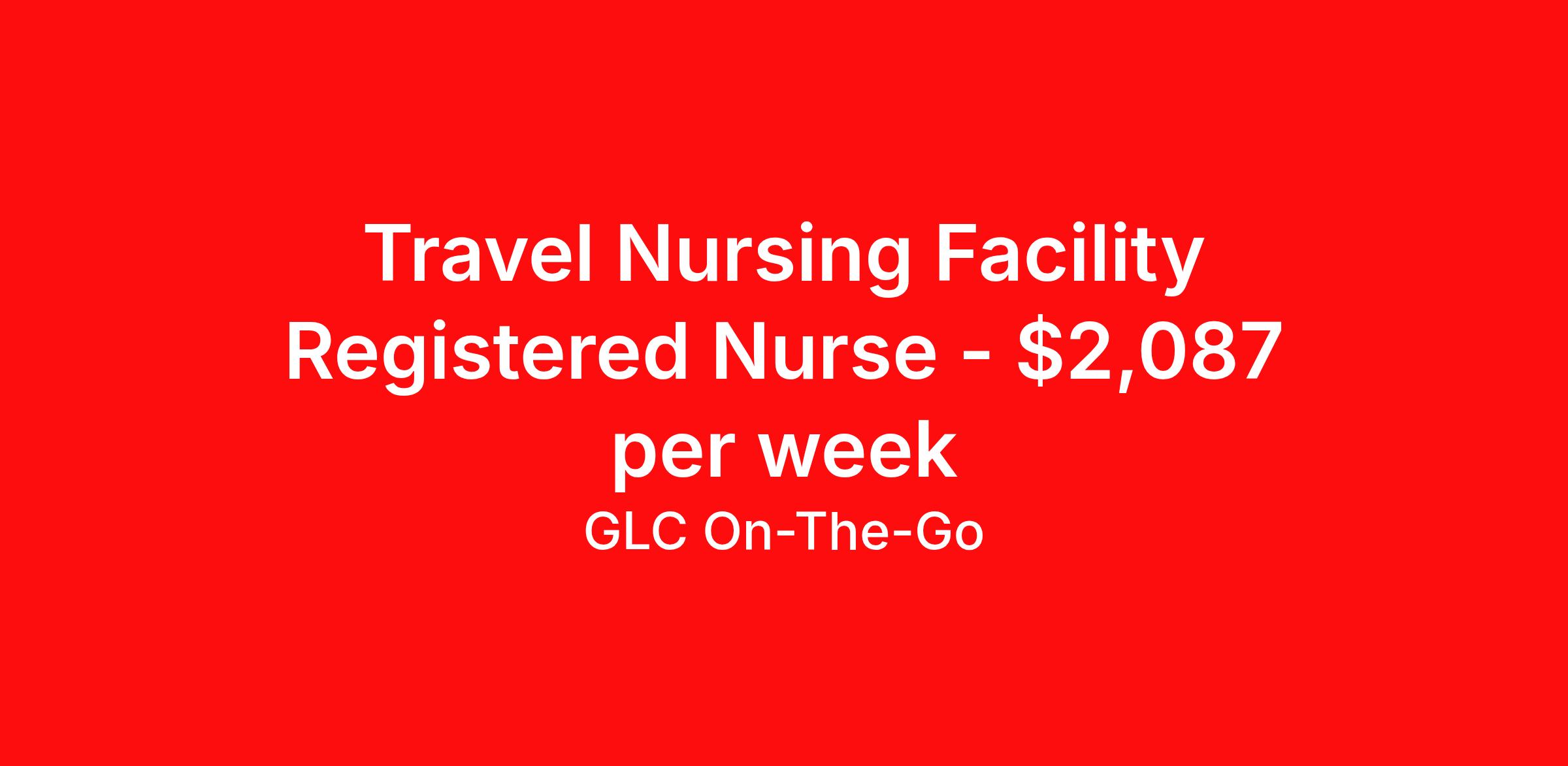 Travel Nursing Facility Registered Nurse - $2,087 per week