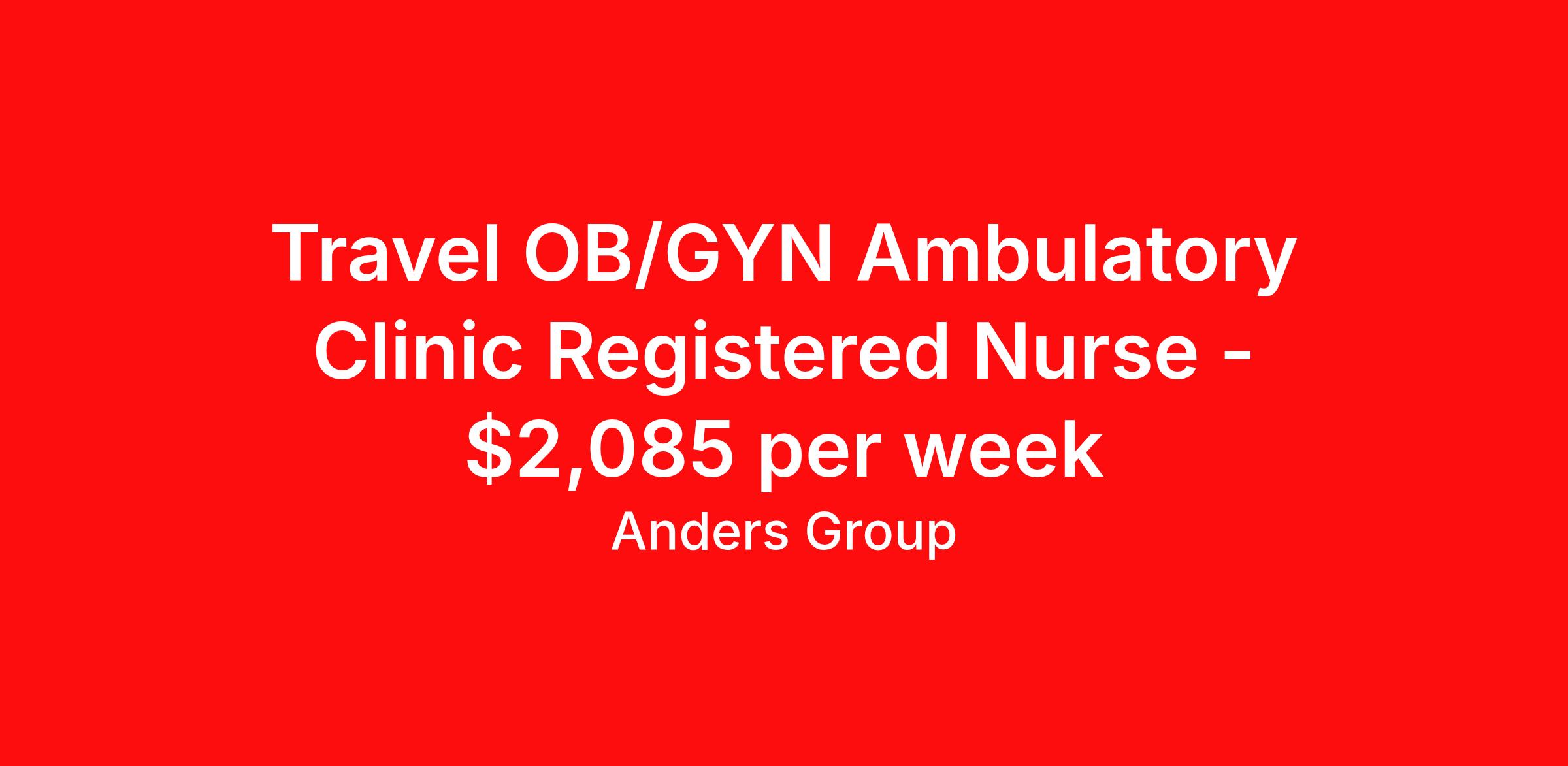 Travel OB/GYN Ambulatory Clinic Registered Nurse - $2,085 per week