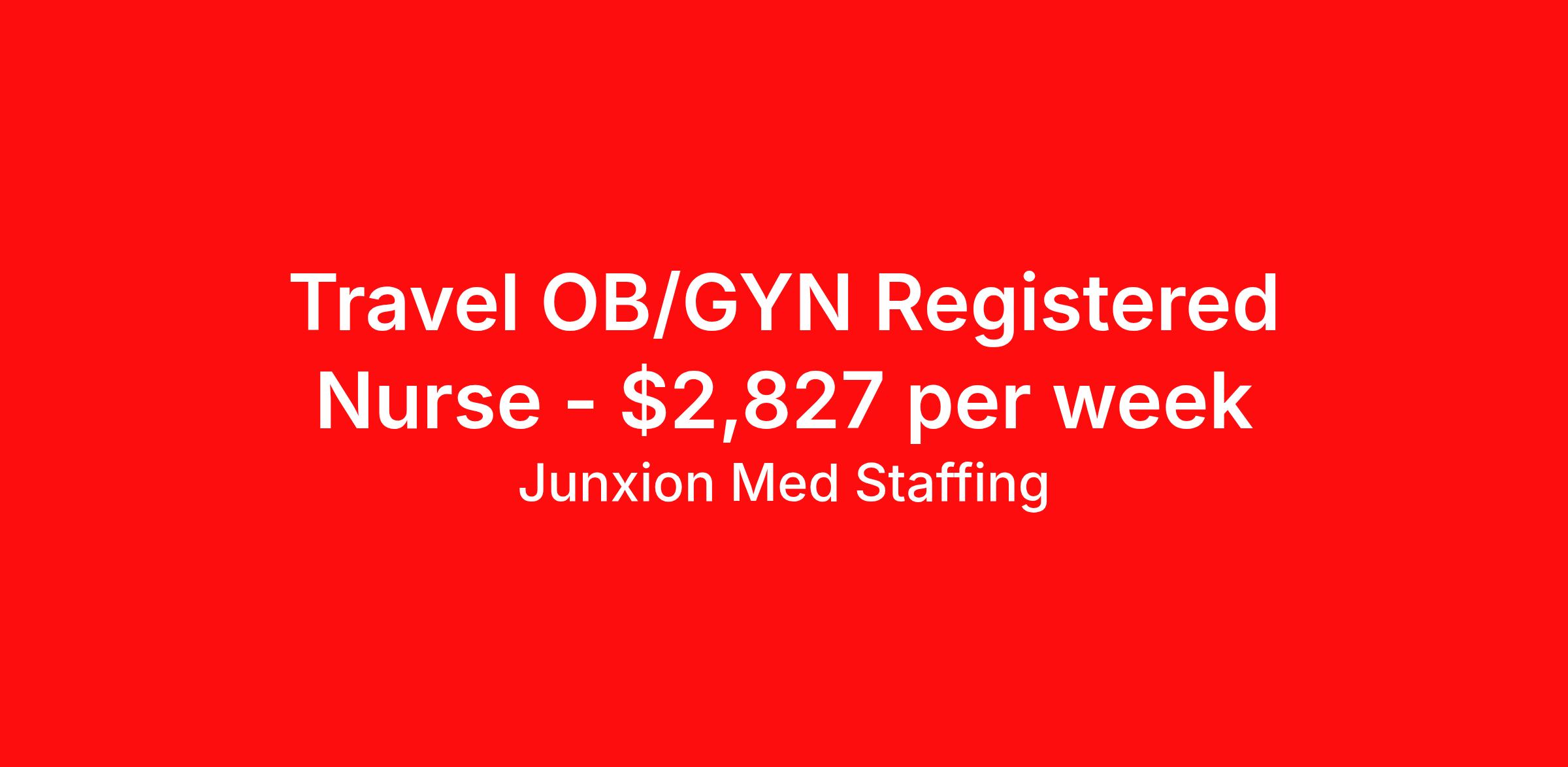 Junxion Med Staffing is seeking a travel nurse RN OB/GYN for a travel nursing job in Atlantic, Iowa. Job Description & Requirements Specialty: OB/GYN Discipline: RN Start Date: 05/25/2026 Duration: 13 weeks 36 hours per week Shift: 12 hours, nights Employment Type: Travel Summary: Junxion Med Staffing is looking for a OB/GYN RN to take an assignment in Atlantic, Iowa. This assignment lasts 13.14 WEEKS and is scheduled to start on May 25, 2026. If you don't like the start date, pay, or shift, then let’s talk. Give us a call opt 1 Job Details: Shift: 12H Nights Total Weekly Hours: 36 Certifications: BLS, Trauma Level: Benefits: Day 1 Insurance Additional bonus potential for every contract Additional vacation incentives Medical insurance with no more than $175 monthly premium for employee Employee Assistance Program (EAP) Referral bonus up to $1,000 401K and access to financial advisors for financial wellness and education A dedicated recruiter and support team that will help you every step of the way to sure you start on time and have an exceptional experience An agency ran by a traveler for travelers Click here for licensing requirements About the Company: Junxion Med Staffing is an award-winning healthcare staffing company with a mission to provide quality healthcare to our communities. Apply today to speak with a recruiter! Awards: RNVIP- Top 10 Travel Nursing Agencies of 2024 BluePipes – The Best Travel Nursing Companies 2023 *Estimated weekly pay includes projected hourly wages and weekly meal and lodging per diems for eligible clinicians based on nationally published GSA rates. Actual weekly pay and per diems may differ from the amount shown and may be subject to change during an assignment. For all employees and employee applicants, Junxion Med Staffing is an Equal Employment Opportunity ("EEO") Employer, including Disability/Vets, and welcomes all to apply. Junxion Med Staffing Job ID 1359170. Pay package is based on 12 hour shifts and 36 hours per week (subject to confirmation) with tax-free stipend amount to be determined. About Junxion Med Staffing Junxion Med Staffing was founded by a former healthcare traveler who understands the challenges healthcare professionals face - because we’ve been there. We specialize in placing travel nurses, allied health professionals, physicians, physician assistants, and nurse practitioners in both short-term and permanent roles across a wide range of specialties. Whether you're looking for a travel contract or a long-term fit, we work to ensure the right match between each healthcare professional and facility. At Junxion, we keep it simple: ● Transparent communication. No surprises, no hidden details, just honest conversations so you always know what to expect. ● Dedicated support. From job search to contract negotiations and throughout your assignment, you’ll have a recruiter who’s with you every step of the way. ● Competitive pay and benefits. We advocate for you to be fairly compensated and supported in your goals. ● A focus on your success. When healthcare professionals feel valued and empowered, patient care improves and that’s what it’s all about. You’re not just a number here. You’re part of a team that actually cares. Let’s find your next great opportunity together. Benefits Weekly pay Referral bonus Dental benefits Vision benefits 401k retirement plan Medical benefits Mileage reimbursement