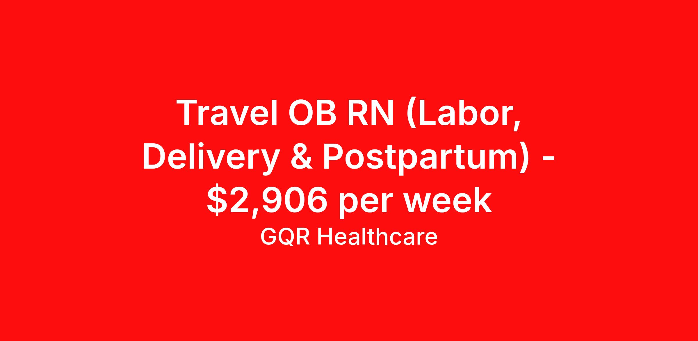 Travel OB RN (Labor, Delivery & Postpartum) - $2,906 per week