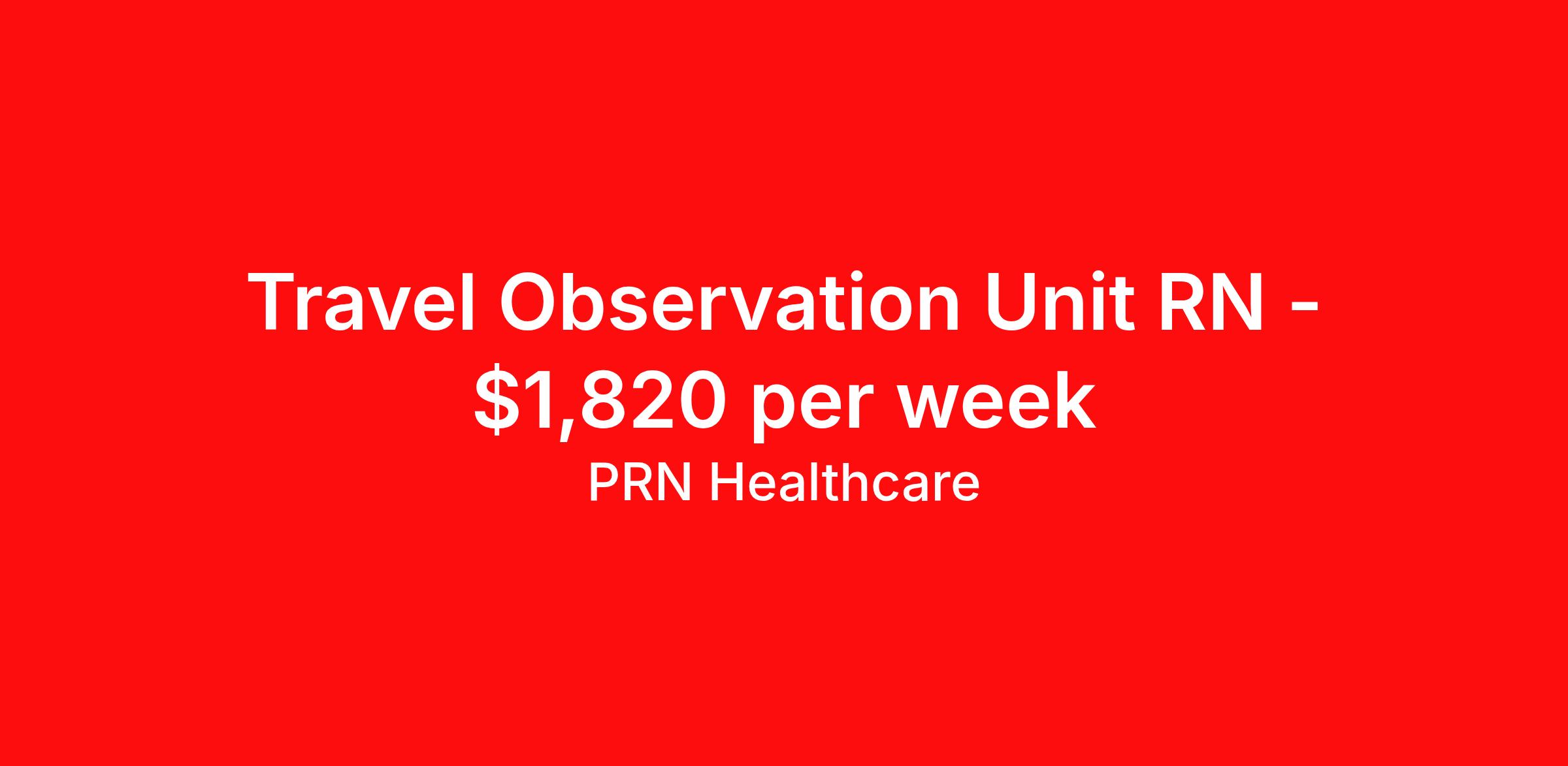 PRN Healthcare is seeking a travel nurse RN DOU - Direct Observation Unit for a travel nursing job in Fort Smith, Arkansas. Job Description & Requirements Specialty: DOU - Direct Observation Unit Discipline: RN Start Date: 04/13/2026 Duration: 13 weeks 36 hours per week Shift: 12 hours, days Employment Type: Travel PRN Healthcare Job ID 1514623. Pay package is based on 12 hour shifts and 36 hours per week (subject to confirmation) with tax-free stipend amount to be determined. Posted job title: Observation RN About PRN Healthcare Our story starts with a 21-year-old CNA named Pete Hietpas. Pete was diligently working in eastern Wisconsin with a variety of staffing agencies, but something was missing. He loved caring for his patients, but felt that staffing agencies were exchanging compassion for competitiveness. He was determined to change that. As a result, he started Nurses PRN in 1995 to become a model for the healthcare staffing industry – being competitive in the marketplace, yet still maintaining a compassionate heart. Over the years Nurses PRN grew and evolved as a nationwide healthcare staffing company, and therefore wanted to be more inclusive to all valued healthcare professionals: nurses, allied health, locum tenens, CNAs, and more. This lead to the introduction of PRN Healthcare, which is inclusive of Nurses PRN and all of our other healthcare divisions. Our mission to create authentic, meaningful relationships with our healthcare professionals helps us set them up for success in their dream assignment, whether that be a travel contract, local contract, or per diem shift. This is all driven by the simple idea that better care for our healthcare workers, leads to better patient care – and this is all supported by a dedicated internal staff. Our company culture is strongly backed by faith-based values and activities, to remind us that our success provides us the opportunity to serve and give back to our communities. This is the spirit of caregiving. This is PRN Healthcare. Benefits Weekly pay Guaranteed Hours Continuing Education 401k retirement plan Referral bonus Employee assistance programs Company provided housing options Medical benefits Dental benefits Vision benefits Life insurance