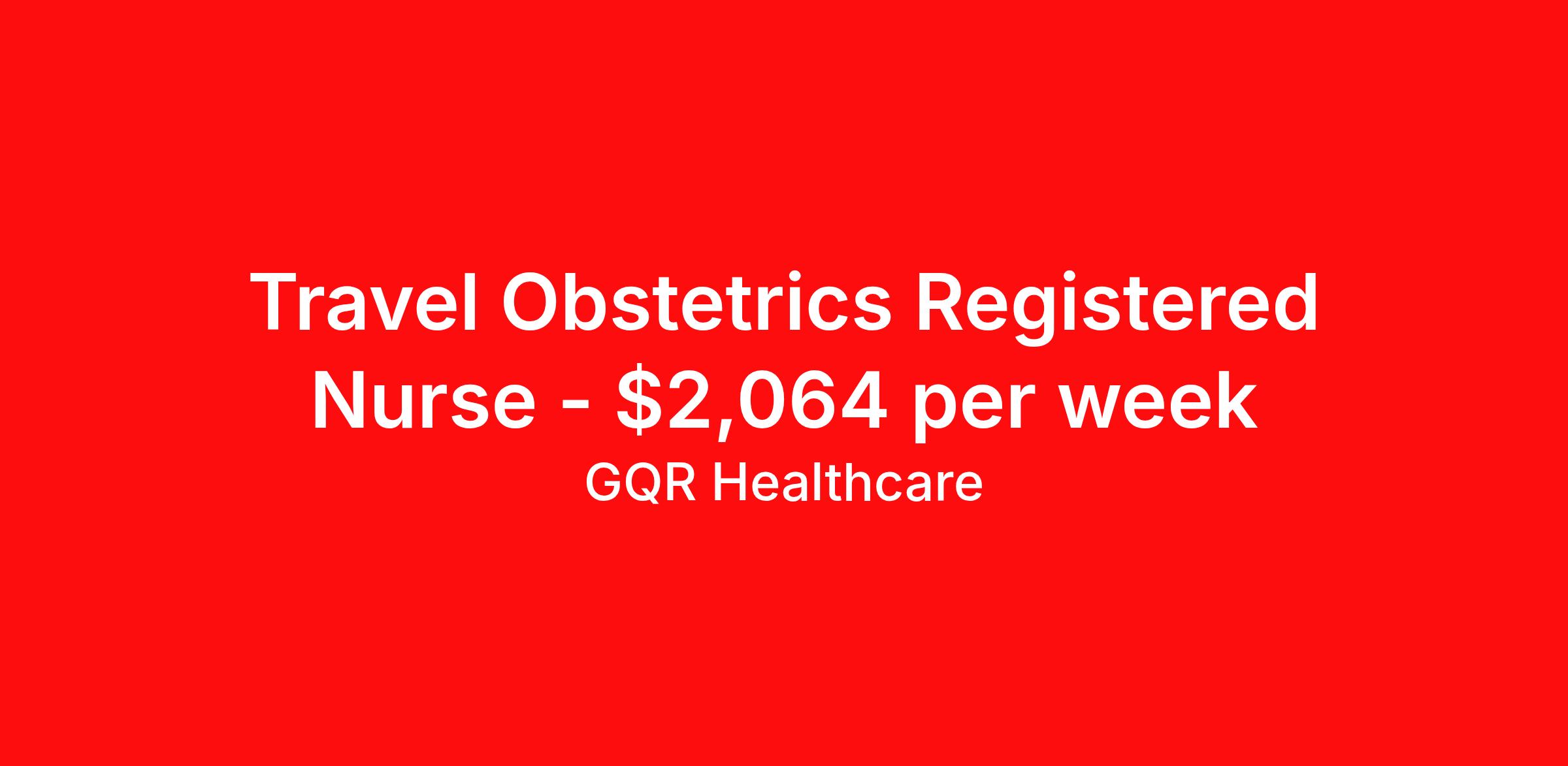 GQR Healthcare is seeking a travel nurse RN OB/GYN for a travel nursing job in Somerville, Massachusetts. Job Description & Requirements Specialty: OB/GYN Discipline: RN Start Date: 04/14/2026 Duration: 13 weeks 32 hours per week Shift: 8 hours Employment Type: Travel Contract - W2 OB/GYN Registered Nurse (RN) Job Location: Somerville, Massachusetts Start Date: April 14, 2026 Profession: Registered Nurse (RN) Facility: Estimated Pay: $2063.91 - $2158.91 Duration:13 weeks Specialty:OB/GYN Shift: Shift Details: null null Job Type: Travel *Estimated weekly pay includes projected hourly wages and weekly meal and lodging per diems for eligible clinicians based on nationally published GSA rates. Actual weekly pay and per diems may differ from the amount shown and are subject to change during an assignment. Benefits: Day 1 Insurance Cigna medical, MetLife dental and vision insurance License reimbursement for new licenses needed for each assignment Discounts with hotels and rental cars A dedicated recruiter and support team that will help you every step of the way to sure you start on time and have an exceptional experience Referral bonus up to $700 About the Company: Finding the right role is about more than just matching skills to a job—it’s about aligning with your goals, values, and the way you want to work. As an award-winning talent partner, we support healthcare professionals through every step of that process, offering meaningful opportunities, clear guidance, and long-term partnership. From our first conversation to your first day on the job (and beyond!), we’re here to help you move forward with confidence. GQR Job ID 787664. Pay package is based on 8 hour shifts and 32 hours per week (subject to confirmation) with tax-free stipend amount to be determined. Posted job title: Registered Nurse (RN) About GQR Healthcare GQR’s Healthcare team specializes in connecting experts within the industry to highly skilled healthcare professionals across the US market. In the competitive healthcare market, we recognize that the industry’s common goals of improved quality of care and patient outcomes are wholly reliant upon the professionals directly supporting these initiatives. Leveraging our extensive candidate network, we deliver continuity of care for the communities our partners serve to ensure the patient experience is of the highest quality. Through deep market specialization and a unique approach to talent acquisition, GQR Healthcare provides an unparalleled and personalized experience across all medical specialties in nursing and within diverse healthcare platforms across the industry.