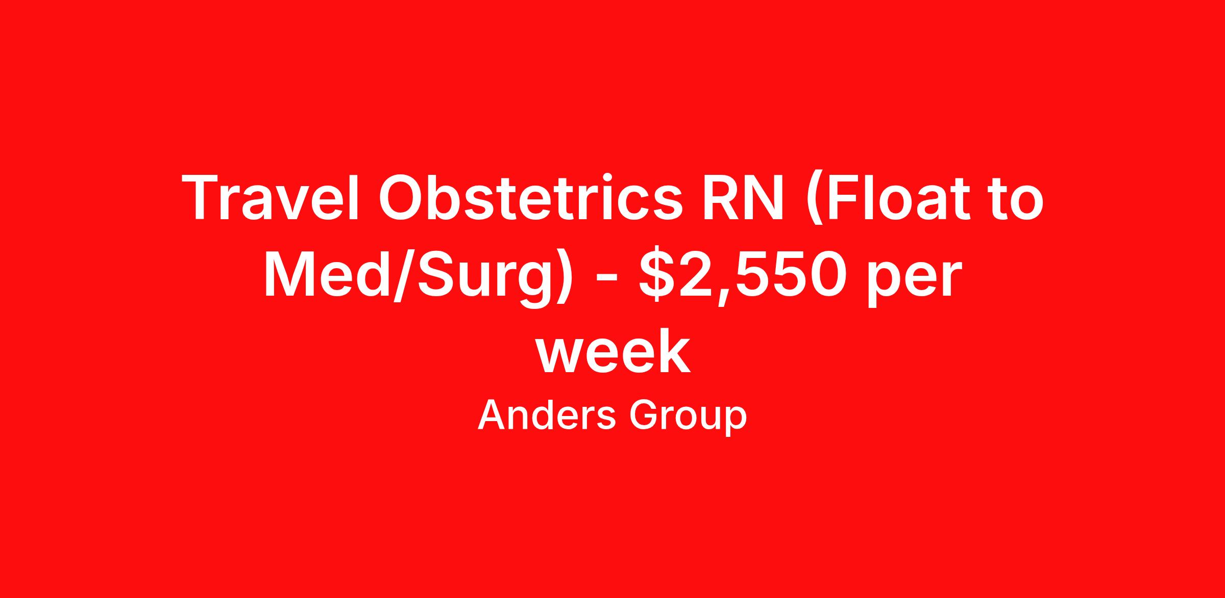 Travel Obstetrics RN (Float to Med/Surg) - $2,550 per week