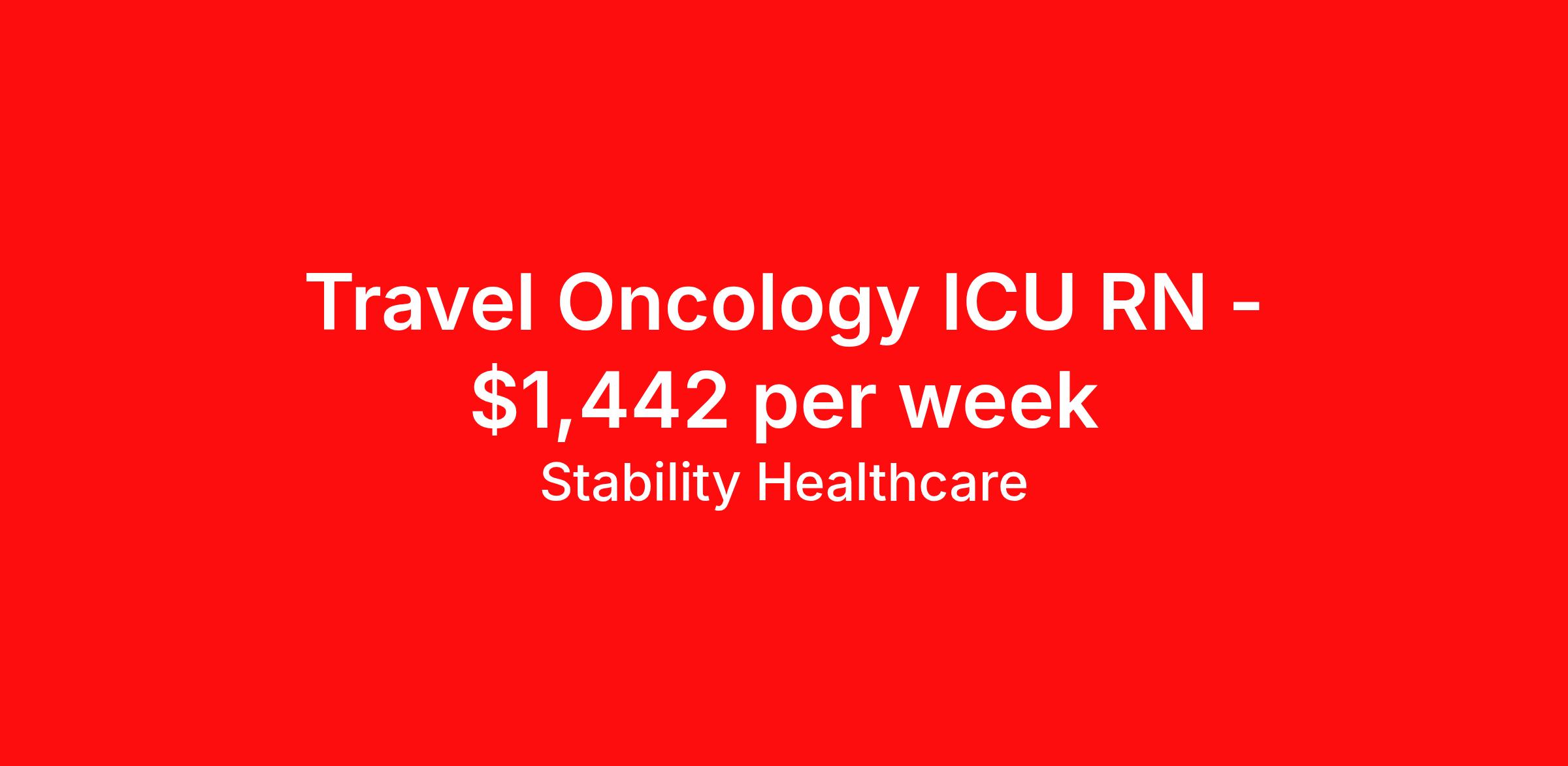 Stability Healthcare is seeking a travel nurse RN ICU - Intensive Care Unit for a travel nursing job in Dallas, Texas. Job Description & Requirements Specialty: ICU - Intensive Care Unit Discipline: RN Duration: 13 weeks 36 hours per week Shift: 12 hours, nights Employment Type: Travel Stability Healthcare is looking for a ICU RN contract position in Dallas, TX. Intensive Care Unit (ICU) Nurses treat acutely ill patients with life-threatening conditions, in settings requiring continuous vigilance and high-intensity therapies. ICU nurses can specialize in a variety of disciplines including medical, surgical, cardiac, burn or Neuro ICU. *$600 travel bonus *Day 1 health insurance with United Healthcare *PTO plan start accruing on day 1, use during contract or cash out at the end! *Guaranteed stipend if facility calls you off *Extra hour bonus earn an additional hourly bonus for working over your weekly contracted hours Stability Job ID 805533. Pay package is based on 12 hour shifts and 36 hours per week (subject to confirmation) with tax-free stipend amount to be determined. Posted job title: ICU About Stability Healthcare Stability Healthcare was founded in 2009, with the mission of becoming the best Travel Nursing Agency in California. We have been rated one of the top travel nursing agencies and offer our nurses the highest paying travel nursing jobs available. We have access to the best travel assignments from 1000’s of facilities. You can start the year off in sunny California, spend the Spring in the Colorado Rockies, enjoy the Summer in the Mid-West, experience the change of seasons in Boston and New York, and hit the beaches of Florida in the winter. Our Nurses work in the best hospitals and health systems in the country. Benefits Guaranteed Hours Benefits start day 1