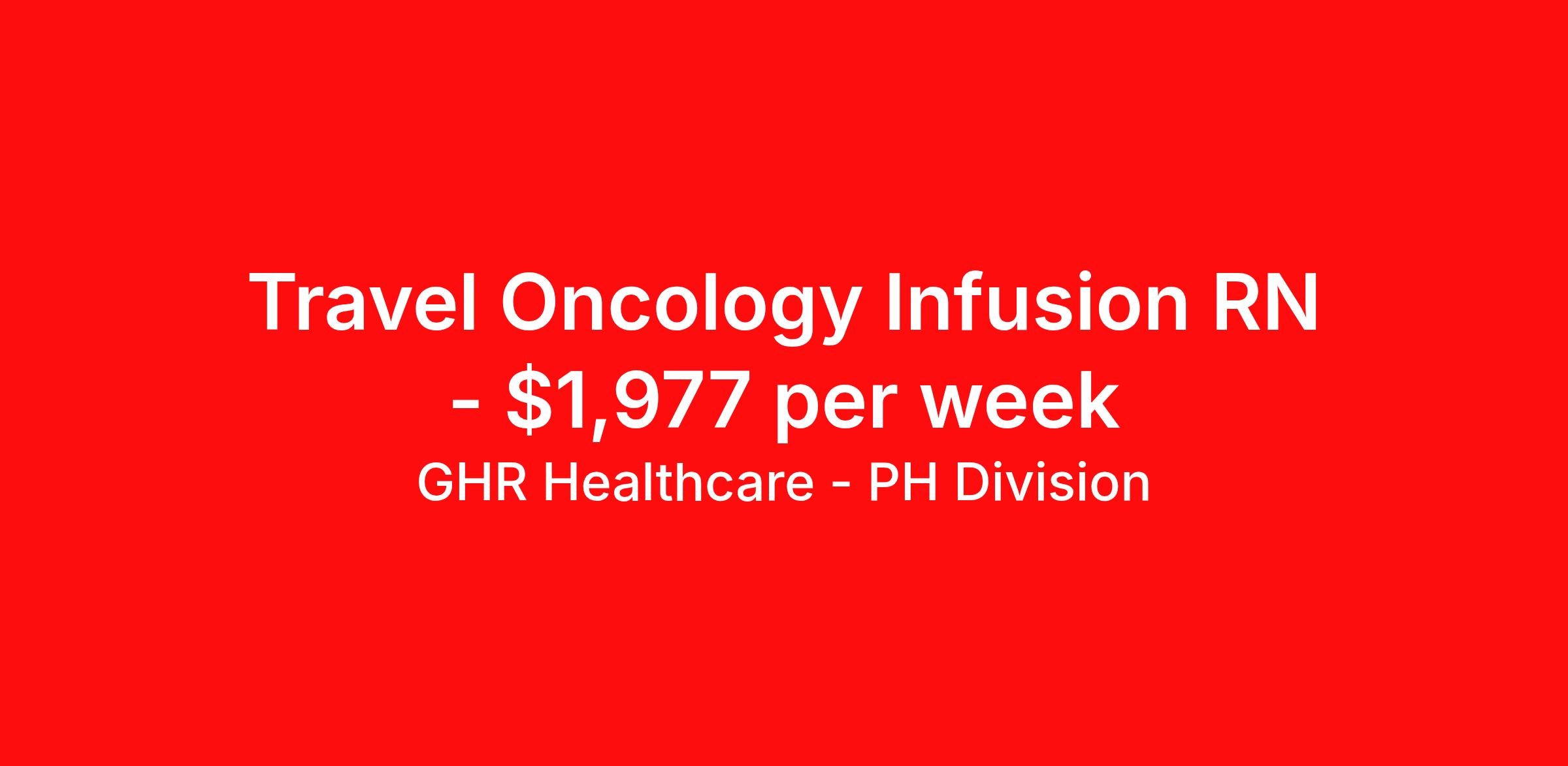 GHR Healthcare - PH Division is seeking a travel nurse RN Infusion for a travel nursing job in Washington, District of Columbia. Job Description & Requirements Specialty: Infusion Discipline: RN Start Date: 04/13/2026 Duration: 13 weeks 36 hours per week Shift: 12 hours Employment Type: Travel Planet Healthcare Job ID 75633932. Pay package is based on 12 hour shifts and 36 hours per week (subject to confirmation) with tax-free stipend amount to be determined. About GHR Healthcare - PH Division For over 30 years, GHR Healthcare has been the bridge between healthcare professionals and the facilities that need them nationwide. We're committed to uncovering your ideal fit, supported by GHR's dedication to competitive compensation, transparent communication, and a devoted team that genuinely cares about your career journey. You can trust us to stand by your side as your advocate, confidante, and partner in advancing your career. At GHR, care and consideration are at the heart of everything we do. Visit ghrhealthcare.com to learn more.