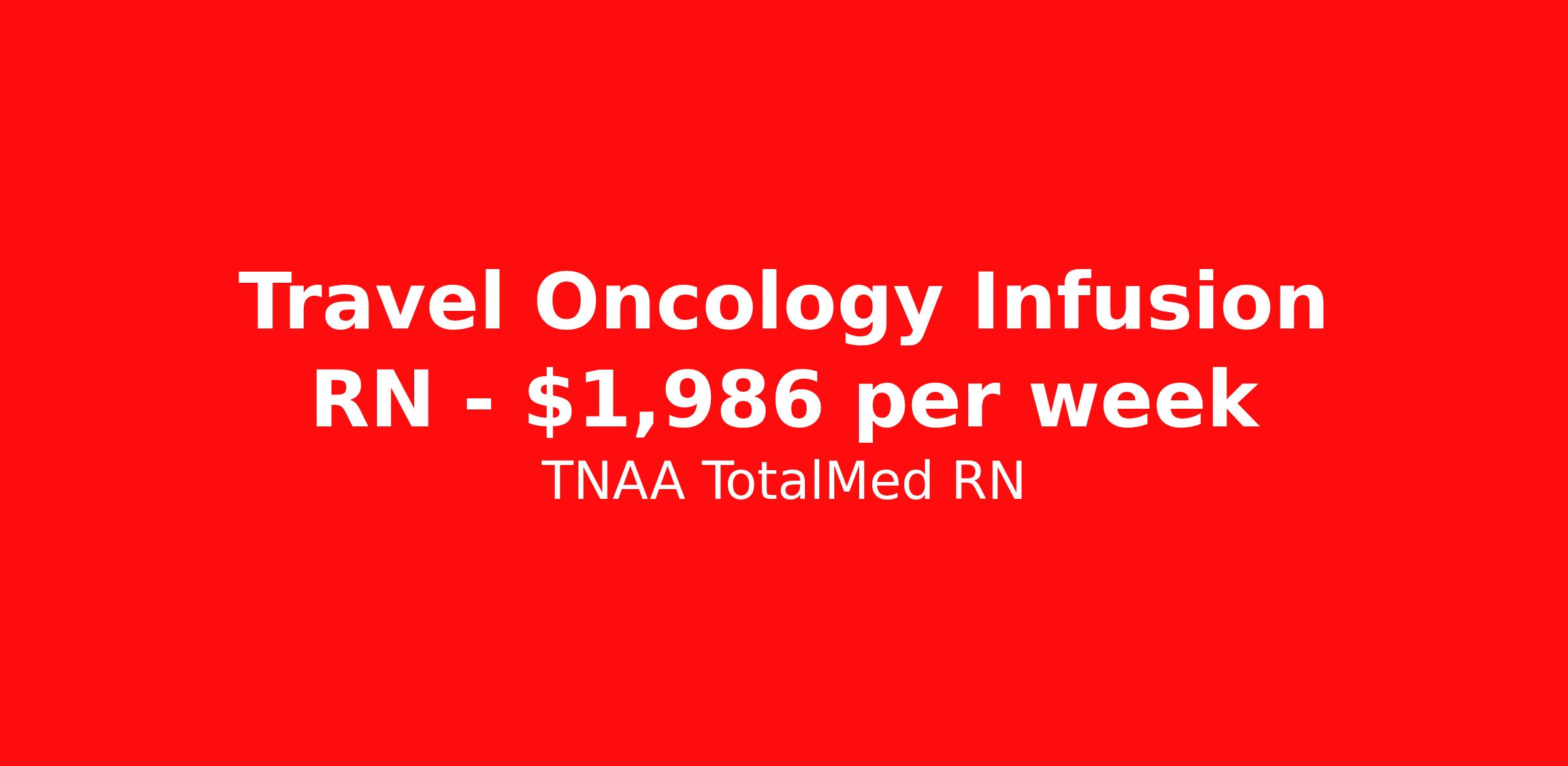 TNAA TotalMed RN is seeking a travel nurse RN Oncology for a travel nursing job in Lancaster, South Carolina. Job Description & Requirements Specialty: Oncology Discipline: RN Duration: 13 weeks 40 hours per week Shift: 8 hours, days Employment Type: Travel As an RN Infusion/PICC Nurse, you will provide specialized nursing care to patients requiring infusion therapy and/or PICC line management. With a focus on patient safety, comfort, and education, you will play a key role in managing complex therapies such as intravenous (IV) infusions, chemotherapy, and long-term antibiotic therapy. Responsibilities: Perform comprehensive patient assessments to determine the need for infusion therapy or PICC placement Insert, maintain, and care for PICC lines and other central venous access devices, ensuring patient safety and minimizing complications Administer IV medications, fluids, and other treatments as prescribed, ensuring proper techniques for infusions and monitoring patient response Monitor patient responses during and after infusions, adjusting care plans as needed based on clinical progress or side effects Provide patient and family education on PICC care, infusion therapy, and managing potential complications at home Collaborate with the healthcare team to coordinate care, manage patient symptoms, and ensure continuity of care across settings Assess for and prevent complications related to infusion therapy, including infection, document all nursing interventions, patient responses, and care plans in a timely and accurate manner, in accordance with healthcare regulations and best practices Ensure adherence to infection control and safety protocols, including proper handling and disposal of equipment Manage a caseload of patients, ensuring timely visits and updates while maintaining quality and patient satisfaction The ideal candidate must have at least one year of experience as an RN in an infusion setting. Additionally, they should possess a current BLS certification and be eligible for State licensure. Additional certifications may be required. Infusion RNs should be able to stand or walk for long periods and must be able to bend, stoop, and lift with proper body mechanics. Infusion RNs should be autonomous, organized, and compassionate with excellent interpersonal skills. Requirements*: BLS, CHEMO, 1 Year * Additional certifications may be required before beginning an assignment. TotalMed Travel Job ID 1382205. Pay package is based on 8 hour shifts and 40 hours per week (subject to confirmation) with tax-free stipend amount to be determined. Posted job title: Infusion-PICC - Infusion-PICC RN - Travel Nurse About TNAA TotalMed RN TotalMed is a Top Ten, travel nursing and healthcare staffing agency with the mission of igniting purpose in healthcare. The organization staffs nurses, therapists, pharmacists, and other clinicians of all specialties in all 50 states. They offer local and travel jobs and match caregivers with the right organization to assist both facilities and patients. As an organization, they focus on putting highly-skilled staff into facilities to ensure adequate staffing for a better patient experience. TotalMed specializes in recruiting and placing healthcare professionals in travel, PRN, and permanent positions across the country in Nursing and Allied Health. Throughout 2020, the organization filled roles at even the most short-staffed facilities during the most challenging time in healthcare. By matching the right travel healthcare professional with the right organization, TotalMed continues to offer a lifeline to facilities and their patients. Benefits Weekly pay Guaranteed Hours Continuing Education 401k retirement plan Sick pay Wellness and fitness programs Referral bonus Employee assistance programs Medical benefits Dental benefits Vision benefits Benefits start day 1