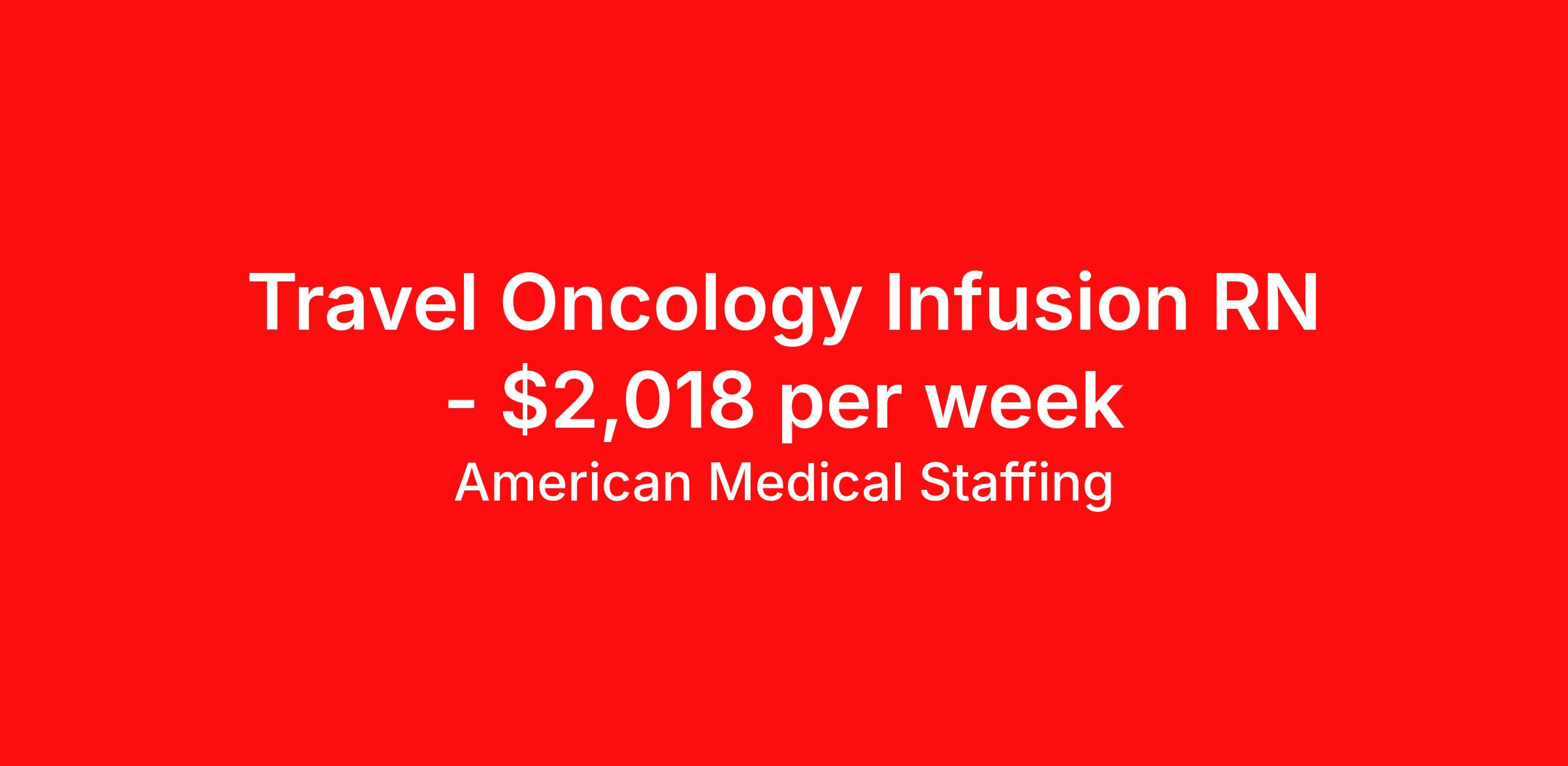 American Medical Staffing is seeking a travel nurse RN Infusion for a travel nursing job in Washington, District of Columbia. Job Description & Requirements Specialty: Infusion Discipline: RN Start Date: 04/13/2026 Duration: 13 weeks 40 hours per week Shift: 8 hours, days Employment Type: Travel We’re living in the new normal. Lives and careers look different today. So why shouldn’t you have a role that delivers excitement, fewer restrictions, and brings you closer to loved ones? At American Medical Staffing (AMS), we believe in supporting the pioneers who embody the sense of adventure each new placement brings and we’re looking for a RN: Infusion for our Hospital contract assignment. Job Title : RN: Infusion Location : Washington, District of Columbia Pay Range : Competitive, Negotiable, with Weekly Pay Schedule : 8-Hour Days, 07:00:00-15:00:00, 8.00-5 Contract Length : 13 Weeks Requirements : · 2 years of experience as a RN · Qualified applicants MUST have at least 2 years of experience in the Infusion · Valid RN license · Be willing to obtain District of Columbia licensure Why Choose American Medical Staffing? · Day-One Benefits : Medical, dental, and vision plans with no waiting period. · Wellness PTO : Build 1 or 2 weeks of paid time off into your contract. · Hotel Discounts : Save up to 60% on hotel bookings with access to 700,000 discounted properties. · Loyalty Program : Earn financial incentives automatically based on hours worked and assignment type. · Referral Program : $500 for you and $500 for each referral after 450 hours—no limits. · Working Advantage : Access exclusive discounts on retail, entertainment, and travel. · Scrub Discount : 20% off all scrubs through our customized AMS store. · Retirement Plans : 401(k) options to help you plan for the future. · Compliance & Credentialing Support : Let us handle the logistics so you can focus on patient care. Responsibilities · Deliver specialized care to patients across a variety of acute and subacute units. · Work closely with a multidisciplinary team of healthcare professionals to provide comprehensive and compassionate care. · Monitor patient conditions, administer treatments and document outcomes. · Advocate for the best possible patient experience while supporting recovery, safety, and continuity of care. Apply now to take the next step in your journey. American Medical Staffing is an Equal Employment Opportunity Employer and does not discriminate on the basis of race, color, religion, sex, national origin, sexual orientation, gender identity, disability, age, or any other non-merit factor. American Medical Staffing Job ID 106575. Pay package is based on 8 hour shifts and 40.0 hours per week (subject to confirmation) with tax-free stipend amount to be determined. Posted job title: RN:Infusion,07:00:00-15:00:00 About American Medical Staffing American Medical Staffing is a staffing agency headquartered in Baltimore, MD. Our goal is to CREATE an extraordinary experience for our health care professionals. Our roots are nurse owned and operated so we know what clinicians want - lots of options, a smooth and informed placement process, competitive and accurate pay, great customer service and responsiveness to requests, and advocacy when there is an issue. When AMS was founded in 2001, we started our company with a mission to be a better agency than our competitors. We have always put a heavy emphasis into what is best for our employees, not necessarily just our clients or our company. You are not an expense as you may be to a hospital; you are an asset. We take employee advocacy seriously; you are not just a number to us. The end result is that you don`t work for us; we work for you. Since starting in Baltimore, MD, we continue to grow throughout the country. Check out our industry leading reviews on Google and Indeed to see how much our clinicians enjoy working with us! · Benefits: AMS offers an array of benefits for any employee working 30 hours or more! Those eligible employees who choose to participate will pay the premiums with deductions from their pre-tax earnings. We offer a complete benefits package including Health Insurance, 401K with up to 2% match, Life, Vision, and Dental. From health and wellness support, financial or legal needs, or help with life's everyday challenges, our Employee Assistance Program provides you with resources, services and discounts to help you manage your unique concerns and save time, energy and money. We also offer additional Employee Perks that you can enjoy as an AMS employee: Scrubin – Uniform Discounts Working Advantage – unlimited access to thousands of exclusive discounts and special offers nationwide for theme parks, shows, tours, attractions, sports, concerts, hotels, rental cars, retail gift cards, movie tickets and much more Hotel Engine - Save up to 60% when booking hotel rooms, with access to more than 700,000 deeply discounted hotels worldwide. Discounted Pet Insurance Wellness Program, including fitness, nutrition and financial wellness Betterhelp - 1 month of free therapy, followed by a discounted rate for our Healthcare Professionals and their family members. Win Win Referral Bonus - $500 for you, and $500 for them! Benefits 401k retirement plan Life insurance Medical benefits Dental benefits Vision benefits