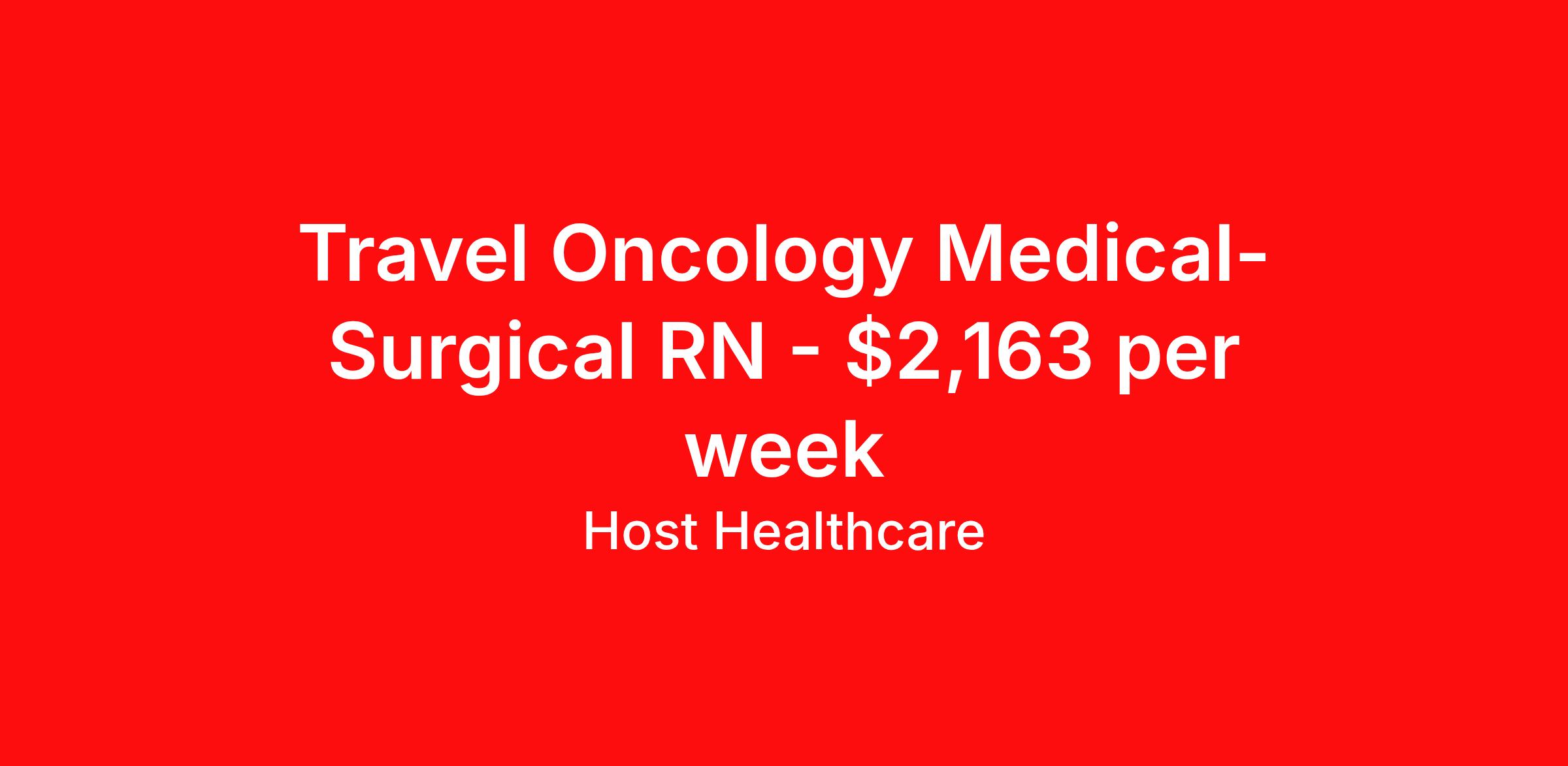 Host Healthcare is seeking a travel nurse RN Med Surg for a travel nursing job in Springfield, Illinois. Job Description & Requirements Specialty: Med Surg Discipline: RN Start Date: 04/06/2026 Duration: 13 weeks 36 hours per week Shift: 12 hours, days Employment Type: Travel Host Healthcare Job ID a1fVX000002gwsrYAA. Pay package is based on 12 hour shifts and 36 hours per week (subject to confirmation) with tax-free stipend amount to be determined. Posted job title: RN - Medical-Surgical About Host Healthcare At Host Healthcare, we provide a truly comfortable experience as you explore your travel nursing, therapy, or allied career. We make your travel healthcare journey easy by taking care of all the details, so you don’t have to. We are on a mission to help others live better and we do this by helping the healers of the world be as comfortable as possible. With access to tens of thousands of travel nursing, therapy, and allied jobs in all 50 states, our responsive and friendly recruiters find your dream position based on what’s important to you. During your assignment, get access to premium benefits, including Day 1 medical that continues up to 30 days between assignments, 401K matching, travel reimbursements, dedicated housing support, and more. We also offer 24/7 support from our team and access to our on-staff clinicians so you can feel comfortable and confident throughout your entire assignment. Travel comfortably with Host Healthcare. Benefits Referral bonus School loan reimbursement Vision benefits Wellness and fitness programs Company provided housing options License and certification reimbursement Life insurance Medical benefits Mileage reimbursement Pet insurance Discount program Employee assistance programs Guaranteed Hours Health savings account Holiday Pay 401k retirement plan Continuing Education Dental benefits