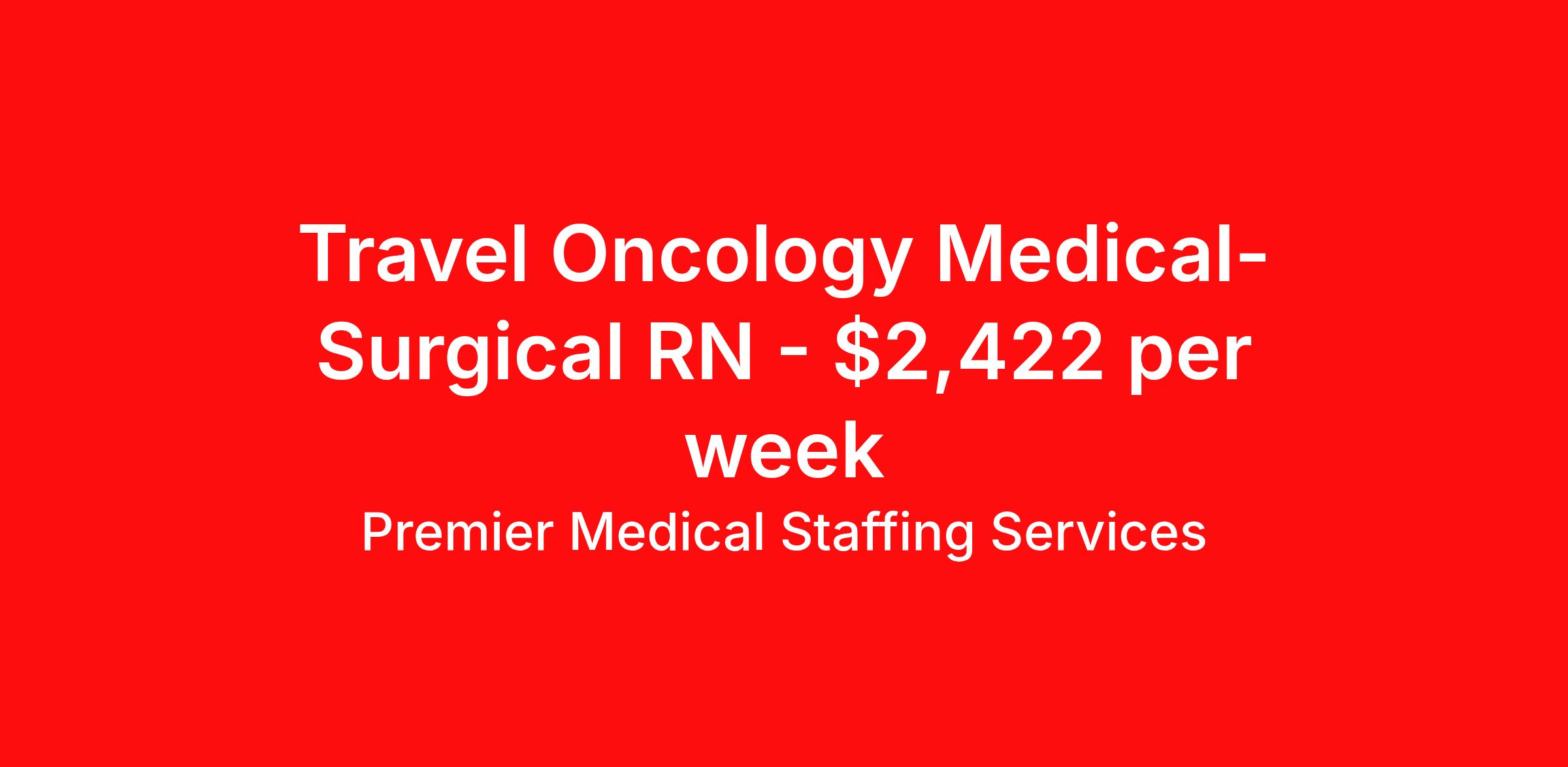Premier Medical Staffing Services is seeking a travel nurse RN Med Surg for a travel nursing job in Springfield, Illinois. Job Description & Requirements Specialty: Med Surg Discipline: RN Start Date: 04/13/2026 Duration: 13 weeks 36 hours per week Shift: 12 hours Employment Type: Travel Premier Medical Staffing Job ID 620943. Pay package is based on 12 hour shifts and 36 hours per week (subject to confirmation) with tax-free stipend amount to be determined. Posted job title: RN Med/Surg About Premier Medical Staffing Services Premier Medical Staffing Services, LLC is a nationally expanding healthcare staffing firm for healthcare professionals and companies. We understand our clients’ need for highly qualified, expertly trained medical professionals and are passionate about helping clinicians find employment opportunities that fit their personality and needs. Able to accommodate the ever-changing needs of the healthcare landscape, we offer per-diem, contract and direct hire placements to support the unique needs of each industry sector. Premier Medical Staffing Services is Joint Commission Certified, a Military Spouse Employment Partner and is certified as a Women’s Business Enterprise. We are proudly nurse owned.