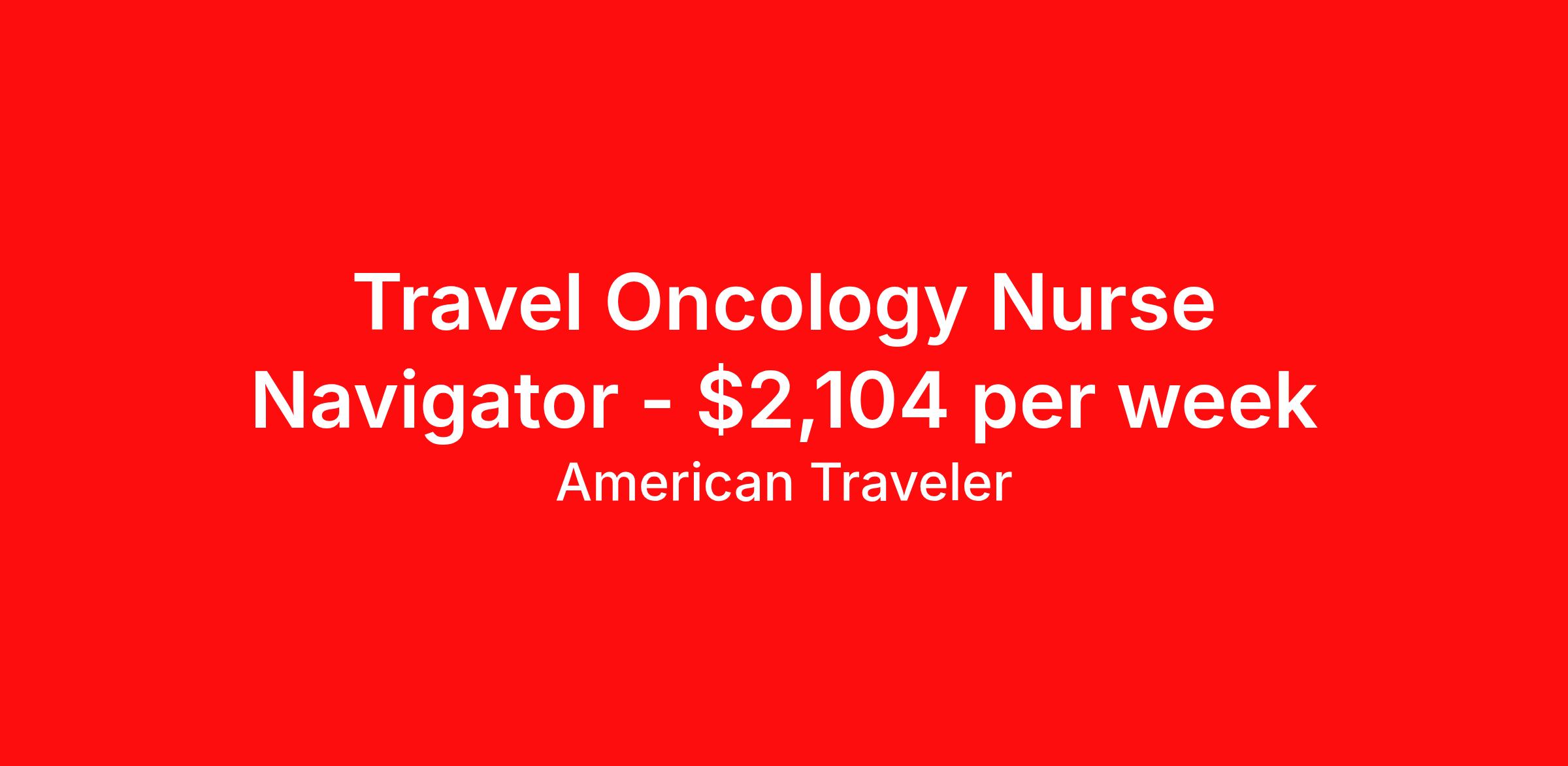 American Traveler is seeking a travel nurse RN Oncology for a travel nursing job in Chicago, Illinois. Job Description & Requirements Specialty: Oncology Discipline: RN Start Date: 03/30/2026 Duration: 13 weeks 40 hours per week Shift: 8 hours, days Employment Type: Travel Assignment Overview Shift: Days, 5x8hrs Hours: 40 hrs/wk Start Date: Mar 30, 2026 Length: 13 weeks Openings: 1 Description American Traveler is seeking an experienced RN for a Nurse Navigator Oncology position in an ambulatory setting, requiring oncology experience and an active Illinois RN license. Details Ambulatory care setting within a Medical Oncology unit Nurse Navigator role focused on guiding oncology patients through their care journey Day shift schedule: Monday through Friday, 8:00 AM - 4:30 PM (5x8s) No weekend or holiday requirements 13-week contract Requirements Active IL RN license required Current BLS certification required Oncology nursing experience required Ambulatory or outpatient care experience preferred Additional Information All time off and scheduling requests must be submitted at the time of initial consideration 2 professional references from a supervisor within the past 2 years required for consideration Full 7-year work history with all gaps explained required for consideration American Traveler Job ID P-680206. Pay package is based on 8 hour shifts and 40 hours per week (subject to confirmation) with tax-free stipend amount to be determined. Posted job title: Travel RN - Med/Surg - Oncology About American Traveler With over 25 years of experience, American Traveler has established a reputation for outstanding customer service. Our team ensures a smooth, worry-free experience for those starting on or expanding their travel nursing and allied careers. With thousands of travel nursing and allied jobs nationwide, our attentive and approachable recruiters find positions that align perfectly with your career aspirations and personal requirements. American Traveler offers exceptional benefits, including premium medical, dental, vision and life insurance beginning day one of your assignment, generous 401(k) match, substantial housing stipends, and more. Additionally, with 24/7 support and access to our in-house clinicians, you are assured confidence and comfort throughout your assignment. With our team behind you, you can relax and enjoy a rewarding travel career.