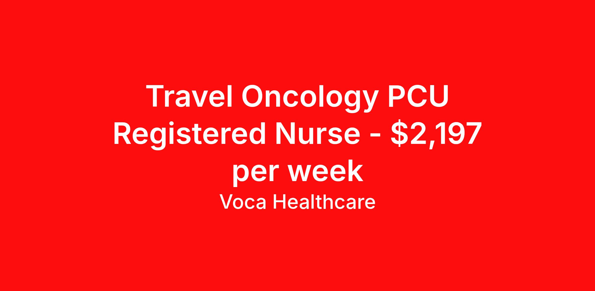 Voca Healthcare is seeking a travel nurse RN PCU - Progressive Care Unit for a travel nursing job in Columbus, Ohio. Job Description & Requirements Specialty: PCU - Progressive Care Unit Discipline: RN Start Date: 05/04/2026 Duration: 16 weeks 36 hours per week Shift: 12 hours, nights Employment Type: Travel Benefits available on 1st of the month after start: Holiday pay Weekly pay Retention bonus 401k retirement plan Medical benefits Dental benefits Vision benefits Referral bonus Voca Healthcare Job ID 17995179. Pay package is based on 12 hour shifts and 36.0 hours per week (subject to confirmation) with tax-free stipend amount to be determined. Posted job title: RN:PCU - Progressive Care Unit,19:00:00-07:00:00 About Voca Healthcare As a Voca Traveler, you will gain new clinical skills, visit amazing places and meet awesome healthcare professionals. As a travel health professional, your experience and dedication to patient care is in high demand throughout the United States. Whether you are a veteran traveler looking for your next opportunity, or you are looking to travel for the first time, Voca is here to support you. Voca’s experienced and dedicated travel team works in concert with you every step of the way. Our long-standing partnerships with some of the most respected and recognized healthcare organizations in the country allow us to identify career opportunities to help you increase your knowledge and experience while working with some of the best physicians and healthcare professionals in the world. At Voca, we strongly believe a better career results in a happier you. We are here to help you find a position that is professionally and personally rewarding. Benefits Holiday Pay 401k retirement plan Medical benefits Dental benefits Vision benefits Guaranteed Hours