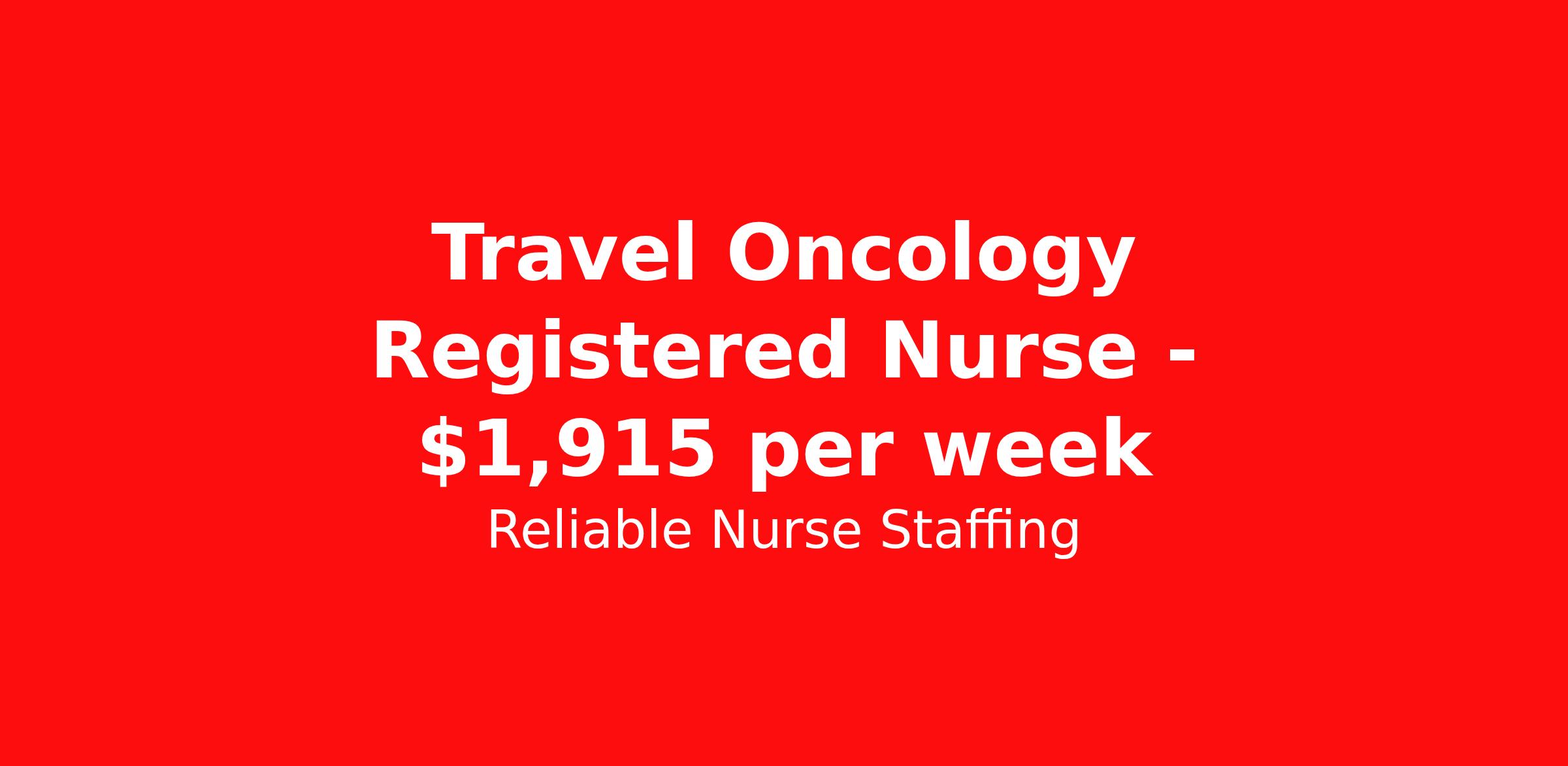 Reliable Nurse Staffing is seeking a travel nurse RN Oncology for a travel nursing job in Evansville, Indiana. Job Description & Requirements Specialty: Oncology Discipline: RN Start Date: 04/05/2026 Duration: 12 weeks 36 hours per week Shift: 12 hours, nights Employment Type: Travel Reliable Nurse Staffing Job ID 60107215. Pay package is based on 12 hour shifts and 36 hours per week (subject to confirmation) with tax-free stipend amount to be determined. About Reliable Nurse Staffing Providing reliable, competent, and compassionate care to our patients and clients. Benefits Weekly pay Holiday Pay Guaranteed Hours Referral bonus Medical benefits Dental benefits Vision benefits Life insurance