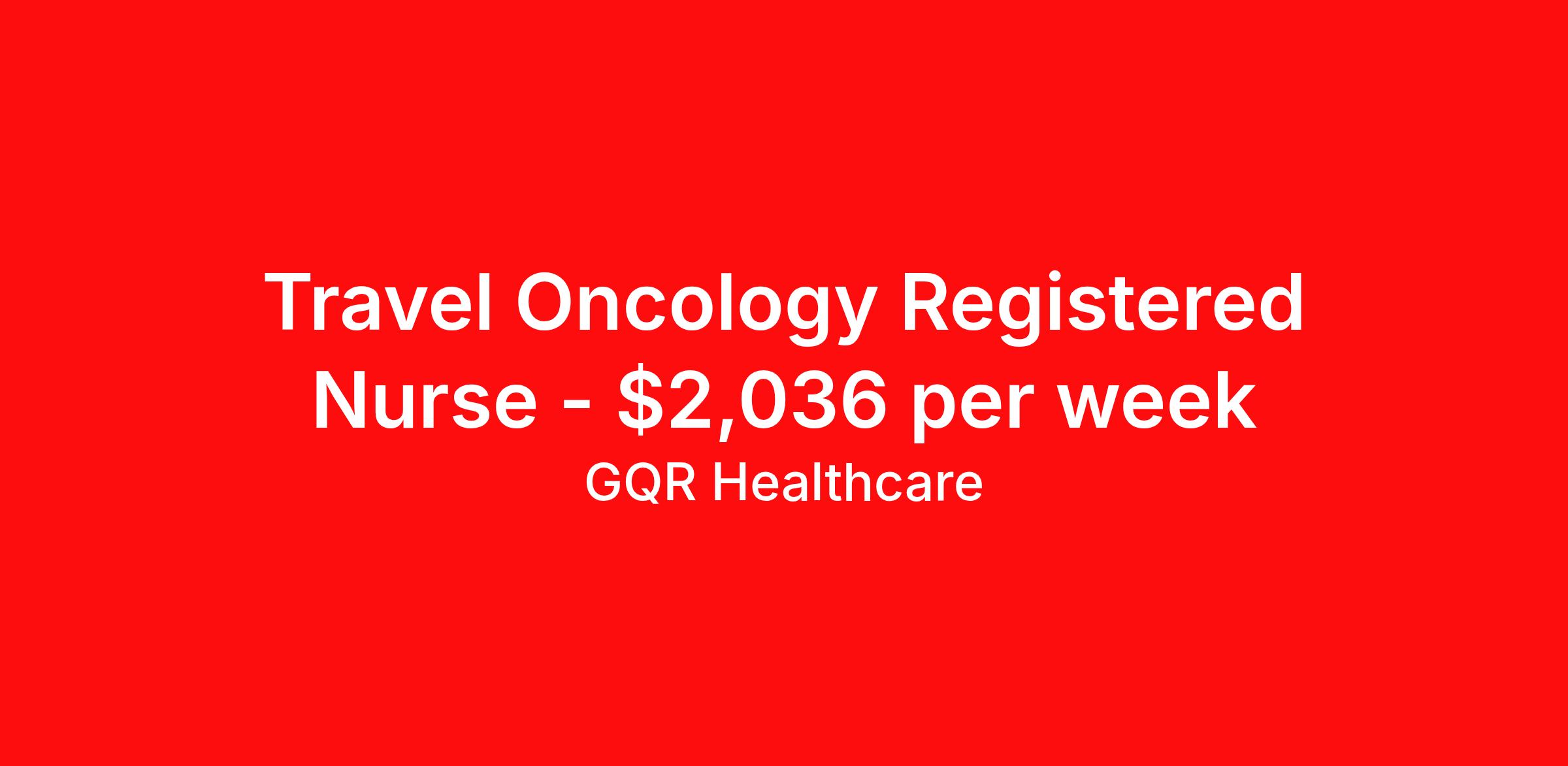 GQR Healthcare is seeking a travel nurse RN Oncology for a travel nursing job in Gilbert, Arizona. Job Description & Requirements Specialty: Oncology Discipline: RN Start Date: 03/30/2026 Duration: 13 weeks 36 hours per week Shift: 12 hours, days Employment Type: Travel Contract - W2 Oncology Registered Nurse (RN) Job Location: Gilbert, Arizona Start Date: March 30, 2026 Profession: Registered Nurse (RN) Facility: Estimated Pay: $2035.8 - $2130.8 Duration:13 weeks Specialty:Oncology Shift: Day Shift Details: null Day Job Type: Travel *Estimated weekly pay includes projected hourly wages and weekly meal and lodging per diems for eligible clinicians based on nationally published GSA rates. Actual weekly pay and per diems may differ from the amount shown and are subject to change during an assignment. Benefits: Day 1 Insurance Cigna medical, MetLife dental and vision insurance License reimbursement for new licenses needed for each assignment Discounts with hotels and rental cars A dedicated recruiter and support team that will help you every step of the way to sure you start on time and have an exceptional experience Referral bonus up to $700 About the Company: Finding the right role is about more than just matching skills to a job—it’s about aligning with your goals, values, and the way you want to work. As an award-winning talent partner, we support healthcare professionals through every step of that process, offering meaningful opportunities, clear guidance, and long-term partnership. From our first conversation to your first day on the job (and beyond!), we’re here to help you move forward with confidence. GQR Job ID 783432. Pay package is based on 12 hour shifts and 36 hours per week (subject to confirmation) with tax-free stipend amount to be determined. Posted job title: Registered Nurse (RN) About GQR Healthcare GQR’s Healthcare team specializes in connecting experts within the industry to highly skilled healthcare professionals across the US market. In the competitive healthcare market, we recognize that the industry’s common goals of improved quality of care and patient outcomes are wholly reliant upon the professionals directly supporting these initiatives. Leveraging our extensive candidate network, we deliver continuity of care for the communities our partners serve to ensure the patient experience is of the highest quality. Through deep market specialization and a unique approach to talent acquisition, GQR Healthcare provides an unparalleled and personalized experience across all medical specialties in nursing and within diverse healthcare platforms across the industry.