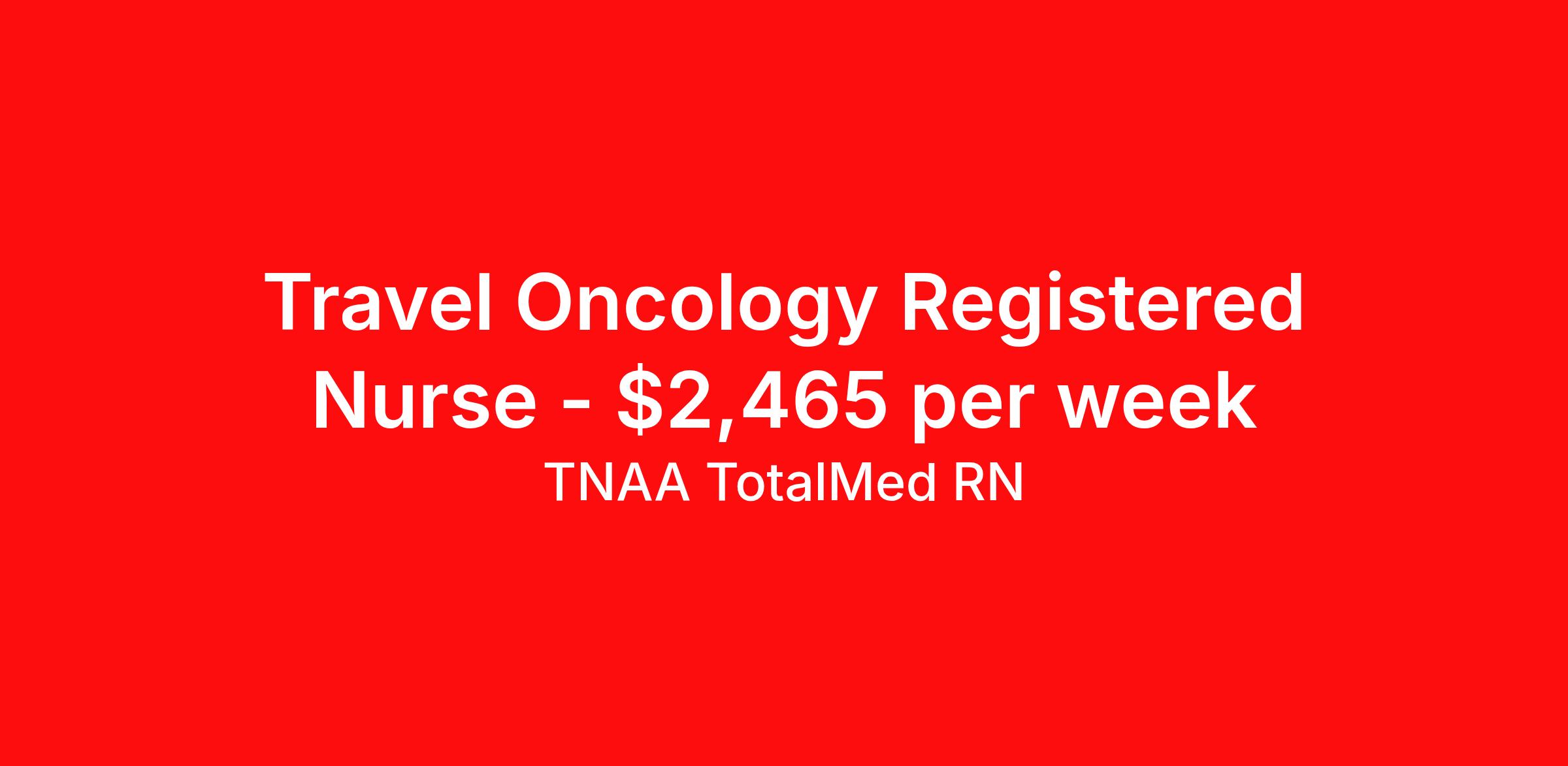 TNAA TotalMed RN is seeking a travel nurse RN Oncology for a travel nursing job in Wichita, Kansas. Job Description & Requirements Specialty: Oncology Discipline: RN Start Date: 04/26/2026 Duration: 13 weeks 48 hours per week Shift: 12 hours, nights Employment Type: Travel We're looking for Oncology RNs for an immediate travel nurse opening in Wichita, KS. The right RN should have 1-2 years recent acute care experience. Read below for more requirements. As an Oncology RN, you'll provide top-level care for critically or chronically ill cancer patients. Under direction from a physician, you may administer chemotherapy, implement new methods of symptom treatment, and monitor patients' progress. Oncology Travel Nurses are crucial in creating a supportive care environment. A large portion of this important job is educating cancer patients about treatment options and procedures. As an Oncology Travel Nurse, you should be prepared to perform the following tasks: Coordinate treatment plans. Provide patient education and treatment tracking. Be a reliable source of comfort and support for cancer patients and their families. Attend to a great number of details while working under pressure. Implement best practice treatment protocols in a variety of settings. Oncology Travel Nurses should be able to stand and walk for long periods of time, as well as bend, lean and stoop without difficulty. RNs should be able to easily lift 20 pounds. Moving or lifting of patients may require lifting of up to 50 pounds at times. Oncology RNs may face hazards from exposure to chemicals and infectious diseases. Requirements*: BLS, 2 Years * Additional certifications may be required before beginning an assignment. TotalMed Travel Job ID 1389872. Pay package is based on 12 hour shifts and 48 hours per week (subject to confirmation) with tax-free stipend amount to be determined. Posted job title: Oncology - Oncology RN - Travel Nurse About TNAA TotalMed RN TotalMed is a Top Ten, travel nursing and healthcare staffing agency with the mission of igniting purpose in healthcare. The organization staffs nurses, therapists, pharmacists, and other clinicians of all specialties in all 50 states. They offer local and travel jobs and match caregivers with the right organization to assist both facilities and patients. As an organization, they focus on putting highly-skilled staff into facilities to ensure adequate staffing for a better patient experience. TotalMed specializes in recruiting and placing healthcare professionals in travel, PRN, and permanent positions across the country in Nursing and Allied Health. Throughout 2020, the organization filled roles at even the most short-staffed facilities during the most challenging time in healthcare. By matching the right travel healthcare professional with the right organization, TotalMed continues to offer a lifeline to facilities and their patients. Benefits Weekly pay Guaranteed Hours Continuing Education 401k retirement plan Sick pay Wellness and fitness programs Referral bonus Employee assistance programs Medical benefits Dental benefits Vision benefits Benefits start day 1