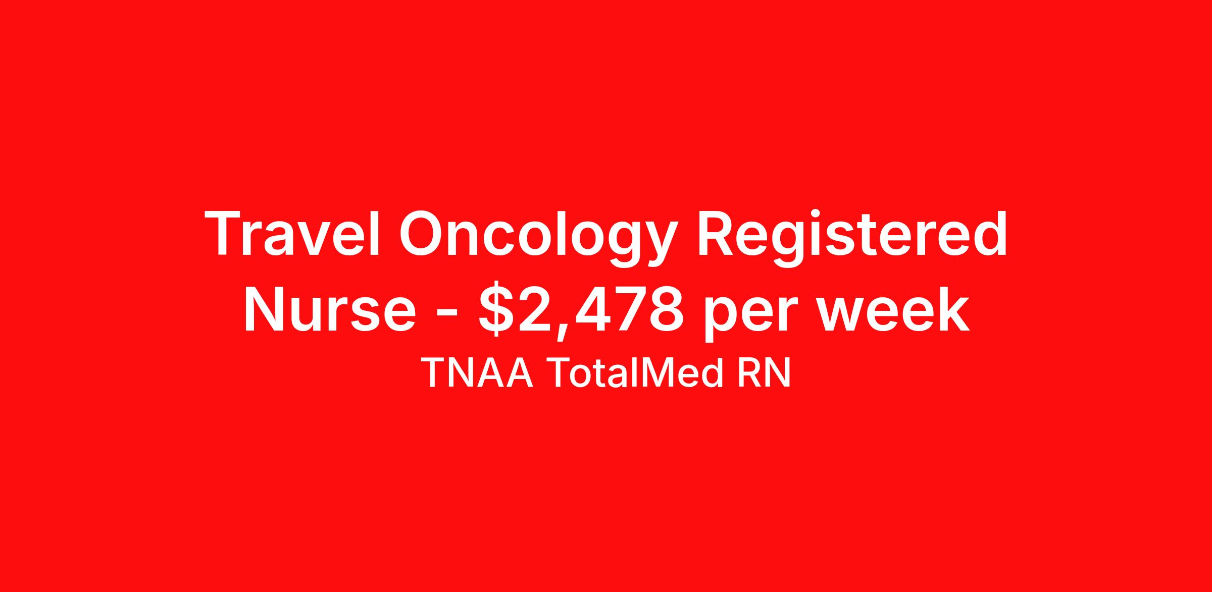 TNAA TotalMed RN is seeking a travel nurse RN Oncology for a travel nursing job in New York, New York. Job Description & Requirements Specialty: Oncology Discipline: RN Start Date: 04/27/2026 Duration: 13 weeks 40 hours per week Shift: 10 hours, days Employment Type: Travel As an RN Infusion/PICC Nurse, you will provide specialized nursing care to patients requiring infusion therapy and/or PICC line management. With a focus on patient safety, comfort, and education, you will play a key role in managing complex therapies such as intravenous (IV) infusions, chemotherapy, and long-term antibiotic therapy. Responsibilities: Perform comprehensive patient assessments to determine the need for infusion therapy or PICC placement Insert, maintain, and care for PICC lines and other central venous access devices, ensuring patient safety and minimizing complications Administer IV medications, fluids, and other treatments as prescribed, ensuring proper techniques for infusions and monitoring patient response Monitor patient responses during and after infusions, adjusting care plans as needed based on clinical progress or side effects Provide patient and family education on PICC care, infusion therapy, and managing potential complications at home Collaborate with the healthcare team to coordinate care, manage patient symptoms, and ensure continuity of care across settings Assess for and prevent complications related to infusion therapy, including infection, document all nursing interventions, patient responses, and care plans in a timely and accurate manner, in accordance with healthcare regulations and best practices Ensure adherence to infection control and safety protocols, including proper handling and disposal of equipment Manage a caseload of patients, ensuring timely visits and updates while maintaining quality and patient satisfaction The ideal candidate must have at least one year of experience as an RN in an infusion setting. Additionally, they should possess a current BLS certification and be eligible for State licensure. Additional certifications may be required. Infusion RNs should be able to stand or walk for long periods and must be able to bend, stoop, and lift with proper body mechanics. Infusion RNs should be autonomous, organized, and compassionate with excellent interpersonal skills. Requirements*: BLS, CHEMO, 2 Years * Additional certifications may be required before beginning an assignment. TotalMed Travel Job ID 1396235. Pay package is based on 10 hour shifts and 40 hours per week (subject to confirmation) with tax-free stipend amount to be determined. Posted job title: Infusion-PICC - Infusion-PICC RN - Travel Nurse About TNAA TotalMed RN TotalMed is a Top Ten, travel nursing and healthcare staffing agency with the mission of igniting purpose in healthcare. The organization staffs nurses, therapists, pharmacists, and other clinicians of all specialties in all 50 states. They offer local and travel jobs and match caregivers with the right organization to assist both facilities and patients. As an organization, they focus on putting highly-skilled staff into facilities to ensure adequate staffing for a better patient experience. TotalMed specializes in recruiting and placing healthcare professionals in travel, PRN, and permanent positions across the country in Nursing and Allied Health. Throughout 2020, the organization filled roles at even the most short-staffed facilities during the most challenging time in healthcare. By matching the right travel healthcare professional with the right organization, TotalMed continues to offer a lifeline to facilities and their patients. Benefits Weekly pay Guaranteed Hours Continuing Education 401k retirement plan Sick pay Wellness and fitness programs Referral bonus Employee assistance programs Medical benefits Dental benefits Vision benefits Benefits start day 1