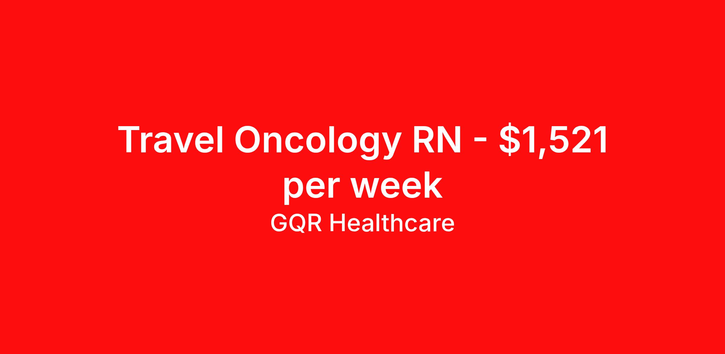 GQR Healthcare is seeking a travel nurse RN Oncology for a travel nursing job in San Antonio, Texas. Job Description & Requirements Specialty: Oncology Discipline: RN Start Date: ASAP Duration: 13 weeks 36 hours per week Shift: 12 hours Employment Type: Travel GQR Healthcare is representing a well-known health system that is seeking Oncology providers. If you think this is something you might be interested in, please apply now and a GQR consultant will be in touch with you! GQR Job ID 206491. Pay package is based on 12 hour shifts and 36 hours per week (subject to confirmation) with tax-free stipend amount to be determined. Posted job title: Registered Nurse (RN) About GQR Healthcare GQR’s Healthcare team specializes in connecting experts within the industry to highly skilled healthcare professionals across the US market. In the competitive healthcare market, we recognize that the industry’s common goals of improved quality of care and patient outcomes are wholly reliant upon the professionals directly supporting these initiatives. Leveraging our extensive candidate network, we deliver continuity of care for the communities our partners serve to ensure the patient experience is of the highest quality. Through deep market specialization and a unique approach to talent acquisition, GQR Healthcare provides an unparalleled and personalized experience across all medical specialties in nursing and within diverse healthcare platforms across the industry.