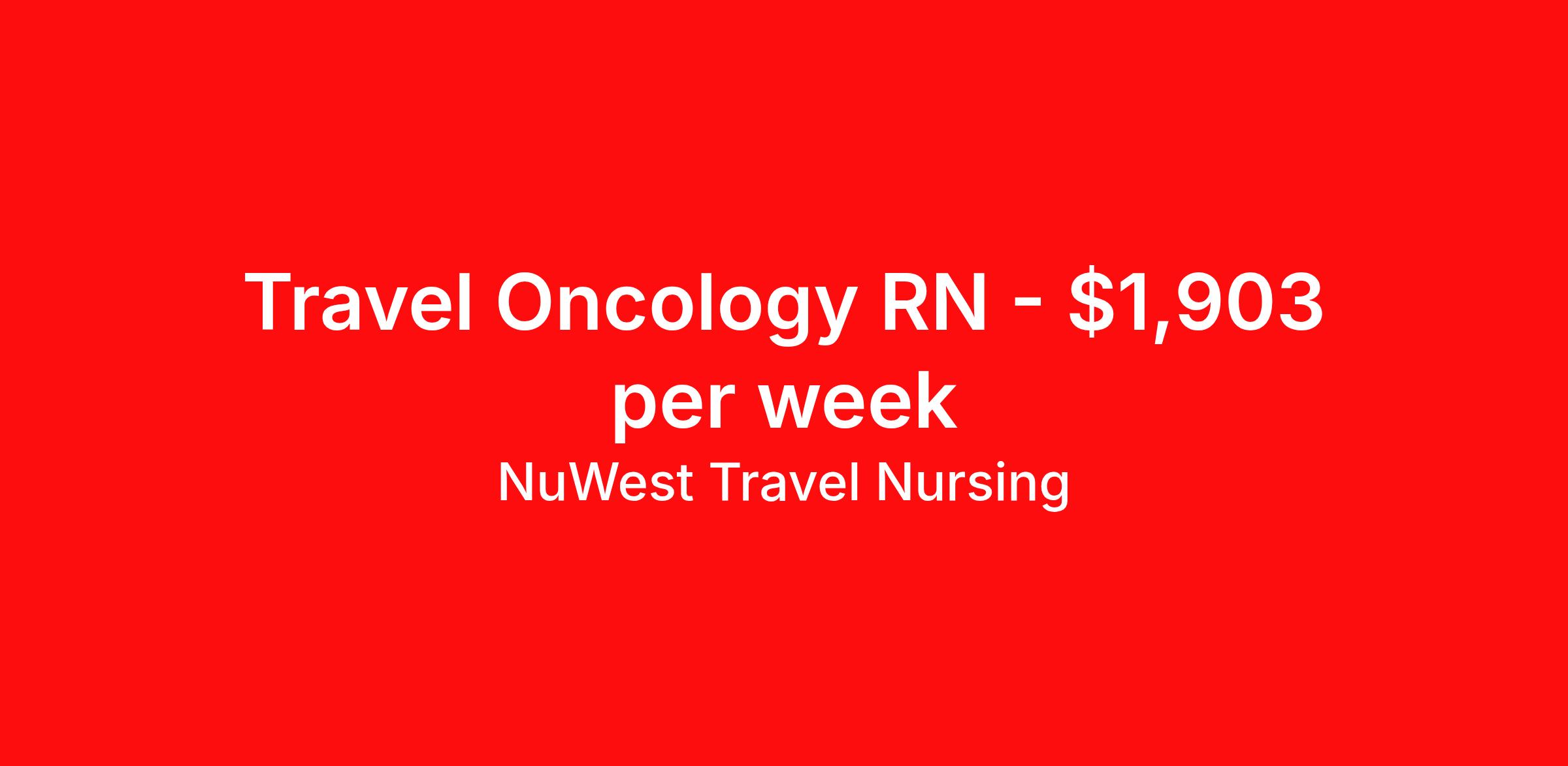 NuWest Travel Nursing is seeking a travel nurse RN Hematology / Oncology for a travel nursing job in Webster, Texas. Job Description & Requirements Specialty: Hematology / Oncology Discipline: RN Duration: 13 weeks 36 hours per week Shift: 12 hours Employment Type: Travel We have a new assignment for RN - Oncology in Webster, TX and are interviewing ASAP. This is a travel assignment, 3x12 Nights position at a great facility. Pay Range: $1748.32 - $2056.84 Per Week Benefits include medical, dental, vision, 401K, weekly direct deposit, and more! NuWest Travel Nursing Job ID 270382. Pay package is based on 12 hour shifts and 36 hours per week (subject to confirmation) with tax-free stipend amount to be determined.