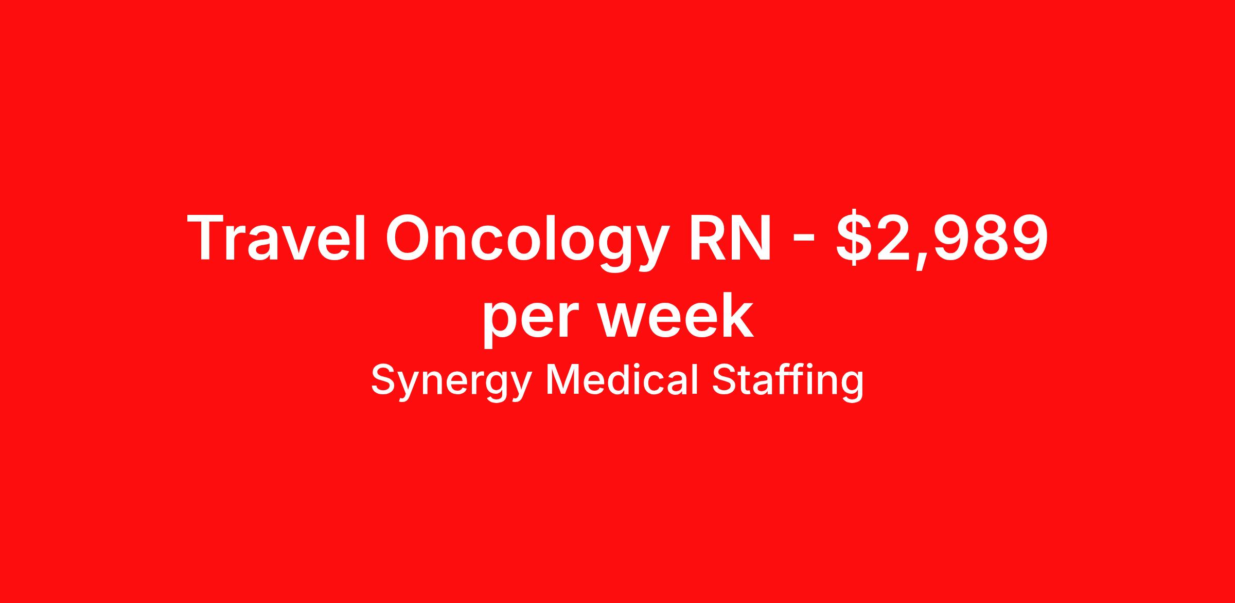 Synergy Medical Staffing is seeking a travel nurse RN Hematology / Oncology for a travel nursing job in Chico, California. Job Description & Requirements Specialty: Hematology / Oncology Discipline: RN Start Date: 03/23/2026 Duration: 13 weeks 36 hours per week Shift: 12 hours, nights Employment Type: Travel Travel, RN - Oncology Location: Chico, California Shift: 3x12 NOC, 23:00:00-11:00:00, 12.00-3 Duration 13 Weeks When you join Synergy Medical Staffing, you’ll have a dedicated recruiter helping you at all times. Your recruiter is a cross between a career coach and a concierge. They will help you fine-tune your resume, find your next job, and locate an apartment (even one that takes pets!). Make one call and get help with everything from placement to housing to payroll, even travel directions! As a travel, contract and permanent placement medical staffing company with over 20 years of experience in the industry, we understand your needs. Synergy’s Benefits are best in class and include the following: 401K that matches up to 5% of your pay and you are 100% vested from Day 1. Medical, Dental, Vision, Life insurance, Long and short-term disability and others Loyality Program Weekly pay Holiday Pay (varies by Assignment) Guaranteed Hours (varies by Assignment) Referral bonus Continuing Education License and certification reimbursement Synergy Medical Staffing Job ID 35982492. Pay package is based on 12 hour shifts and 36.0 hours per week (subject to confirmation) with tax-free stipend amount to be determined. Posted job title: RN:Oncology,23:00:00-11:00:00 About Synergy Medical Staffing When you join Synergy Medical Staffing, you’ll have a dedicated recruiter helping you at all times. Your recruiter is a cross between a career coach and a concierge. They will help you fine-tune your resume, find your next job, and locate an apartment (even one that takes pets!). Make one call and get help with everything from placement to housing to payroll, even travel directions! As a travel, contract and permanent placement medical staffing company with over 12 years of experience in the industry, we understand your needs. Are you interested in traveling, or just a job around the corner? Whatever your preference, you can be sure there are plenty of Nursing Jobs, Allied Jobs and Physical Therapy Jobs, Occupational Therapy Jobs, Speech Therapy Jobs and Rehab Therapy jobs anywhere you want to go. Synergy Medical Staffing professionals have been in the Medical staffing employment and staffing industry for over 12 years, and have developed solid relationships with numerous healthcare facilities nationwide. Contact us now and expand your medical career with new opportunities from Synergy Medical Staffing. Synergy’s Benefits are best in class and include the following 401K Day 1 Full Medical, Dental, Vision, Life insurance, Long and short term disability and others Student Loan Repayment and CEU reimbursement Loyalty bonus after 600 hours Benefits Discount program Weekly pay Holiday Pay Guaranteed Hours Referral bonus Medical benefits Dental benefits Continuing Education License and certification reimbursement Life insurance 401k retirement plan Cancelation protection Vision benefits