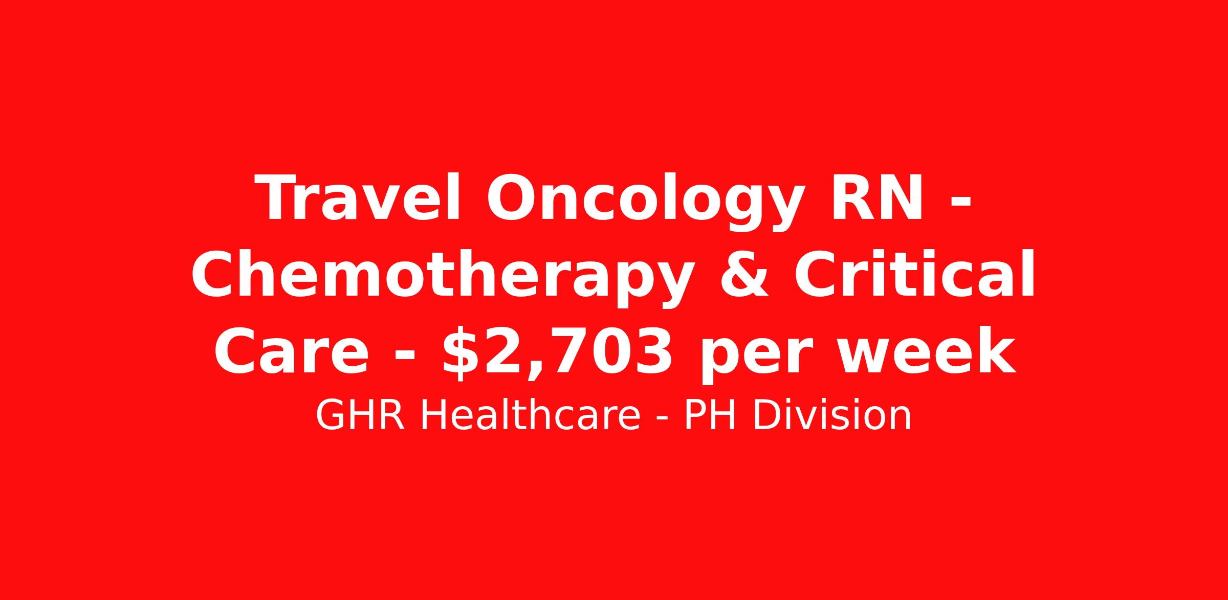 GHR Healthcare - PH Division is seeking a travel nurse RN Oncology for a travel nursing job in Cleveland, Ohio. Job Description & Requirements Specialty: Oncology Discipline: RN Start Date: 04/19/2026 Duration: 12 weeks 36 hours per week Shift: 12 hours Employment Type: Travel Planet Healthcare Job ID 73277673. Pay package is based on 12 hour shifts and 36 hours per week (subject to confirmation) with tax-free stipend amount to be determined. About GHR Healthcare - PH Division For over 30 years, GHR Healthcare has been the bridge between healthcare professionals and the facilities that need them nationwide. We're committed to uncovering your ideal fit, supported by GHR's dedication to competitive compensation, transparent communication, and a devoted team that genuinely cares about your career journey. You can trust us to stand by your side as your advocate, confidante, and partner in advancing your career. At GHR, care and consideration are at the heart of everything we do. Visit ghrhealthcare.com to learn more.