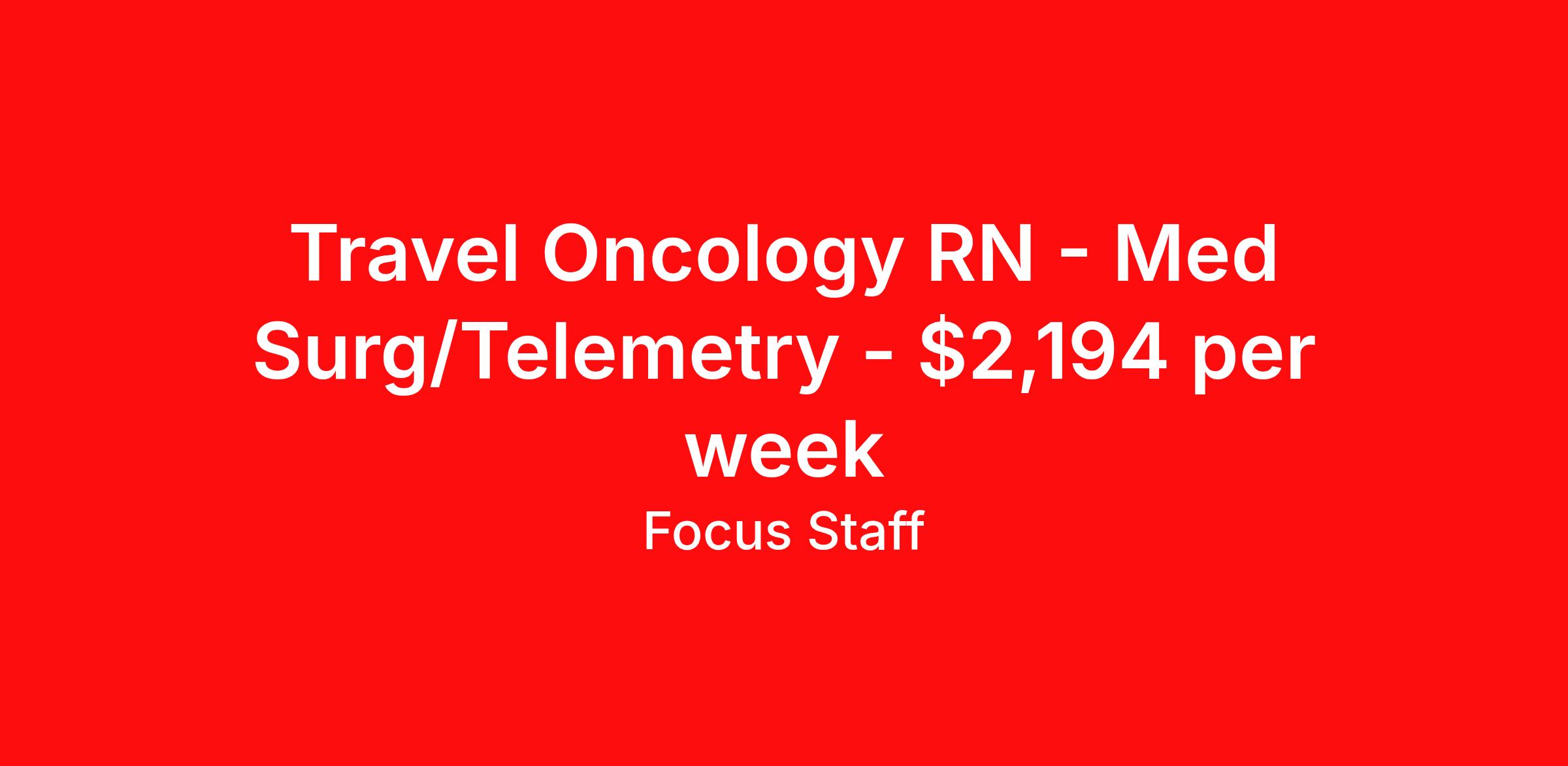Travel Oncology RN - Med Surg/Telemetry - $2,194 per week