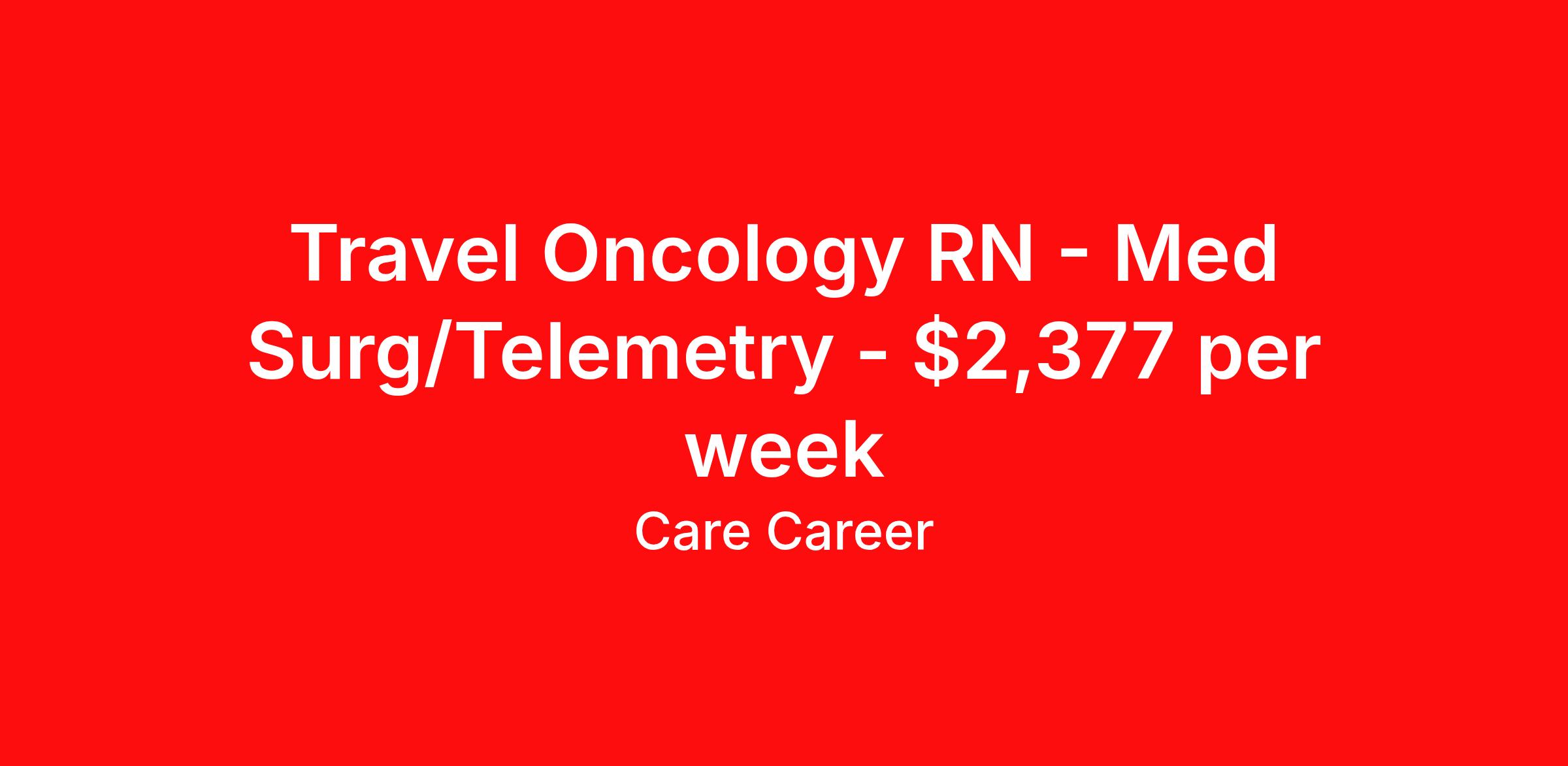 Travel Oncology RN - Med Surg/Telemetry - $2,377 per week