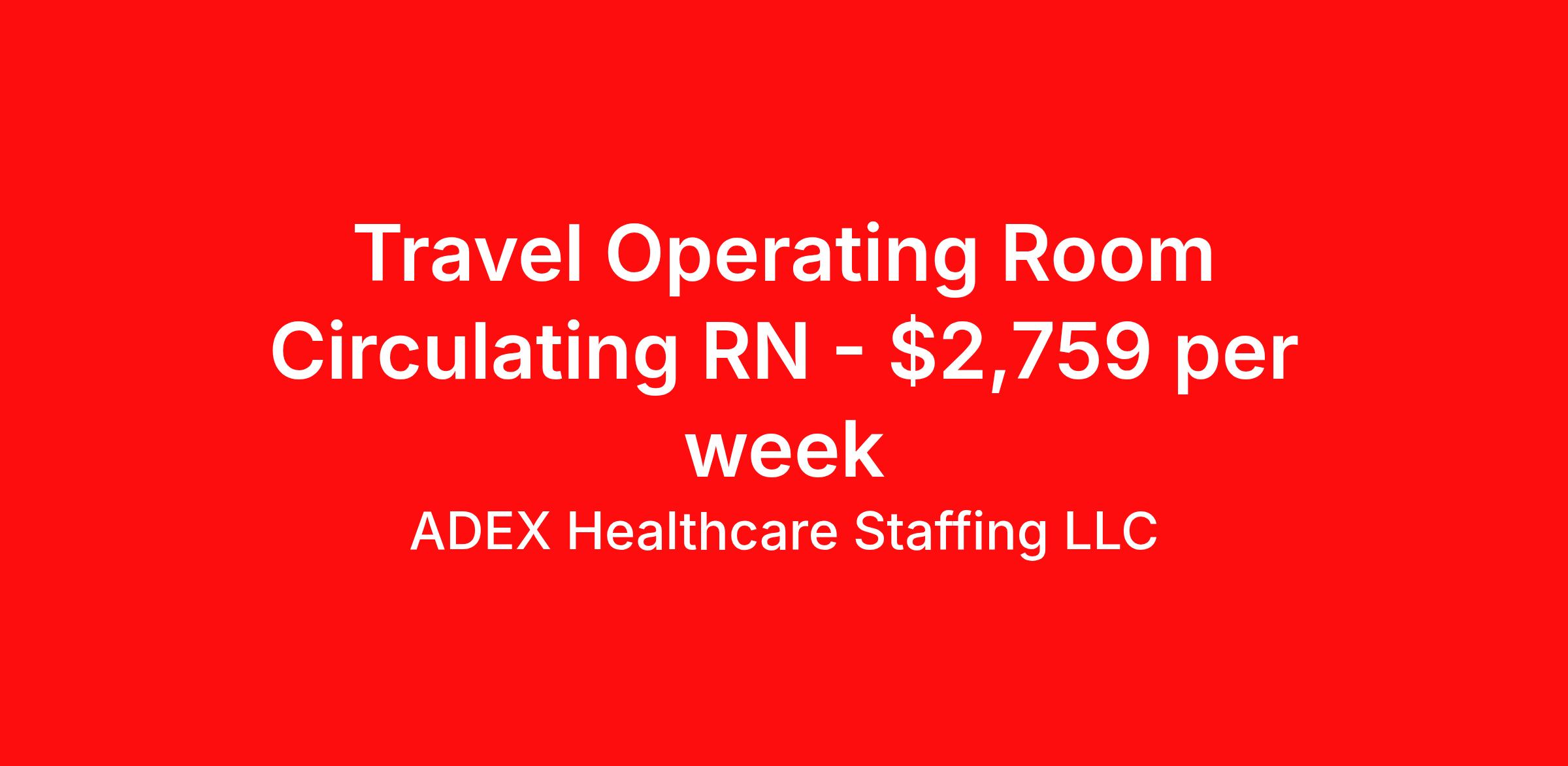 ADEX Healthcare Staffing LLC is seeking a travel nurse RN OR - Operating Room for a travel nursing job in Hermiston, Oregon. Job Description & Requirements Specialty: OR - Operating Room Discipline: RN Start Date: ASAP Duration: 13 weeks 36 hours per week Shift: 12 hours, days Employment Type: Travel RN Position Job Notes: Travel or Local Registered Nurse needed for ASAP start. A minimum of 2 years of recent hospital bedside experience is required. Candidates must be able to start within 5 weeks. Opportunity for extension upon successful completion of the initial assignment. $750 referral bonus available. Opportunity: RN - Circulator OR Job Details: • Work 8.5-hour shifts from 11:00 AM to 7:30 PM • Perform nursing activities in preoperative, intraoperative, and postoperative phases of surgical care • On-call rotation required • Act as patient advocate and supervise assigned personnel • Utilize nursing process and established standards of care, policies, and procedures • Report to Unit Nurse Manager, House Supervisor, or RN Team Leader • May be floated to other departments where qualified to perform patient care before core staff is floated • Ensure provision of quality care for surgical patients • Specialize in perioperative nursing practice Facility: This healthcare facility provides comprehensive surgical services with a focus on perioperative patient care. The medical center operates multiple departments and maintains established standards of care, policies, and procedures to ensure quality patient outcomes. The facility emphasizes teamwork and professional development while supporting both core staff and agency nurses in delivering excellent surgical care. Location: Hermiston, OR Hermiston offers a welcoming community atmosphere in Eastern Oregon with access to beautiful outdoor recreation and a lower cost of living. The area provides excellent work-life balance opportunities with proximity to the Columbia River and various recreational activities throughout the year. Adex Job ID 292850. Pay package is based on 12 hour shifts and 36 hours per week (subject to confirmation) with tax-free stipend amount to be determined. About ADEX Healthcare Staffing LLC ADEX has been placing healthcare professionals across the US since 2004. Originally founded in Atlanta, GA, the company's headquarters are now located in Tampa, FL. JCAHO certified since 2009. Benefits Referral bonus
