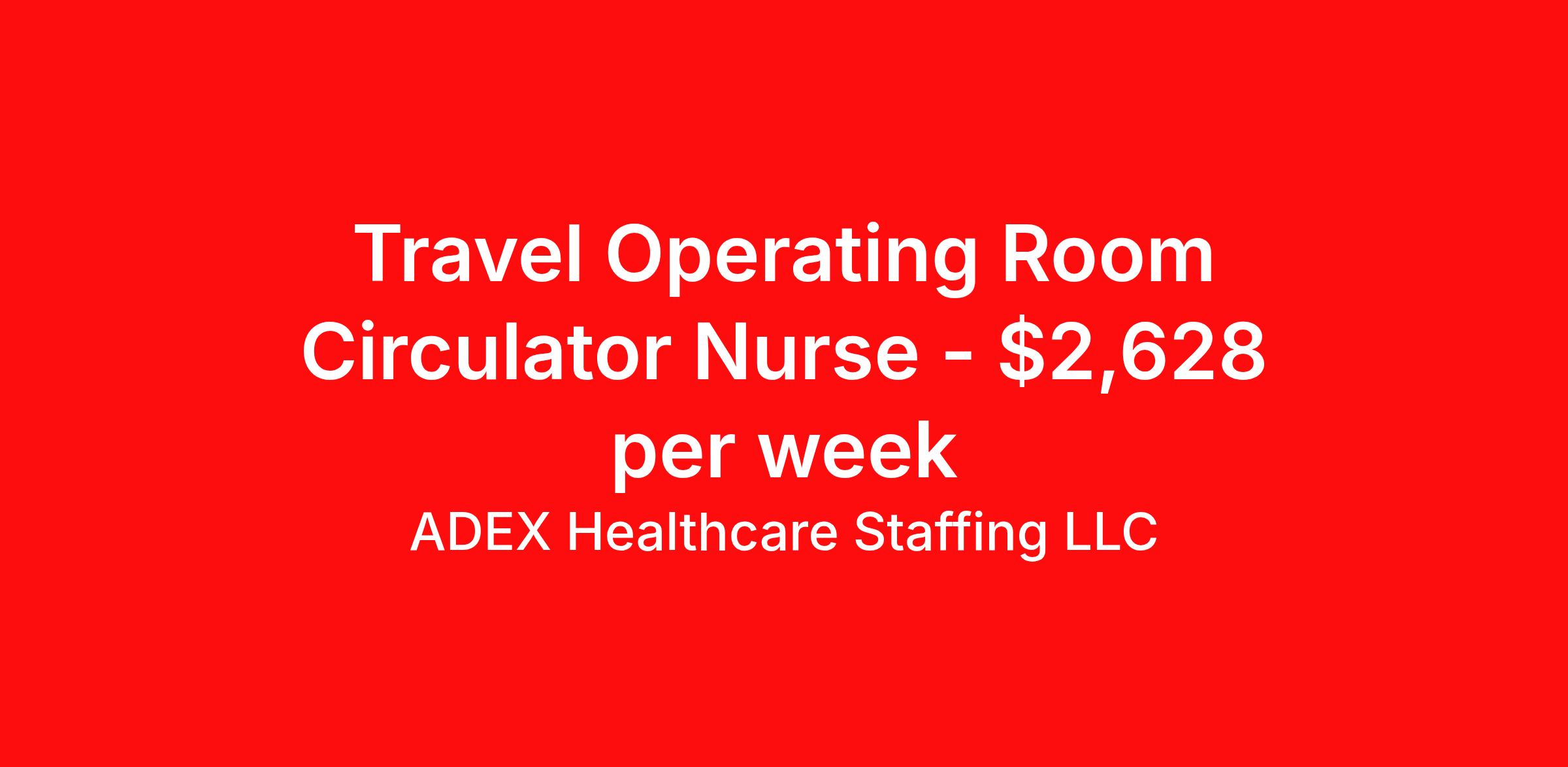 ADEX Healthcare Staffing LLC is seeking a travel nurse RN OR - Operating Room for a travel nursing job in Morristown, Vermont. Job Description & Requirements Specialty: OR - Operating Room Discipline: RN Start Date: 04/06/2026 Duration: 13 weeks 36 hours per week Shift: 12 hours, rotating Employment Type: Travel RN Position Job Notes: Travel or Local Registered Nurse needed for ASAP start. A minimum of 2 years of recent hospital bedside experience is required. Candidates must be able to start within 5 weeks. Opportunity for extension upon successful completion of the initial assignment. $750 referral bonus available. Opportunity: RN - Circulator OR Job Details: • Day and evening shifts available • Flexible scheduling options: 4 ten-hour shifts (7:00 AM-5:30 PM or 8:00 AM-6:30 PM) or 5 eight-hour shifts (7:00 AM-3:30 PM, 9:00 AM-5:30 PM, or 10:00 AM-6:30 PM) • On-call rotation required once per week and every fifth weekend • Work as a circulating nurse in the operating room environment • Support surgical procedures by maintaining sterile environment and assisting surgical team • Coordinate patient care throughout the perioperative process Facility: This healthcare organization provides comprehensive medical services including advanced surgical care through modern operating room facilities. The facility maintains high standards for patient safety and surgical excellence, offering a supportive work environment for perioperative nursing professionals. The organization is committed to delivering quality healthcare services to the community while fostering professional growth and development for its nursing staff. Location: Morristown, VT Morristown offers a quintessential Vermont experience with beautiful mountain scenery and a close-knit community atmosphere in the heart of the Green Mountains. The area provides excellent outdoor recreation opportunities year-round, from skiing and hiking to enjoying the natural beauty of rural Vermont, making it an ideal location for healthcare professionals seeking a peaceful work-life balance. Adex Job ID 294736. Pay package is based on 12 hour shifts and 36 hours per week (subject to confirmation) with tax-free stipend amount to be determined. About ADEX Healthcare Staffing LLC ADEX has been placing healthcare professionals across the US since 2004. Originally founded in Atlanta, GA, the company's headquarters are now located in Tampa, FL. JCAHO certified since 2009. Benefits Referral bonus