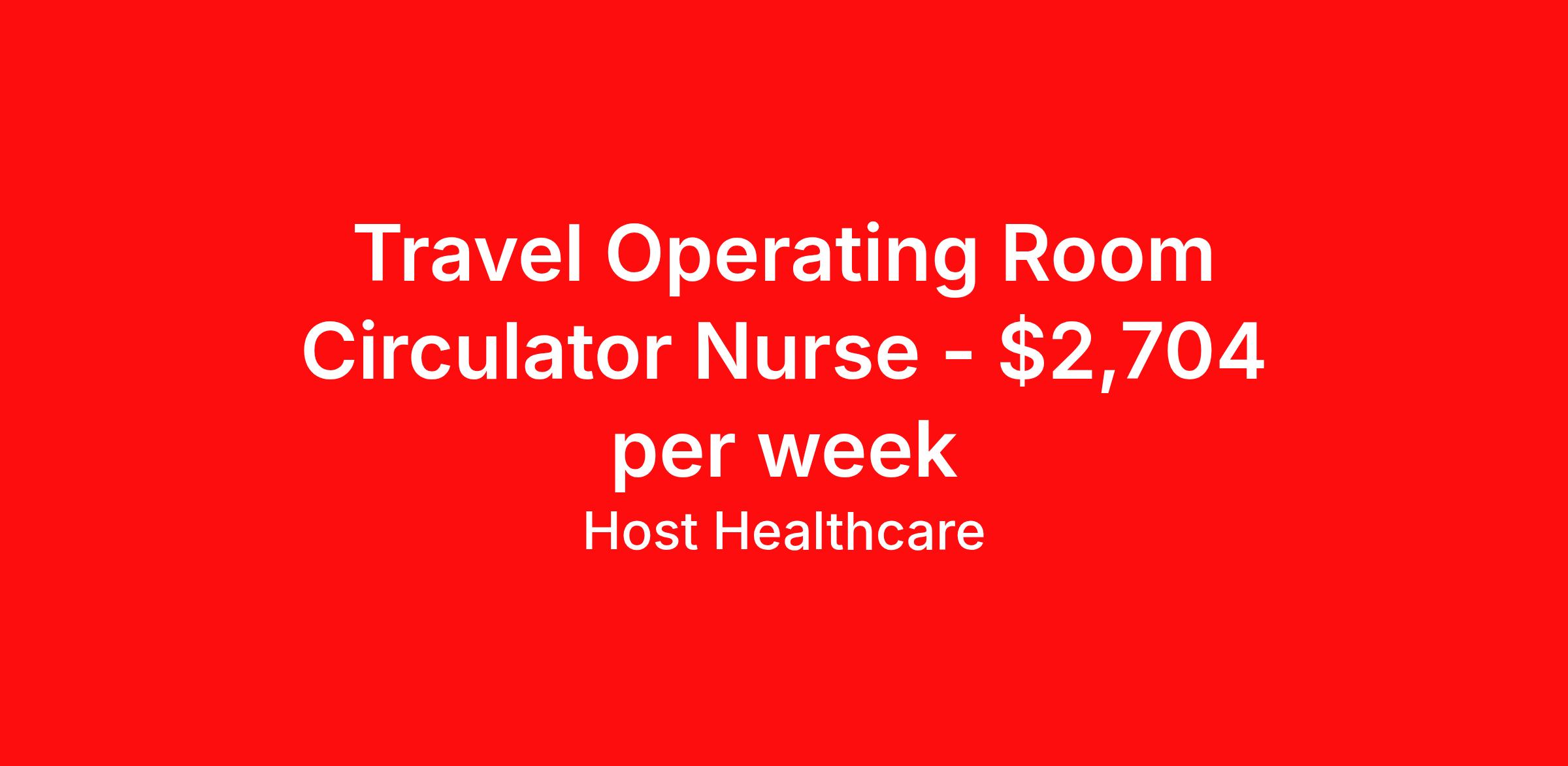 Host Healthcare is seeking a travel nurse RN OR - Operating Room for a travel nursing job in Morrisville, Vermont. Job Description & Requirements Specialty: OR - Operating Room Discipline: RN Start Date: 04/06/2026 Duration: 13 weeks 40 hours per week Shift: 8 hours, flexible Employment Type: Travel Host Healthcare Job ID a1fVX000002xSQXYA2. Pay package is based on 8 hour shifts and 40 hours per week (subject to confirmation) with tax-free stipend amount to be determined. Posted job title: RN - Operating Room About Host Healthcare At Host Healthcare, we provide a truly comfortable experience as you explore your travel nursing, therapy, or allied career. We make your travel healthcare journey easy by taking care of all the details, so you don’t have to. We are on a mission to help others live better and we do this by helping the healers of the world be as comfortable as possible. With access to tens of thousands of travel nursing, therapy, and allied jobs in all 50 states, our responsive and friendly recruiters find your dream position based on what’s important to you. During your assignment, get access to premium benefits, including Day 1 medical that continues up to 30 days between assignments, 401K matching, travel reimbursements, dedicated housing support, and more. We also offer 24/7 support from our team and access to our on-staff clinicians so you can feel comfortable and confident throughout your entire assignment. Travel comfortably with Host Healthcare. Benefits Referral bonus School loan reimbursement Vision benefits Wellness and fitness programs Company provided housing options License and certification reimbursement Life insurance Medical benefits Mileage reimbursement Pet insurance Discount program Employee assistance programs Guaranteed Hours Health savings account Holiday Pay 401k retirement plan Continuing Education Dental benefits