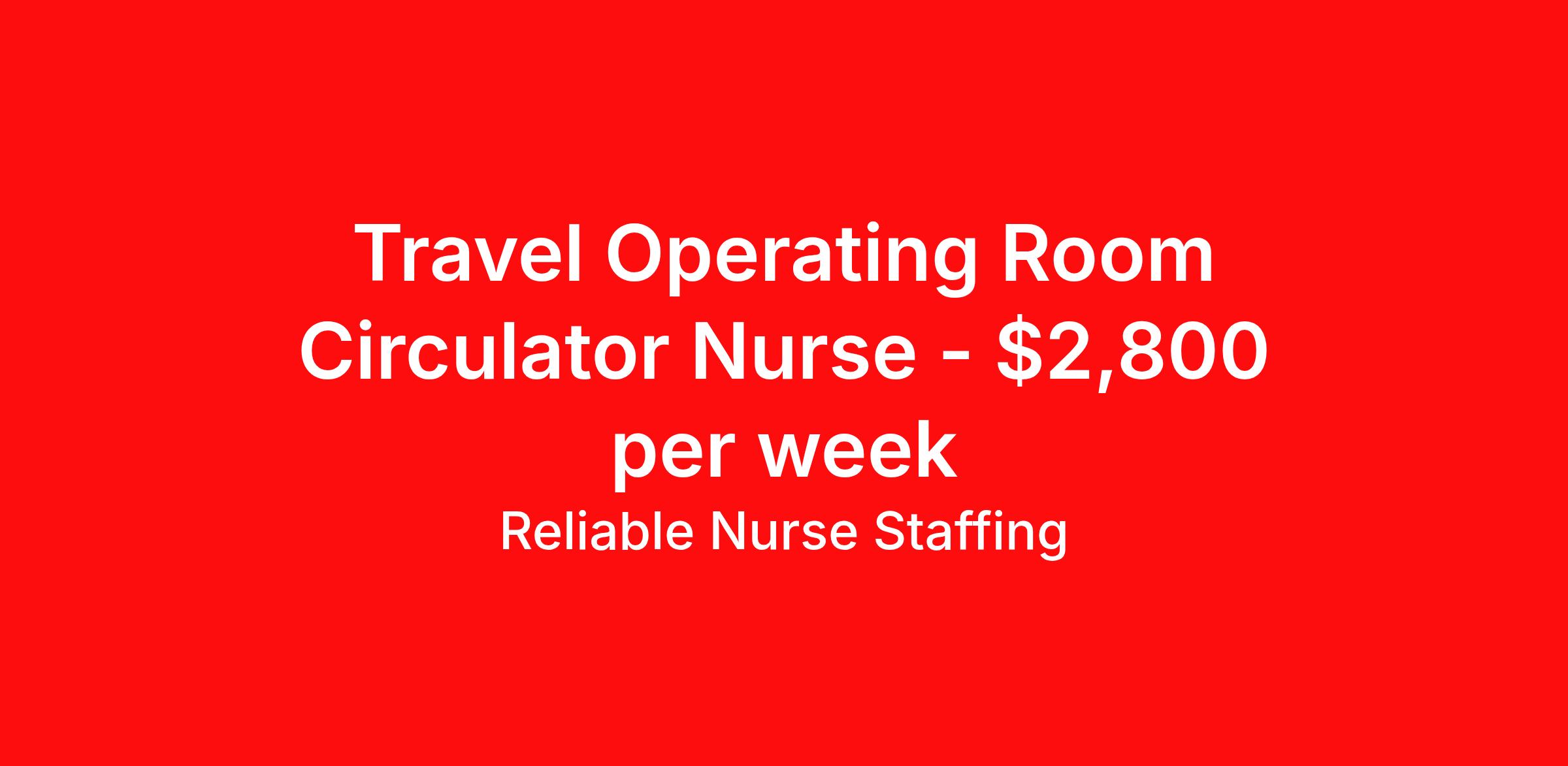 Reliable Nurse Staffing is seeking a travel nurse RN OR Circulate for a travel nursing job in Morristown, Vermont. Job Description & Requirements Specialty: OR Circulate Discipline: RN Start Date: 04/06/2026 Duration: 13 weeks 40 hours per week Shift: 8 hours, rotating Employment Type: Travel Reliable Nurse Staffing Job ID 60411581. Pay package is based on 8 hour shifts and 40 hours per week (subject to confirmation) with tax-free stipend amount to be determined. About Reliable Nurse Staffing Providing reliable, competent, and compassionate care to our patients and clients. Benefits Weekly pay Holiday Pay Guaranteed Hours Referral bonus Medical benefits Dental benefits Vision benefits Life insurance