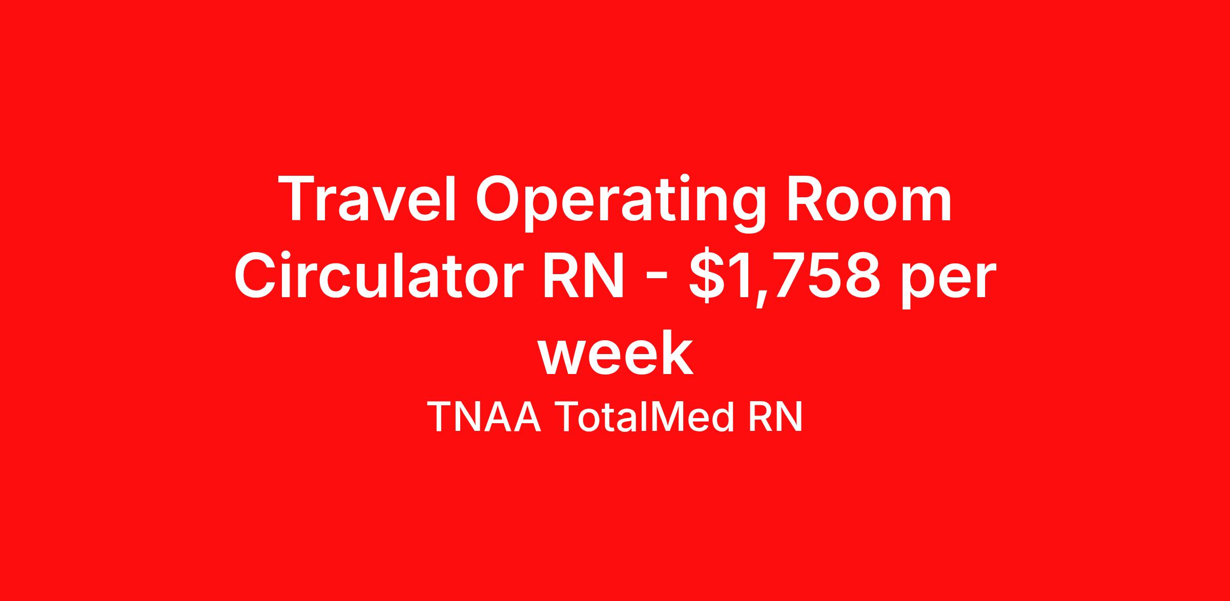 TNAA TotalMed RN is seeking a travel nurse RN OR - Operating Room for a travel nursing job in Augusta, Georgia. Job Description & Requirements Specialty: OR - Operating Room Discipline: RN Duration: 8 weeks 40 hours per week Shift: 8 hours, days Employment Type: Travel We're looking for Operating Room RNs for an immediate travel nurse opening in Augusta, GA. The right RN should have 1-2 years recent acute care experience as a circulating nurse, and/or scrub nurse, and potentially RN first assistant. Read below for more requirements. As an OR Travel Nurse, you will assist physicians and medical staff in caring for surgical patients, as well as providing pre- and post-surgery care and education to the patient. Circulating OR Nurses work within the operating suite but outside of the sterile field; Scrub OR Nurses handle and prepare operating instruments and equipment within the sterile field. Surgery responsibilities may include preparing instruments for specific surgical procedures, monitoring and observing the patient during surgery, and responding to potential complications alongside the physician. As an OR Travel Nurse, you should be prepared to perform the following tasks: Provide basic bedside care. Prepare, administer and record prescribed medication, reporting any adverse reactions to treatment. Serve as the communication liaison between patients' family members and members of the operating team. Ensure that the correct procedure(s) is being performed on the correct patient. Initiate patient education plan as prescribed by physician; teach patients and families how to manage medication and home care needs. Additional duties for Circulating OR Nurses may include: Responding to comfort and safety needs of patient. Accurate care and handling of specimens. Monitoring equipment used during surgery. Inventory of surgical items pre- and post-procedure. Additional duties for Scrub OR Nurses may include: Selection and handling of surgical instruments and supplies during procedures. Inventory of surgical items pre- and post-procedure. Additional duties for RN First Assistant may include: Assist physicians by delivering direct surgical care. Help control bleeding. Suture patients following surgery. OR Travel Nurses should be able to stand and walk for long periods of time, as well as bend, lean and stoop without difficulty. RNs should be able to easily lift 20 pounds. Moving or lifting of patients may require lifting of up to 50 pounds at times. RNs may face hazards from exposure to certain chemicals or infectious diseases in the operating room environment. Requirements*: BLS, ACLS, 1 Year * Additional certifications may be required before beginning an assignment. TotalMed Travel Job ID 1353939. Pay package is based on 8 hour shifts and 40 hours per week (subject to confirmation) with tax-free stipend amount to be determined. Posted job title: Operating Room - OR RN - Travel Nurse About TNAA TotalMed RN TotalMed is a Top Ten, travel nursing and healthcare staffing agency with the mission of igniting purpose in healthcare. The organization staffs nurses, therapists, pharmacists, and other clinicians of all specialties in all 50 states. They offer local and travel jobs and match caregivers with the right organization to assist both facilities and patients. As an organization, they focus on putting highly-skilled staff into facilities to ensure adequate staffing for a better patient experience. TotalMed specializes in recruiting and placing healthcare professionals in travel, PRN, and permanent positions across the country in Nursing and Allied Health. Throughout 2020, the organization filled roles at even the most short-staffed facilities during the most challenging time in healthcare. By matching the right travel healthcare professional with the right organization, TotalMed continues to offer a lifeline to facilities and their patients. Benefits Weekly pay Guaranteed Hours Continuing Education 401k retirement plan Sick pay Wellness and fitness programs Referral bonus Employee assistance programs Medical benefits Dental benefits Vision benefits Benefits start day 1