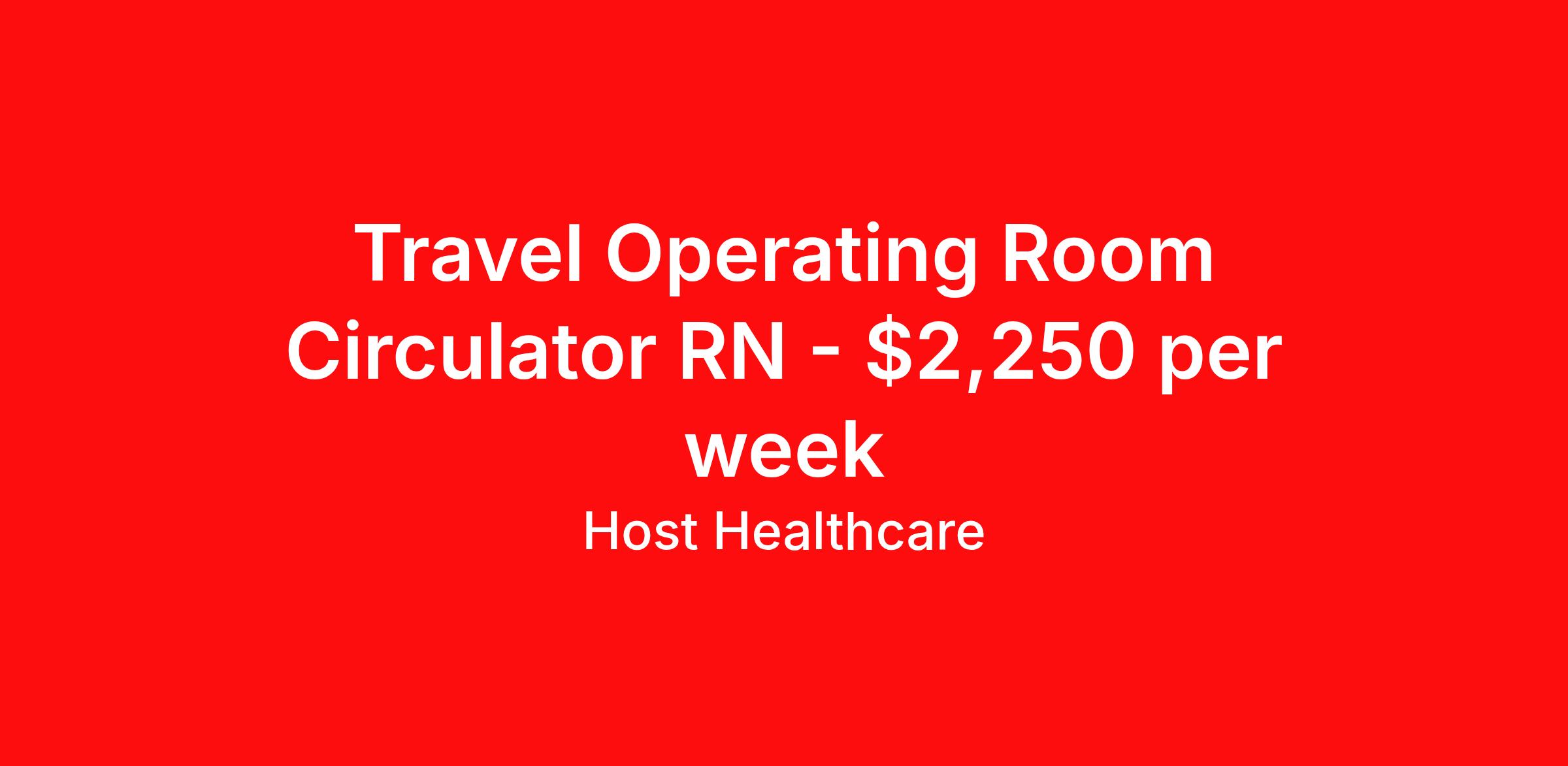 Host Healthcare is seeking a travel nurse RN OR - Operating Room for a travel nursing job in Oklahoma City, Oklahoma. Job Description & Requirements Specialty: OR - Operating Room Discipline: RN Start Date: 04/13/2026 Duration: 13 weeks 36 hours per week Shift: 12 hours, nights Employment Type: Travel Host Healthcare Job ID a1fVX000002zRDRYA2. Pay package is based on 12 hour shifts and 36 hours per week (subject to confirmation) with tax-free stipend amount to be determined. Posted job title: RN - Operating Room About Host Healthcare At Host Healthcare, we provide a truly comfortable experience as you explore your travel nursing, therapy, or allied career. We make your travel healthcare journey easy by taking care of all the details, so you don’t have to. We are on a mission to help others live better and we do this by helping the healers of the world be as comfortable as possible. With access to tens of thousands of travel nursing, therapy, and allied jobs in all 50 states, our responsive and friendly recruiters find your dream position based on what’s important to you. During your assignment, get access to premium benefits, including Day 1 medical that continues up to 30 days between assignments, 401K matching, travel reimbursements, dedicated housing support, and more. We also offer 24/7 support from our team and access to our on-staff clinicians so you can feel comfortable and confident throughout your entire assignment. Travel comfortably with Host Healthcare. Benefits Referral bonus School loan reimbursement Vision benefits Wellness and fitness programs Company provided housing options License and certification reimbursement Life insurance Medical benefits Mileage reimbursement Pet insurance Discount program Employee assistance programs Guaranteed Hours Health savings account Holiday Pay 401k retirement plan Continuing Education Dental benefits