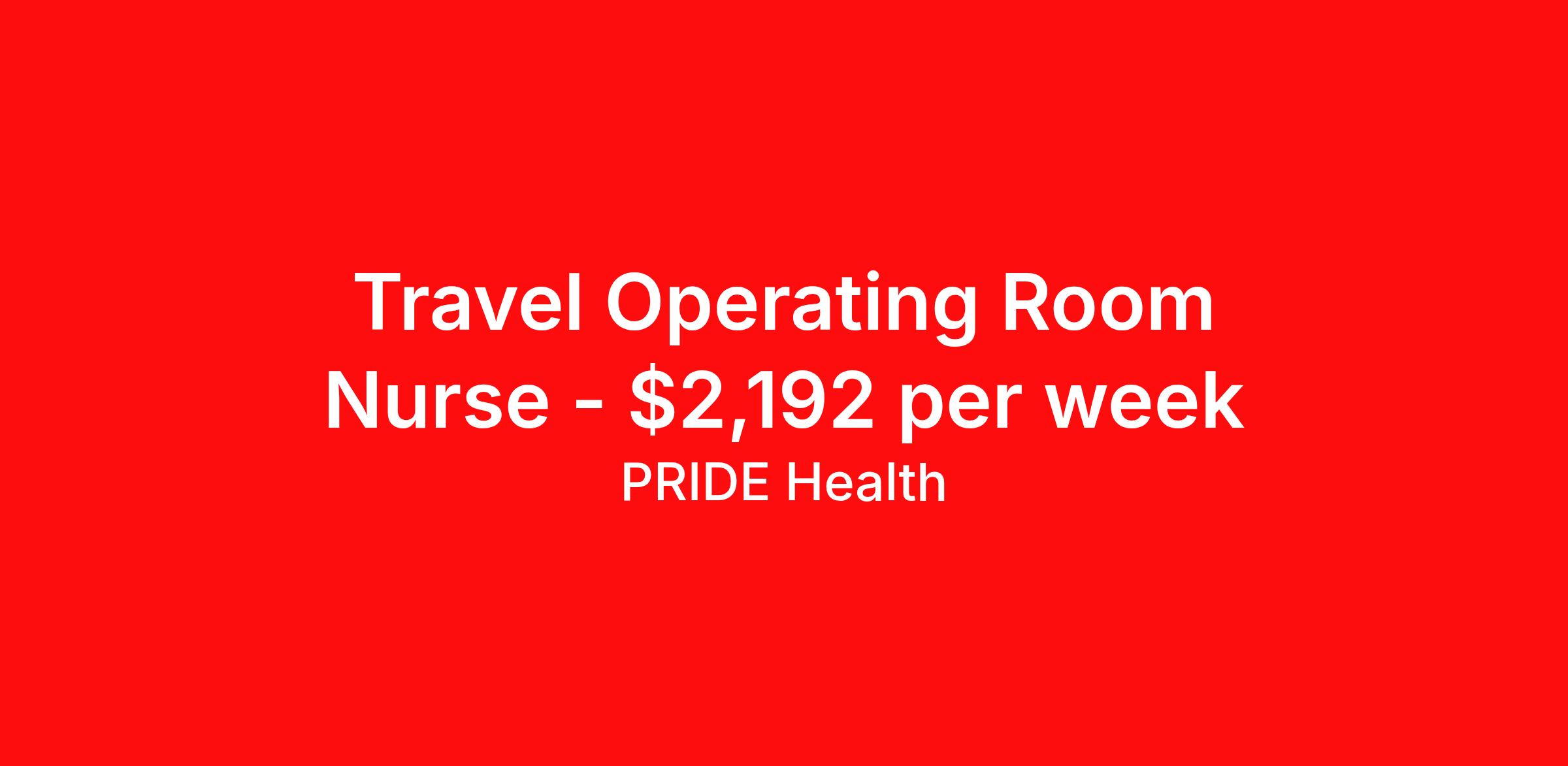 PRIDE Health is seeking a travel nurse RN OR - Operating Room for a travel nursing job in Baltimore, Maryland. Job Description & Requirements Specialty: OR - Operating Room Discipline: RN Start Date: 05/11/2026 Duration: 13 weeks 36 hours per week Shift: 12 hours, nights Employment Type: Travel Pride Health Job ID 18137033. Pay package is based on 12 hour shifts and 36.0 hours per week (subject to confirmation) with tax-free stipend amount to be determined. Posted job title: RN:OR,19:00:00-07:30:00 About PRIDE Health PRIDE Health is the minority-owned healthcare recruitment division of Pride Global—an integrated human capital solutions and advisory firm. With our robust and abundant travel nursing and allied health employment options across the U.S., PRIDE Health will allow you to help change the way the world lives and heals as it connects you with the industry’s leading healthcare organizations. Pride Global offers eligible employee’s comprehensive healthcare coverage (medical, dental, and vision plans), supplemental coverage (accident insurance, critical illness insurance and hospital indemnity), 401(k)-retirement savings, life & disability insurance, an employee assistance program, legal support, auto, home insurance, pet insurance, and employee discounts with preferred vendors. Benefits Weekly pay Holiday Pay Guaranteed Hours 401k retirement plan Cancelation protection Referral bonus Medical benefits Dental benefits Vision benefits