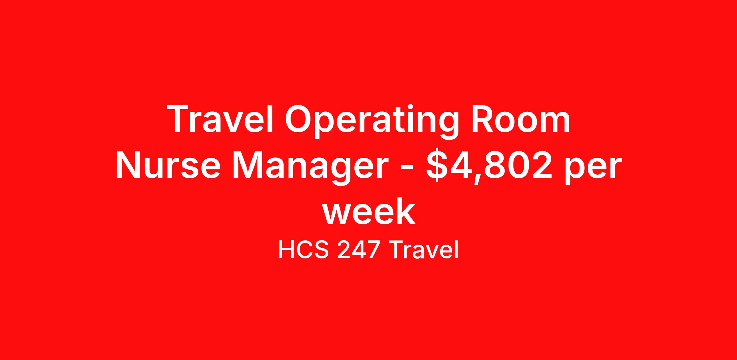 HCS 247 Travel is seeking a travel nurse RN OR - Operating Room for a travel nursing job in Hermiston, Oregon. Job Description & Requirements Specialty: OR - Operating Room Discipline: RN Start Date: 04/06/2026 Duration: 13 weeks 40 hours per week Shift: 8 hours, days Employment Type: Travel HCS 247 Travel Job ID 62093374. Pay package is based on 8 hour shifts and 40 hours per week (subject to confirmation) with tax-free stipend amount to be determined. About HCS 247 Travel HCS 24/7 is a national healthcare staffing organization specializing in the placement of Registered Nurses and Allied health professionals across acute care and other clinical settings. We support travel assignments, local short- and long-term contracts, per diem, temp-to-perm, and direct hire opportunities nationwide. Our clinical coverage includes Registered Nurse specialties such as ER, ICU, Med-Surg, Telemetry, Step-Down, OR, PACU, L&D, Mother/Baby, NICU, Cath Lab, Endoscopy, and more along with a full range of allied and imaging professionals, including Respiratory Therapists, Surgical Technicians, X-Ray Techs, CT Techs, MRI Techs, Interventional Radiology (IR) Techs, Cath Lab Techs, Ultrasound/Sonographers, Mammography Techs, and Nuclear Medicine Techs. With competitive compensation and benefits, consistent opportunities, and a clinician-first approach backed by top-rated customer service, HCS 24/7 delivers a seamless experience from initial application through assignment completion. Benefits Holiday Pay Guaranteed Hours Continuing Education Mileage reimbursement Referral bonus Medical benefits Dental benefits Vision benefits License and certification reimbursement Life insurance Benefits start day 1 Weekly pay