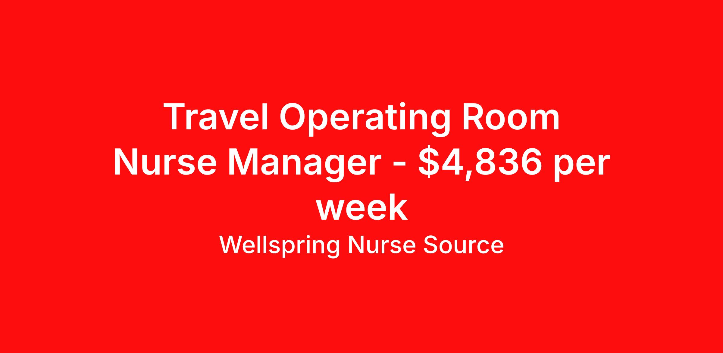Wellspring Nurse Source is seeking a travel nurse RN OR - Operating Room for a travel nursing job in Hermiston, Oregon. Job Description & Requirements Specialty: OR - Operating Room Discipline: RN Start Date: ASAP Duration: 13 weeks 40 hours per week Shift: 8 hours, days Employment Type: Travel Wellspring Nurse Source Job ID 35875819. Pay package is based on 8 hour shifts and 40.0 hours per week (subject to confirmation) with tax-free stipend amount to be determined. Posted job title: RN Manager - OR About Wellspring Nurse Source Wellspring is nurse owned and operated which means that we get you, we stand behind you, and we advocate for you. We are 100% committed to helping you find your best job at the best rate. We are unwavering in our commitment to supporting our clinicians on every step of their travel adventure, assisting with everything from onboarding and payroll to on-the-job clinical support with a dedicated Clinician Success Team. You’re not just a number at Wellspring, you’re a valued member of our family. Join us and experience the Wellspring difference.