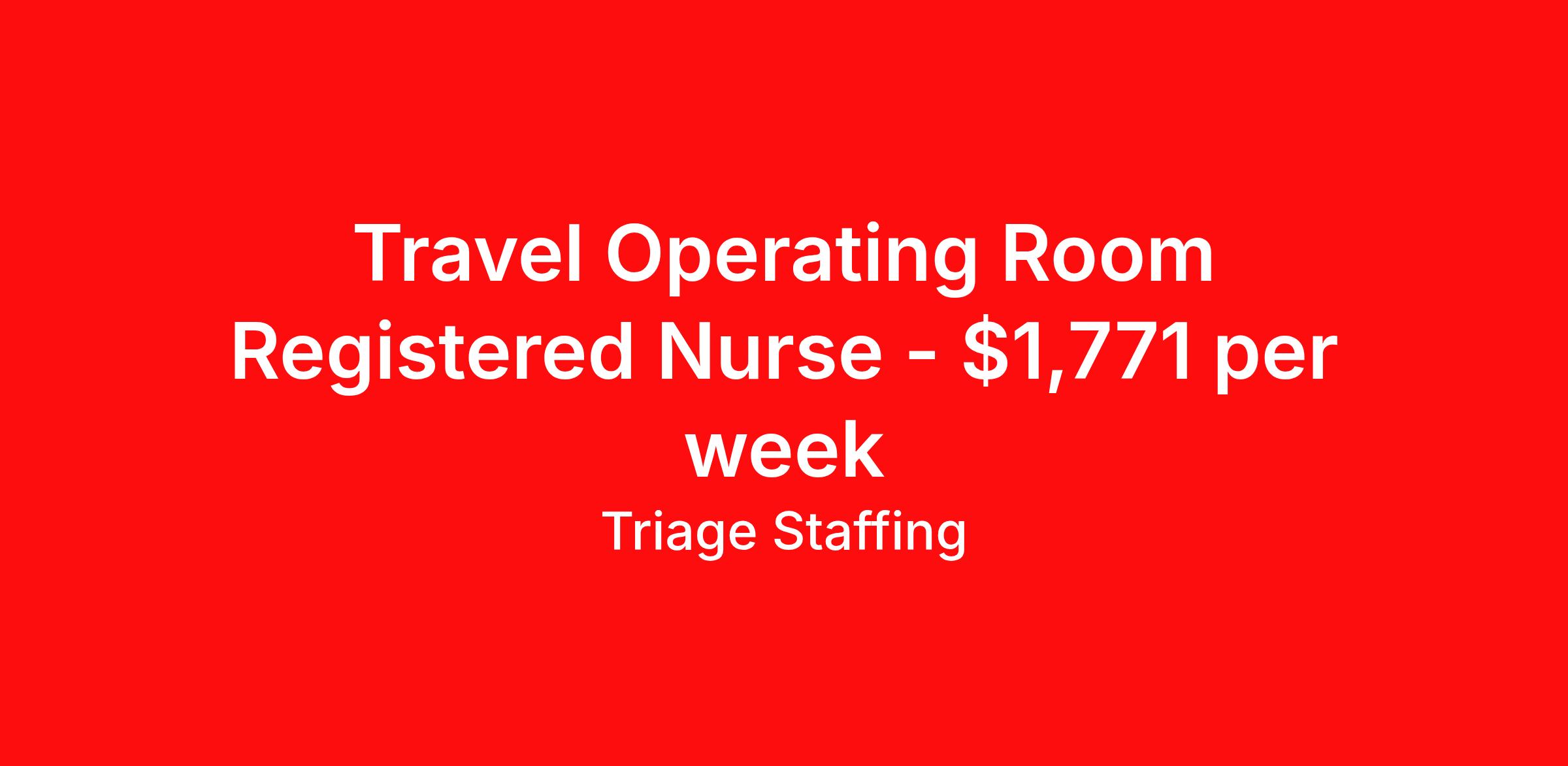 Triage Staffing is seeking a travel nurse RN OR - Operating Room for a travel nursing job in Tucson, Arizona. Job Description & Requirements Specialty: OR - Operating Room Discipline: RN Start Date: ASAP Duration: 13 weeks 40 hours per week Shift: 8 hours, evenings Employment Type: Travel Travel Nursing: OR Tucson Location: Tucson Start Date: 2/16/2026 Shift Details: 8H Evenings 40 hours per week Length: 13 WEEKS Apply for specific facility details.OR RN Triage Staffing Job ID QYMXNJTL. Posted job title: Registered Nurse Operating Room About Triage Staffing At Triage, we prefer to be real . Real about expectations—both ours and yours. Real about how a decision you make today could affect your tomorrows. Real about how compensation actually works. Real about how great—or grating—your next supervisor may be. Being real allows everyone at Triage to be ready . Ready to serve you with real honesty. So if that gig near the ocean is really no day at the beach, or that third shift comes with a second-class rate, we tell you. So you can be ready, too. We staff all five major divisions of acute care—nursing, lab, radiology, cardiopulmonary and rehab therapy, offering: - Competitive, custom pay packages - One point of contact for both travelers and facilities (per division) - A reliable recruiter who's got your back throughout your entire assignment - In-house compliance and accounting specialists - A clinical liaison team available 24/7 to offer medical and professional support and career development - A mentoring program that is run and managed by actual clinicians—yeah, you read that right - And more (because of course there’s more) Are we the biggest? No. Are we the best? That’s rather subjective, but we’re trying to be. Will we work like hell to get you as close to your idea of heaven as possible? Yes. Yes, we will. Benefits: Day One comprehensive, nationwide insurance plans for health, vision and dental and life—including a HSA option Day One 401(k) program with employer-matching contributions once eligible Facility cancelling protection—your time is money on and off-the-clock Guaranteed hours Weekly paychecks via direct deposit Earned vacation bonuses for time worked Paid holidays Employee assistance program (EAP)—your mental health is important, too Continuing education, certification and licensing reimbursement Workers comp—because accidents happen Top-rated professional liability insurance Company provided housing options Referral bonus—$750 in your pocket after they’ve completed a 13-week assignment