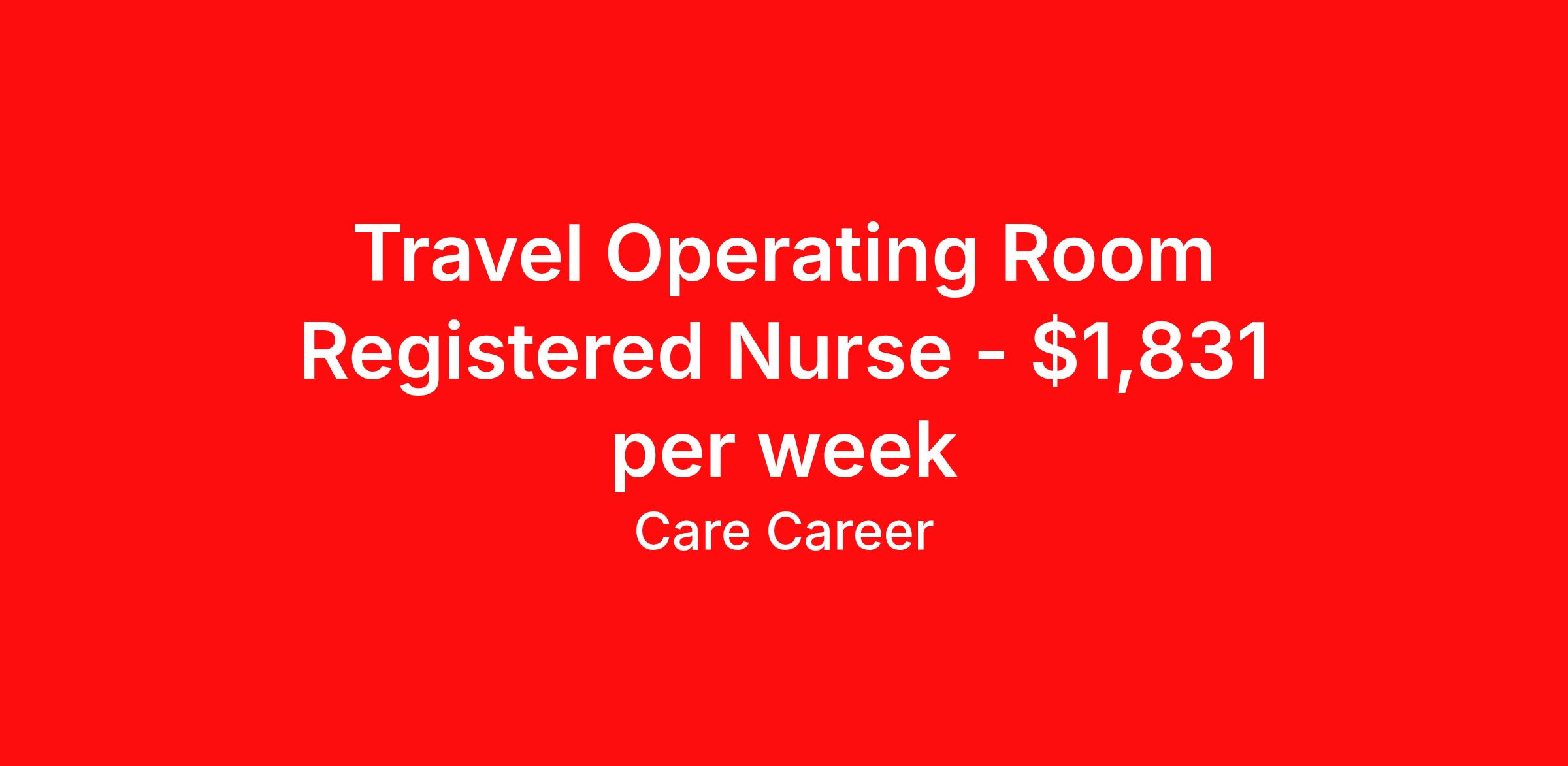 Care Career is seeking a travel nurse RN OR - Operating Room for a travel nursing job in Austell, Georgia. Job Description & Requirements Specialty: OR - Operating Room Discipline: RN Start Date: ASAP Duration: 13 weeks 36 hours per week Shift: 12 hours, days Employment Type: Travel Operating Room Nurses Responsible for planning, executing, directing and evaluating, direct and indirect nursing care given to the surgical patient. The nursing activities may include preoperative, intra-operative and postoperative evaluation. Operating Room Nurses may be employed in several roles including scrub, circulating or function in both roles. Care Career Job ID 36079698. Pay package is based on 12 hour shifts and 36.0 hours per week (subject to confirmation) with tax-free stipend amount to be determined. Posted job title: RN OR About Care Career Care Career brings together a portfolio of leading healthcare staffing organizations, each delivering specialized talent solutions across the industry. Wherever you want to go, We Make It Happen. With travel nursing jobs across the country, you can discover the possibilities that create the lifestyle and financial position that you have dreamed of. Care Career is a modern, transparent staffing firm creating the ultimate community of US. Benefits Referral bonus Weekly pay Medical benefits Continuing Education Dental benefits Vision benefits