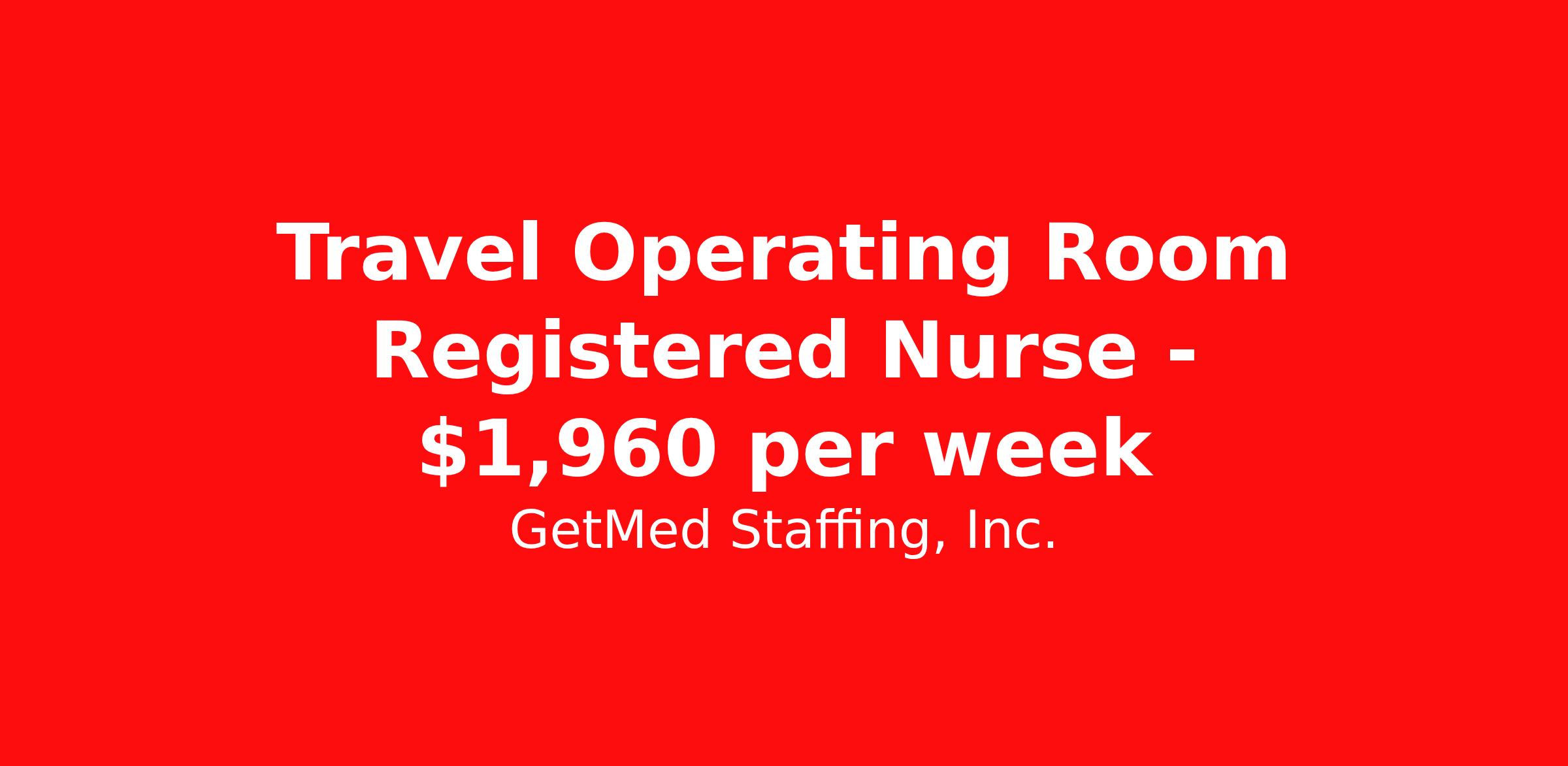 GetMed Staffing, Inc. is seeking a travel nurse RN OR - Operating Room for a travel nursing job in Savannah, Georgia. Job Description & Requirements Specialty: OR - Operating Room Discipline: RN Start Date: 03/30/2026 Duration: 13 weeks 40 hours per week Shift: 10 hours, days Employment Type: Travel GetMed Staffing, Inc. Job ID 36167920. Pay package is based on 10 hour shifts and 40.0 hours per week (subject to confirmation) with tax-free stipend amount to be determined. Posted job title: RN:OR,07:00:00-17:00:00 About GetMed Staffing, Inc. We are a diversity owned company, specializing in healthcare recruiting services. We truly understand how important a healthcare travelers' relationship is with their recruiter, as well as our relationship is with our healthcare facilities. We recognize that the needs of our healthcare travelers can vary, and therefore we provide the personalized touch necessary to ensure a successful travel assignment each and every time. Our healthcare facilities and clients benefit from us putting our healthcare travelers first. GetMed Staffing is excited to be a leader within the industry by focusing on providing healthcare travelers with more choices and possibilities as they plan for their next healthcare travel assignment. Benefits Life insurance Medical benefits Dental benefits Vision benefits 401k retirement plan