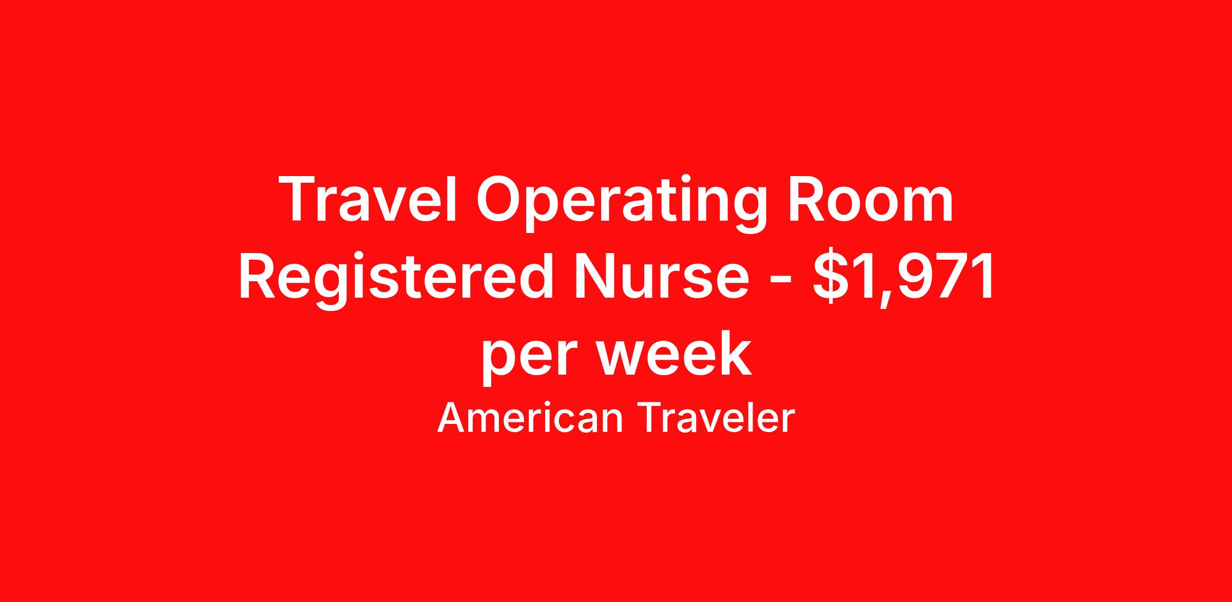 American Traveler is seeking a travel nurse RN OR - Operating Room for a travel nursing job in Tucson, Arizona. Job Description & Requirements Specialty: OR - Operating Room Discipline: RN Start Date: ASAP Duration: 13 weeks 40 hours per week Shift: 8 hours, evenings Employment Type: Travel Assignment Overview Shift: Evenings, 5x8hrs Hours: 40 hrs/wk Start Date: Feb 16, 2026 Length: 13 weeks Openings: 1 Description American Traveler is seeking an experienced Operating Room RN with an AZ or compact license and at least one year of recent OR experience. Details Work in the Operating Room department of a hospital setting Surgical patient population Shift is 14:30 to 23:00 13-week contract assignment Floating and on-call responsibilities are not specified Requirements Active AZ or compact state RN license required Minimum one year of recent Operating Room RN experience No local travelers within a 50-mile radius No significant employment gaps of 90 days or more in the last 12 months No certifications may expire within the first 30 days of the assignment Candidates who have worked as permanent staff at a CHS facility within the past two years are not eligible Additional Information RTO (requested time off) must be less than one week Holiday and weekend coverage may be required as determined by department needs Applicants must provide documentation as requested during consideration First time travelers are welcome to apply American Traveler Job ID P-671074. Pay package is based on 8 hour shifts and 40 hours per week (subject to confirmation) with tax-free stipend amount to be determined. Posted job title: Travel RN - Operating Room About American Traveler With over 25 years of experience, American Traveler has established a reputation for outstanding customer service. Our team ensures a smooth, worry-free experience for those starting on or expanding their travel nursing and allied careers. With thousands of travel nursing and allied jobs nationwide, our attentive and approachable recruiters find positions that align perfectly with your career aspirations and personal requirements. American Traveler offers exceptional benefits, including premium medical, dental, vision and life insurance beginning day one of your assignment, generous 401(k) match, substantial housing stipends, and more. Additionally, with 24/7 support and access to our in-house clinicians, you are assured confidence and comfort throughout your assignment. With our team behind you, you can relax and enjoy a rewarding travel career.