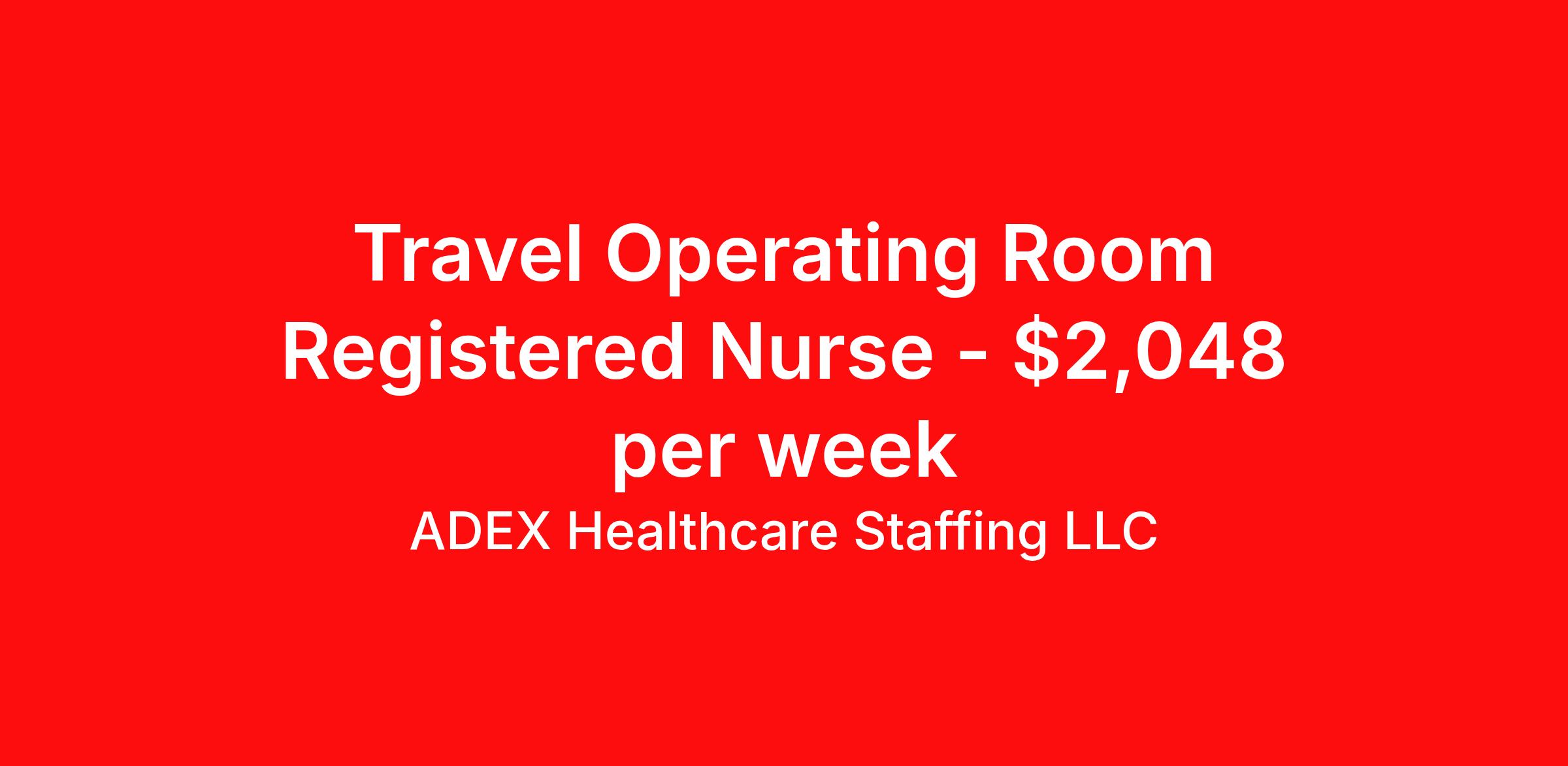 ADEX Healthcare Staffing LLC is seeking a travel nurse RN OR - Operating Room for a travel nursing job in Augusta, Georgia. Job Description & Requirements Specialty: OR - Operating Room Discipline: RN Start Date: 04/13/2026 Duration: 14 weeks 36 hours per week Shift: 12 hours, days Employment Type: Travel RN Position Job Notes: Travel or Local Registered Nurse needed for ASAP start. A minimum of 2 years of recent hospital bedside experience is required. Candidates must be able to start within 5 weeks. Opportunity for extension upon successful completion of the initial assignment. $750 referral bonus available. Opportunity: RN - OR Job Details: • Minimum 1 year of experience required; first-time travelers accepted • Both circulating and scrubbing experience required (HARD STOP) • Work in Main OR covering General, Neuro, Spine, Ortho, Robotics, Urology, Vascular, and Colorectal procedures • 16 operating rooms with average daily census of 35 cases • Patient population includes adults to geriatrics • Required certification: BLS • Call requirements: 7-8 calls in a 6-week schedule plus 1 weekend call and 1-2 weekend shifts • Average 2-3 weekend shifts per contract period • Holiday coverage required based on number of major holidays during assignment • Maximum 7 days of requested time off allowed • Work with Epic charting system, Pyxis medication system, and 2 DaVinci XI robots • Scrubs provided by facility • Floating assignments are rare • 72 hours of orientation required • Must be available to submit compliance documents and complete labs within 48 hours of contract signing • Georgia or Compact license must be in hand at time of submittal • Two supervisory references highly preferred (Manager level or above) Facility: This healthcare facility operates a comprehensive 16-room main operating room suite that handles a wide range of surgical specialties including general surgery, neurosurgery, spine procedures, orthopedics, robotics, urology, vascular surgery, and colorectal procedures. The facility is equipped with advanced technology including Epic electronic health records, Pyxis medication dispensing systems, and state-of-the-art robotic surgical equipment with two DaVinci XI robots. The organization maintains high standards for patient care and requires full compliance documentation for all healthcare professionals. Location: Augusta, GA Augusta offers a vibrant blend of Southern charm and modern amenities, famous for hosting the Masters Tournament and featuring beautiful historic districts along the Savannah River. The city provides excellent recreational opportunities, cultural attractions, and a growing healthcare community, making it an ideal location for healthcare professionals seeking both career advancement and quality of life. Adex Job ID 3211355. Pay package is based on 12 hour shifts and 36 hours per week (subject to confirmation) with tax-free stipend amount to be determined. About ADEX Healthcare Staffing LLC ADEX has been placing healthcare professionals across the US since 2004. Originally founded in Atlanta, GA, the company's headquarters are now located in Tampa, FL. JCAHO certified since 2009. Benefits Referral bonus