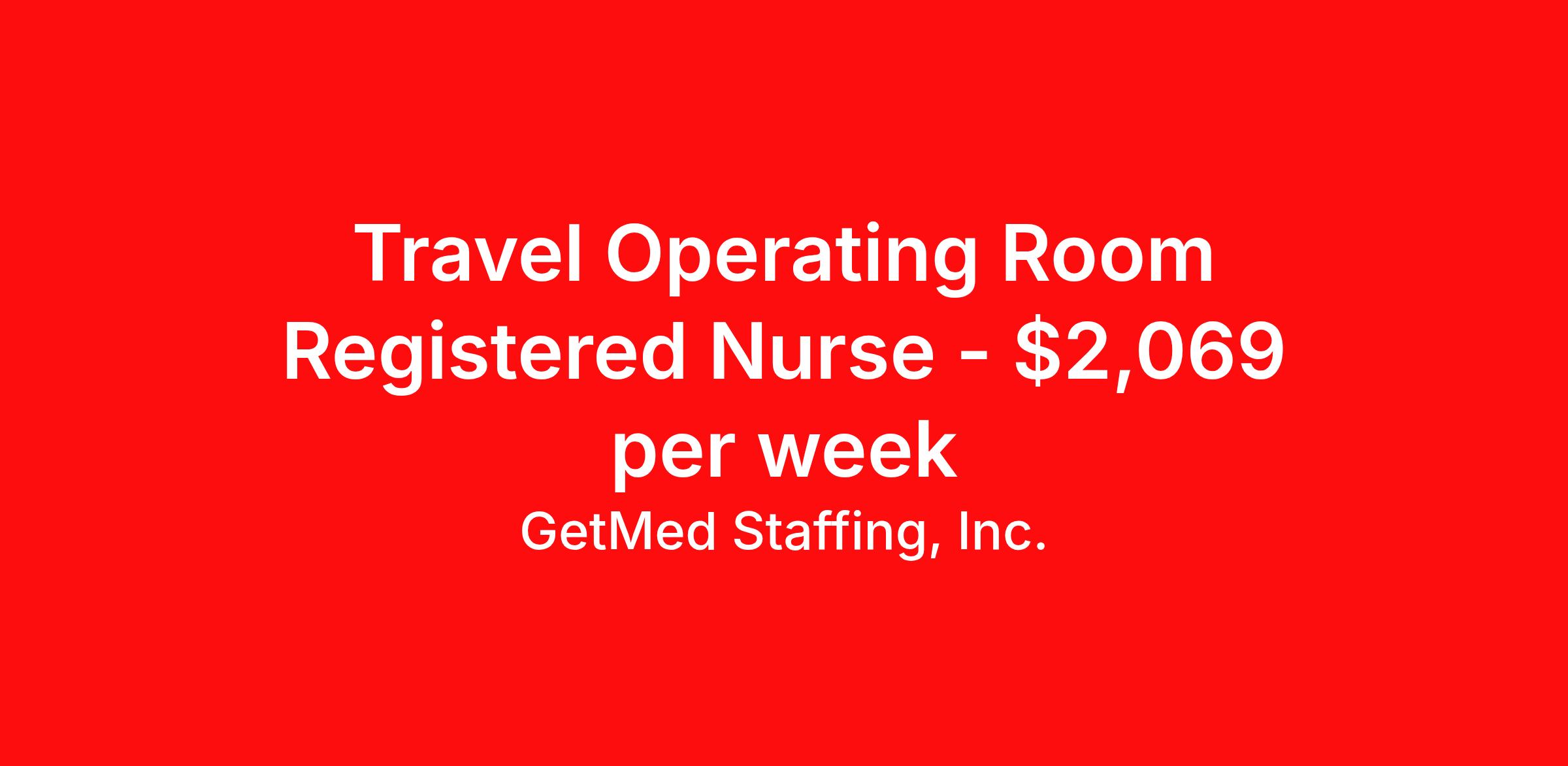 GetMed Staffing, Inc. is seeking a travel nurse RN OR - Operating Room for a travel nursing job in Columbus, Ohio. Job Description & Requirements Specialty: OR - Operating Room Discipline: RN Start Date: 04/20/2026 Duration: 13 weeks 36 hours per week Shift: 12 hours, nights Employment Type: Travel GetMed Staffing is searching for a strong OR RN to assist our traveler-friendly client. A minimum of 1-2 years of experience is required. Traveling with GetMed Staffing offers the unique opportunity to gain diverse experiences, both personally and professionally. Gain experience that matters. GetMed Staffing, Inc. Job ID 36065843. Pay package is based on 12 hour shifts and 36.0 hours per week (subject to confirmation) with tax-free stipend amount to be determined. Posted job title: RN:OR,19:00:00-07:00:00 About GetMed Staffing, Inc. We are a diversity owned company, specializing in healthcare recruiting services. We truly understand how important a healthcare travelers' relationship is with their recruiter, as well as our relationship is with our healthcare facilities. We recognize that the needs of our healthcare travelers can vary, and therefore we provide the personalized touch necessary to ensure a successful travel assignment each and every time. Our healthcare facilities and clients benefit from us putting our healthcare travelers first. GetMed Staffing is excited to be a leader within the industry by focusing on providing healthcare travelers with more choices and possibilities as they plan for their next healthcare travel assignment. Benefits Life insurance Medical benefits Dental benefits Vision benefits 401k retirement plan