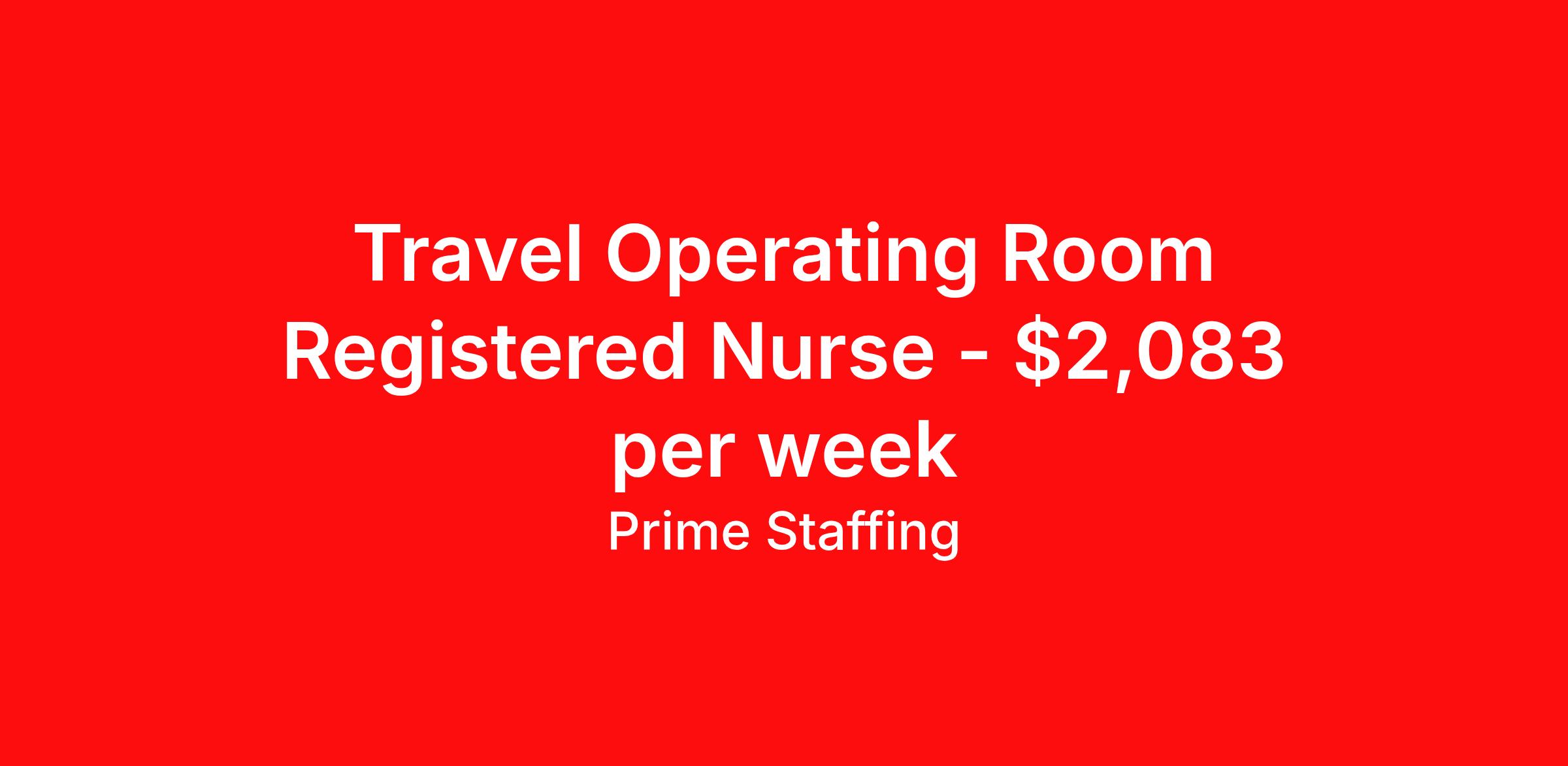 Prime Staffing is seeking a travel nurse RN OR - Operating Room for a travel nursing job in San Angelo, Texas. Job Description & Requirements Specialty: OR - Operating Room Discipline: RN Start Date: 04/06/2026 Duration: 13 weeks 36 hours per week Shift: 12 hours Employment Type: Travel About the Position Specialty: Registered Nurse – Operating Room (OR) Experience: Minimum 2 years of recent OR experience required License: Active State or Compact RN License Certifications: BLS and ACLS required – must include expiration dates Must-Have: All time-off requests must be submitted with the initial application Description: We are seeking an experienced OR RN to provide perioperative nursing care, including patient assessment, circulating, and assisting in surgical procedures. Must be able to scrub and circulate a variety of surgical cases, maintain a sterile environment, and collaborate with surgeons and surgical techs. This is a 12-hour shift role with possible weekend, holiday, and on-call requirements. Floating within surgical services may be expected. Compliance and onboarding take an average of 4–6 weeks . Requirements Required for Onboarding: Active RN License BLS Prime Staffing Job ID 36036390. Pay package is based on 12 hour shifts and 36.0 hours per week (subject to confirmation) with tax-free stipend amount to be determined. Posted job title: RN:Operating Room (OR),19:00:00-07:30:00 About Prime Staffing At Prime Staffing, we understand the importance of finding the perfect fit for both our clients and candidates. Prime Staffing utilizes a unique matchmaking approach, providing the most qualified contingent staffing to our clients, and the most competitive contracts to our workforce. Our experienced team takes the time to get to know both our clients and candidates, their needs, and preferences, to ensure that each placement is a success. We offer a wide range of staffing services including temporary, temp-to-perm, and direct hire placements. Our extensive network of qualified candidates includes nurses, allied healthcare professionals, corporate support professionals and executives.